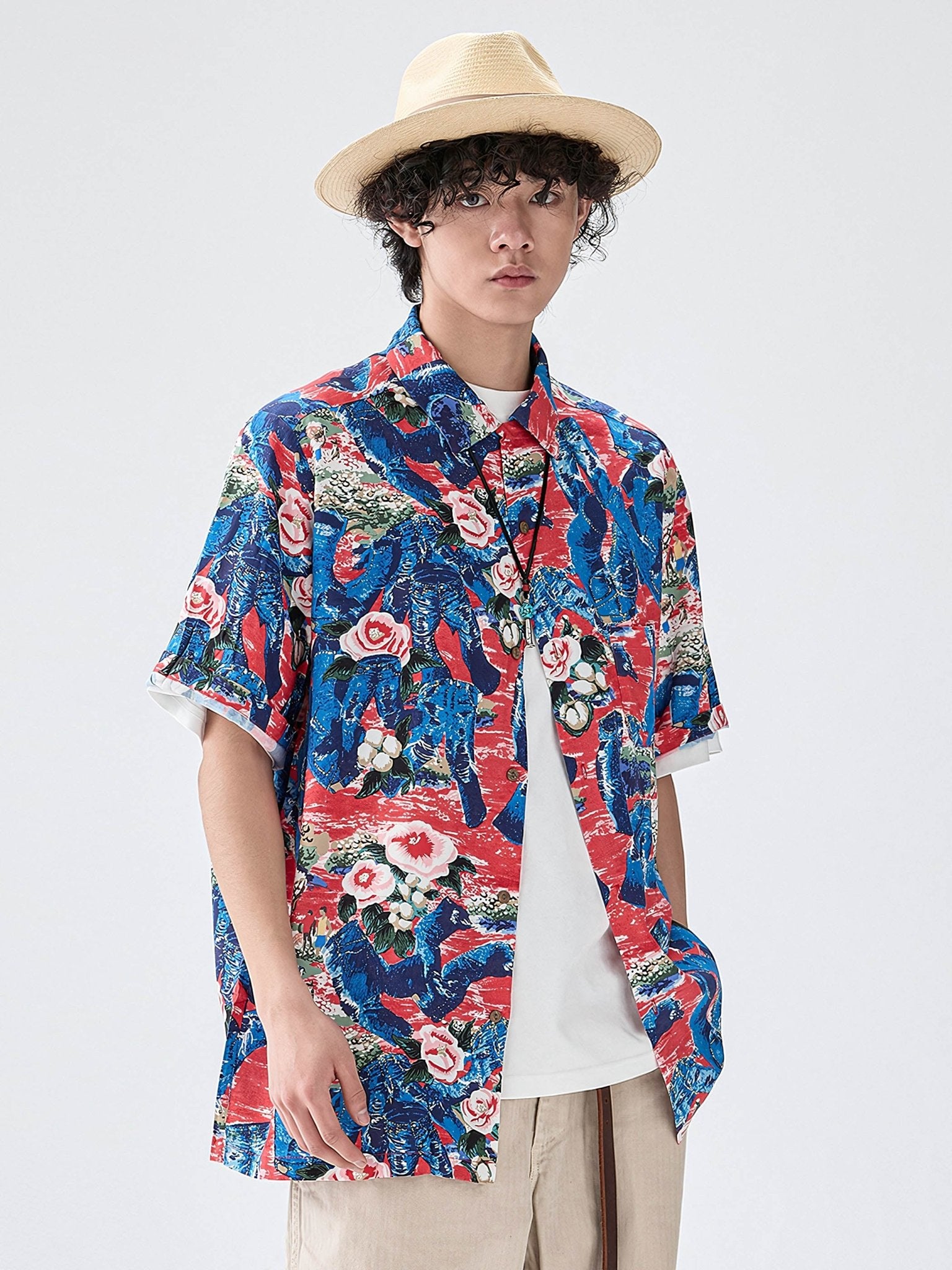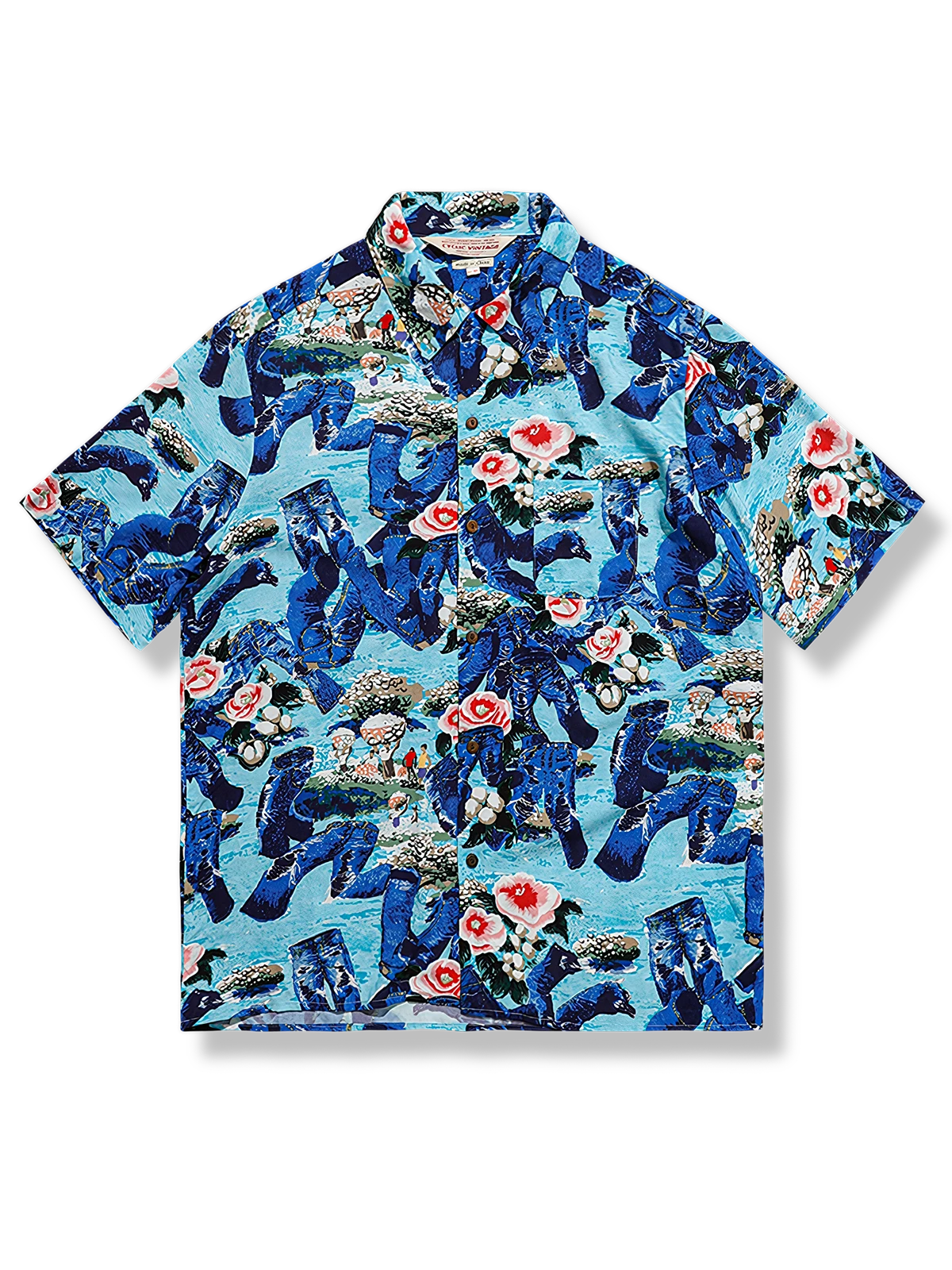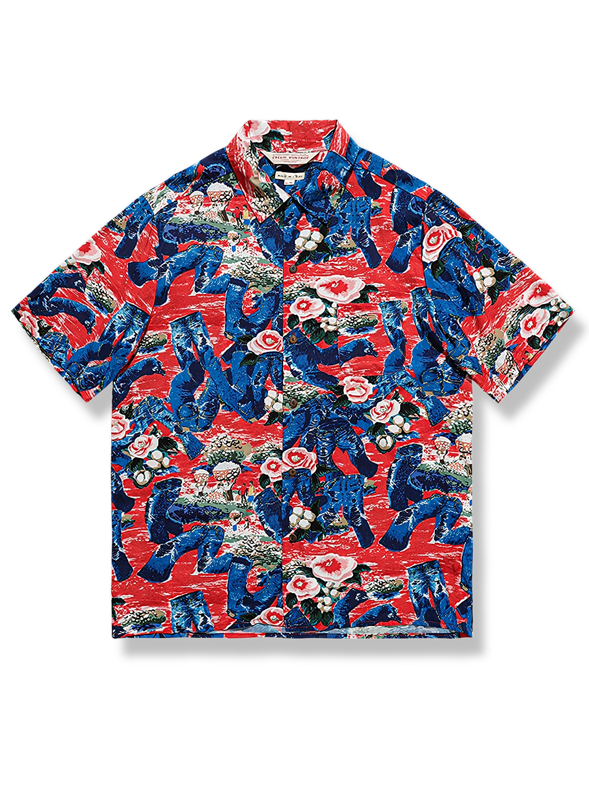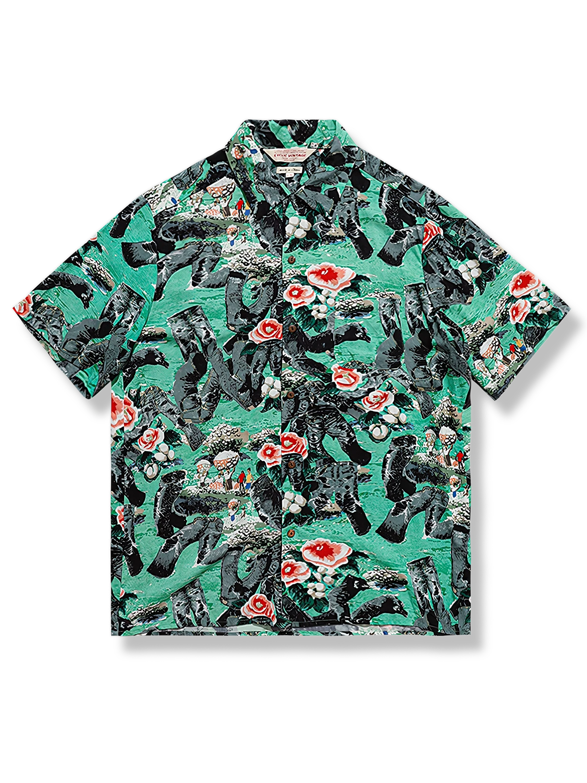 レトロなハワイアンのキューバシャツの特徴は、印刷の色彩の鮮やかさにあります。複数回のサンプリングを経て、底色として選ばれた3つのカラーを慎重に選定し、彩度の完璧な表現を確保しました。