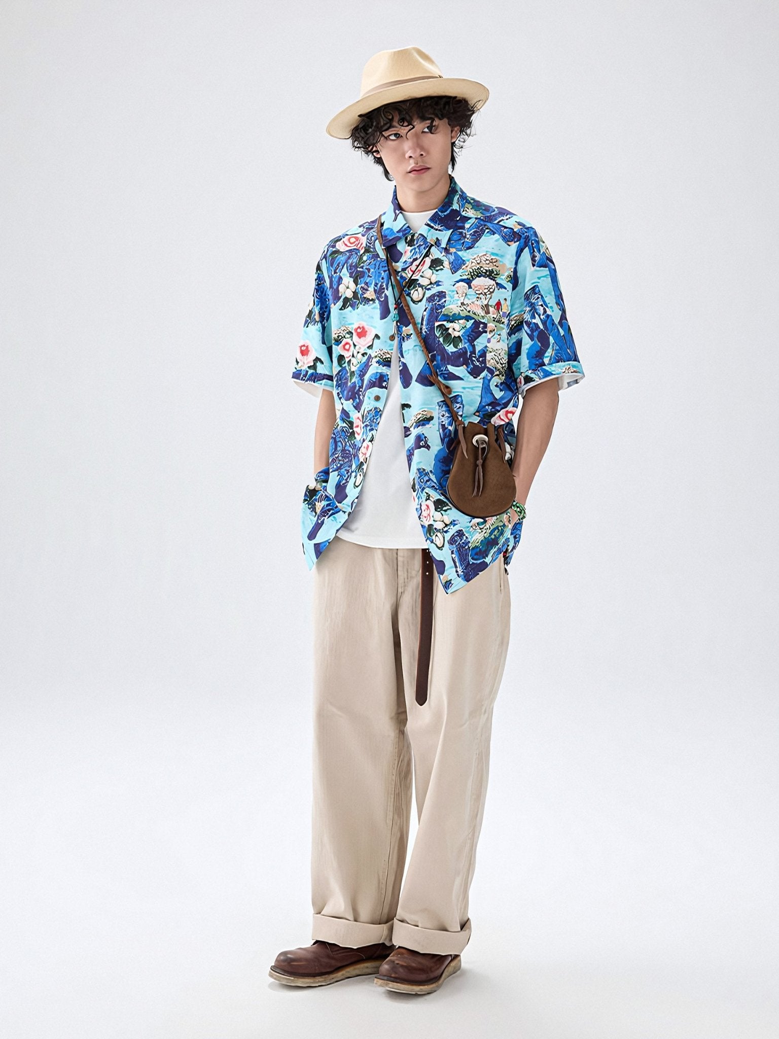 版型はゆったりとしたデザインで、日本スタイルやアメカジスタイルにも合わせやすいです。リゾートや普段着として、このシャツはおしゃれで快適な着用感を提供します。