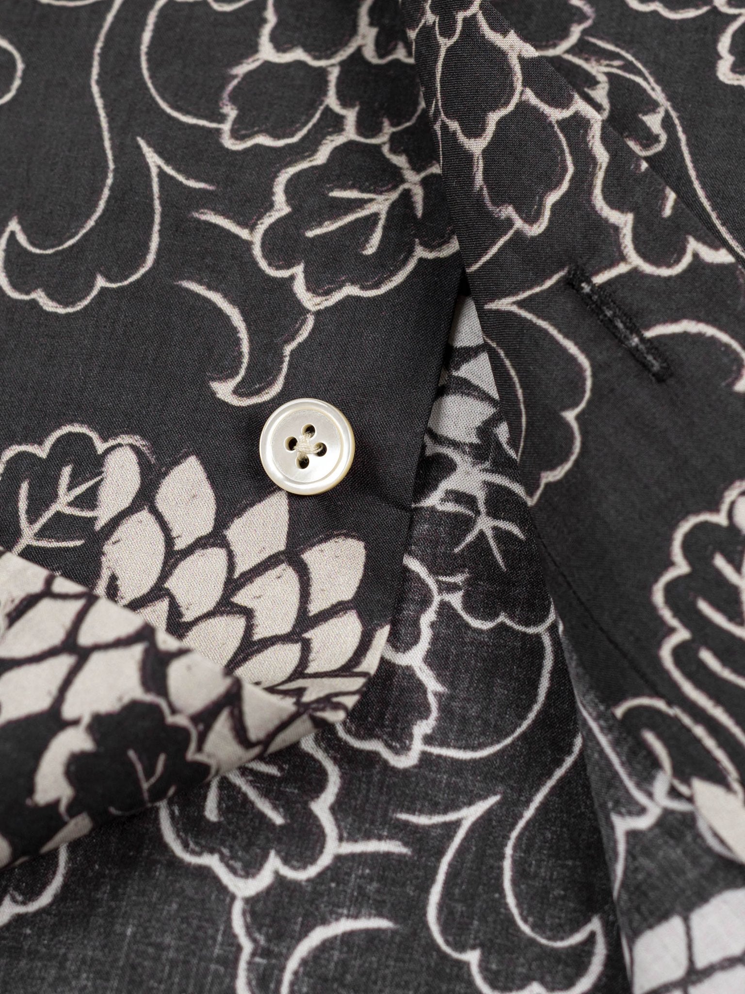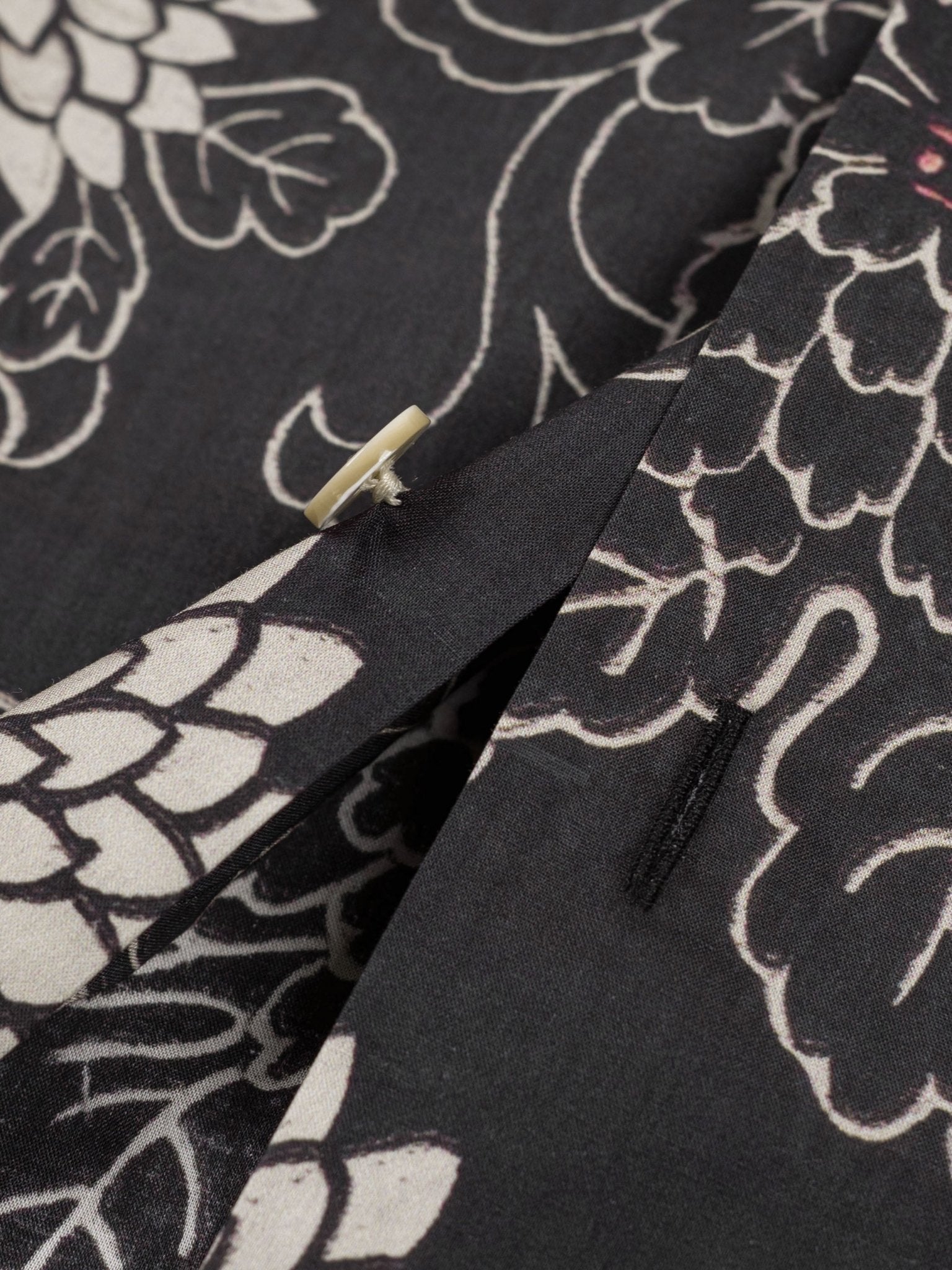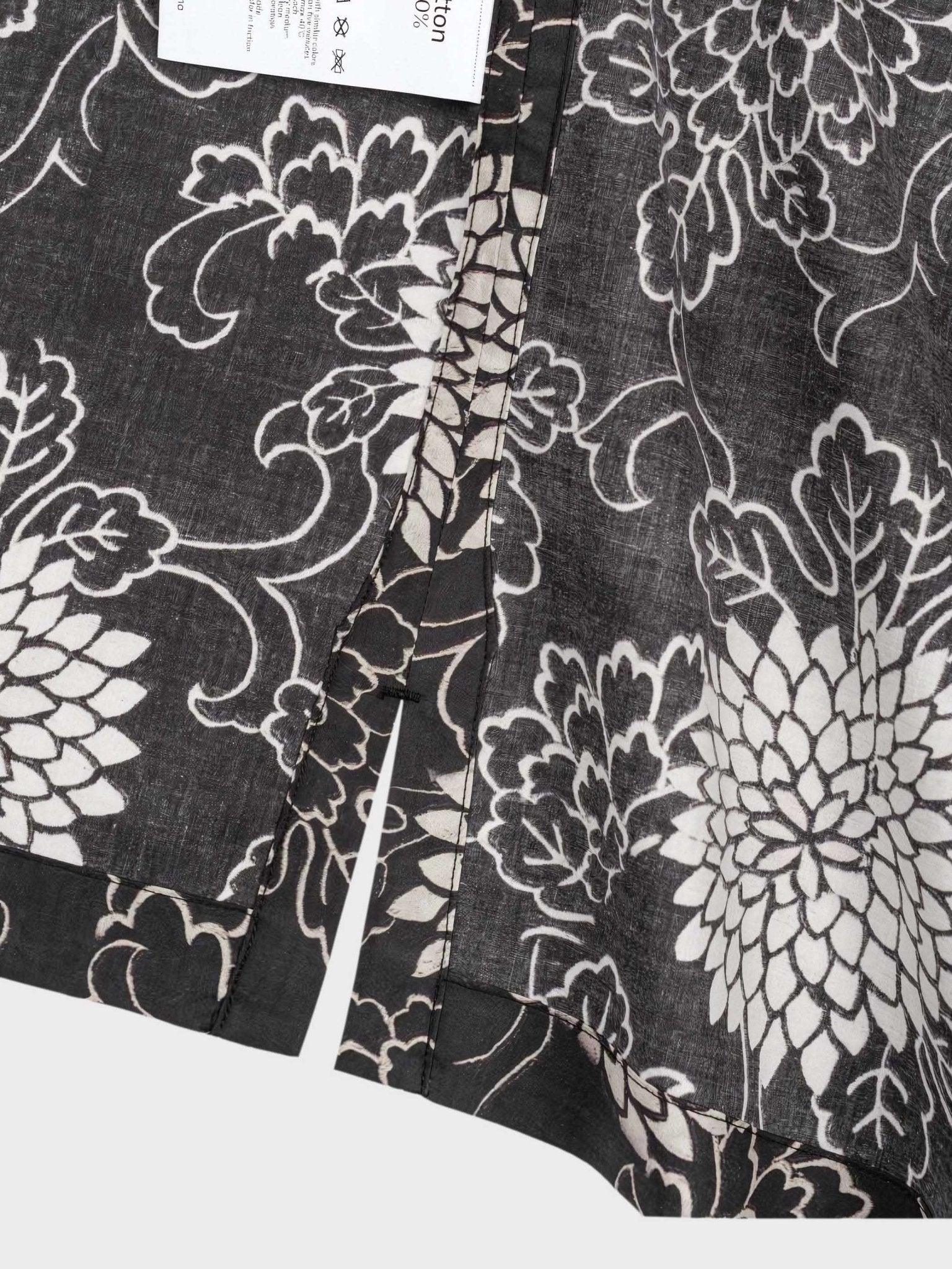 このシャツは、菊花が描かれたデザインが特徴的です。柔らかく涼しい素材で作られており、暑い季節にも快適に着用できます。古風なキューバ襟は、首元をスッキリと開放して涼しさを感じさせます。ビーチやレジャーにもピッタリで、リラックスした雰囲気が漂うトロピカルなスタイルをお楽しみいただけます。