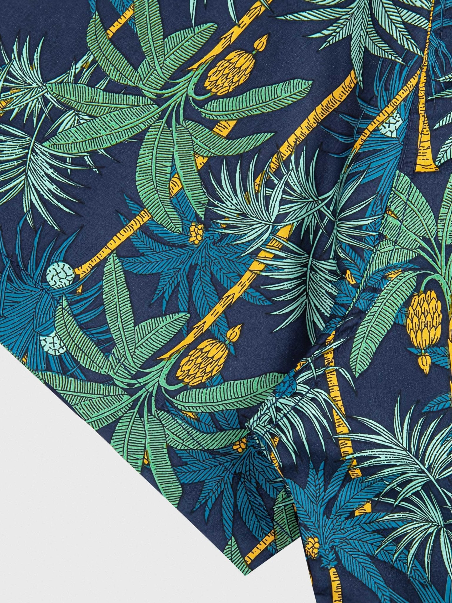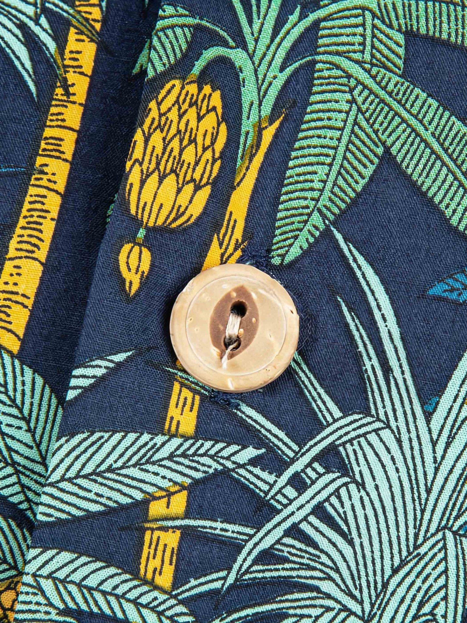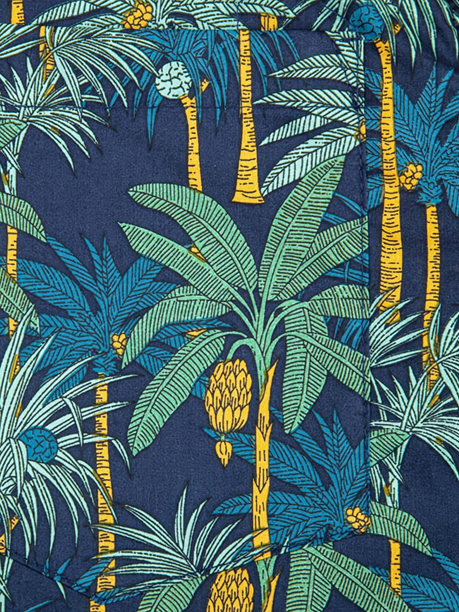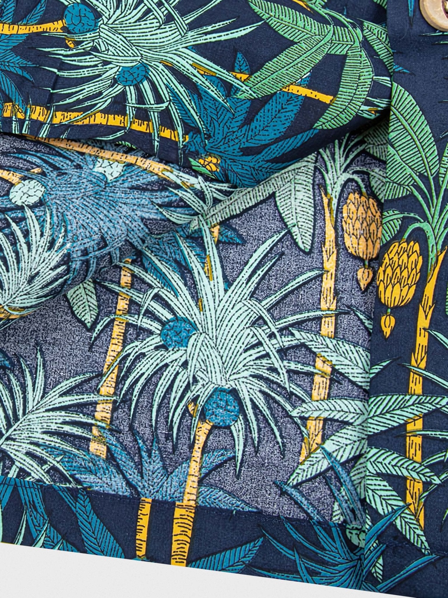 このシャツは、大面積のヤシの木をあしらった鮮やかな柄が特徴的です。ヤシの木柄のシャツは、夏にぴったりの明るく爽やかな印象があります。
