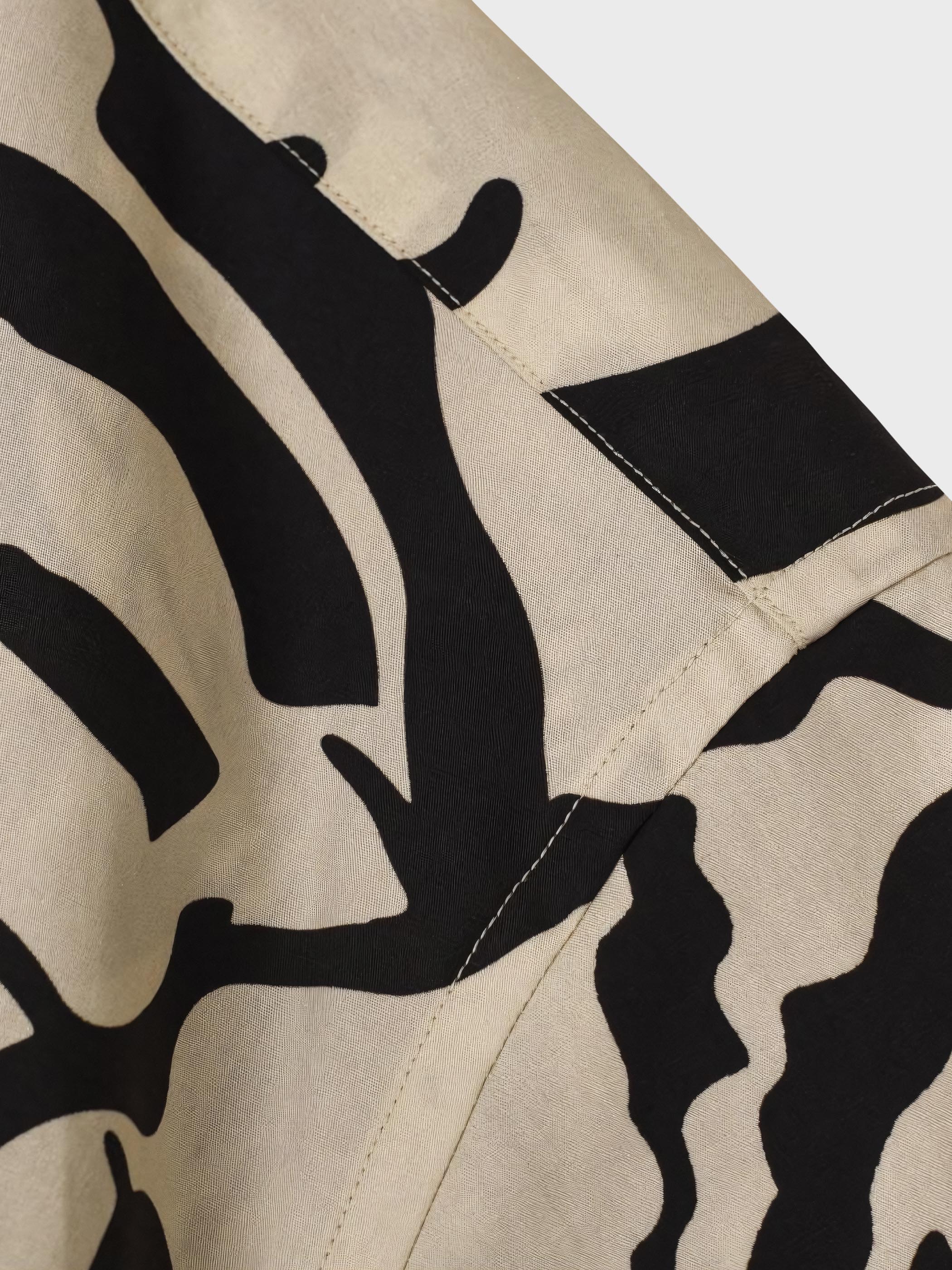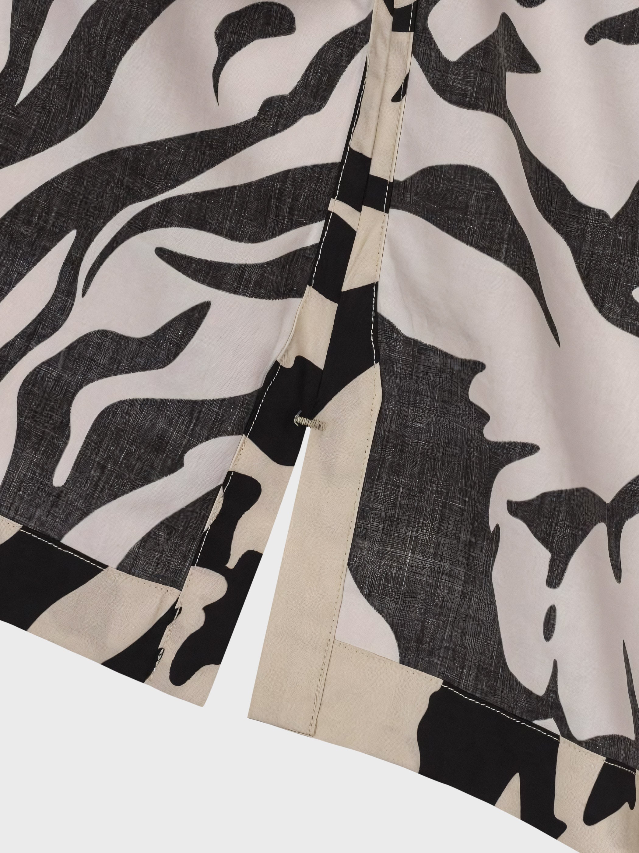 キューバカラーのデザインは、カジュアルでスタイリッシュなスタイルを演出し、生き生きとしたトラ柄のプリントパターンが衬衣にダイナミズムと個性を加えます。