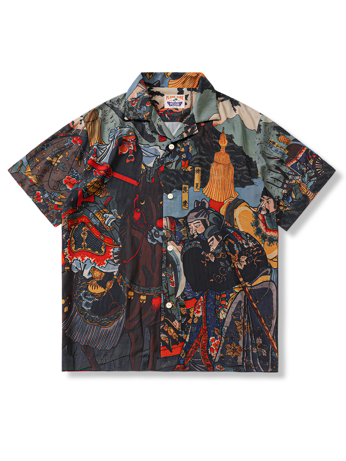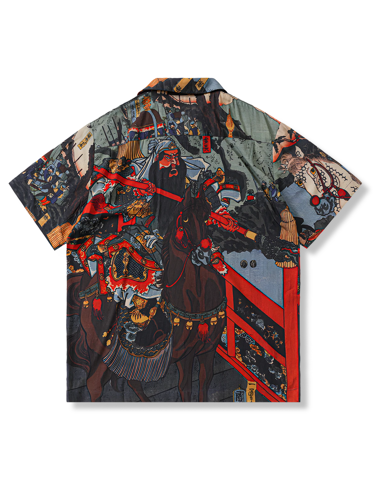 「武者絵」総柄の特徴的なシルエットが目を引くデザイン。プリントインクは水墨風の仕上がりで、他にはない重厚感を演出しています。