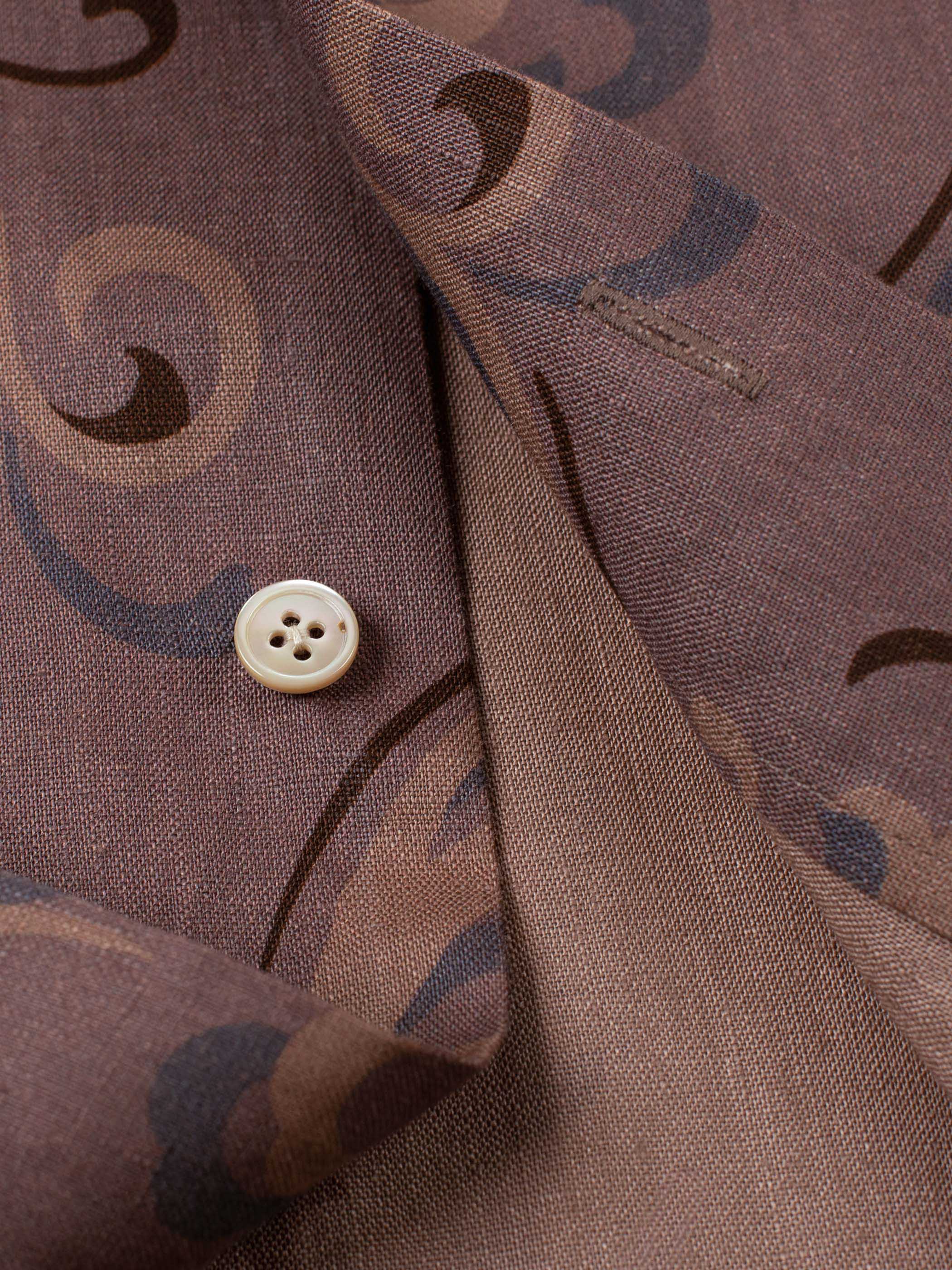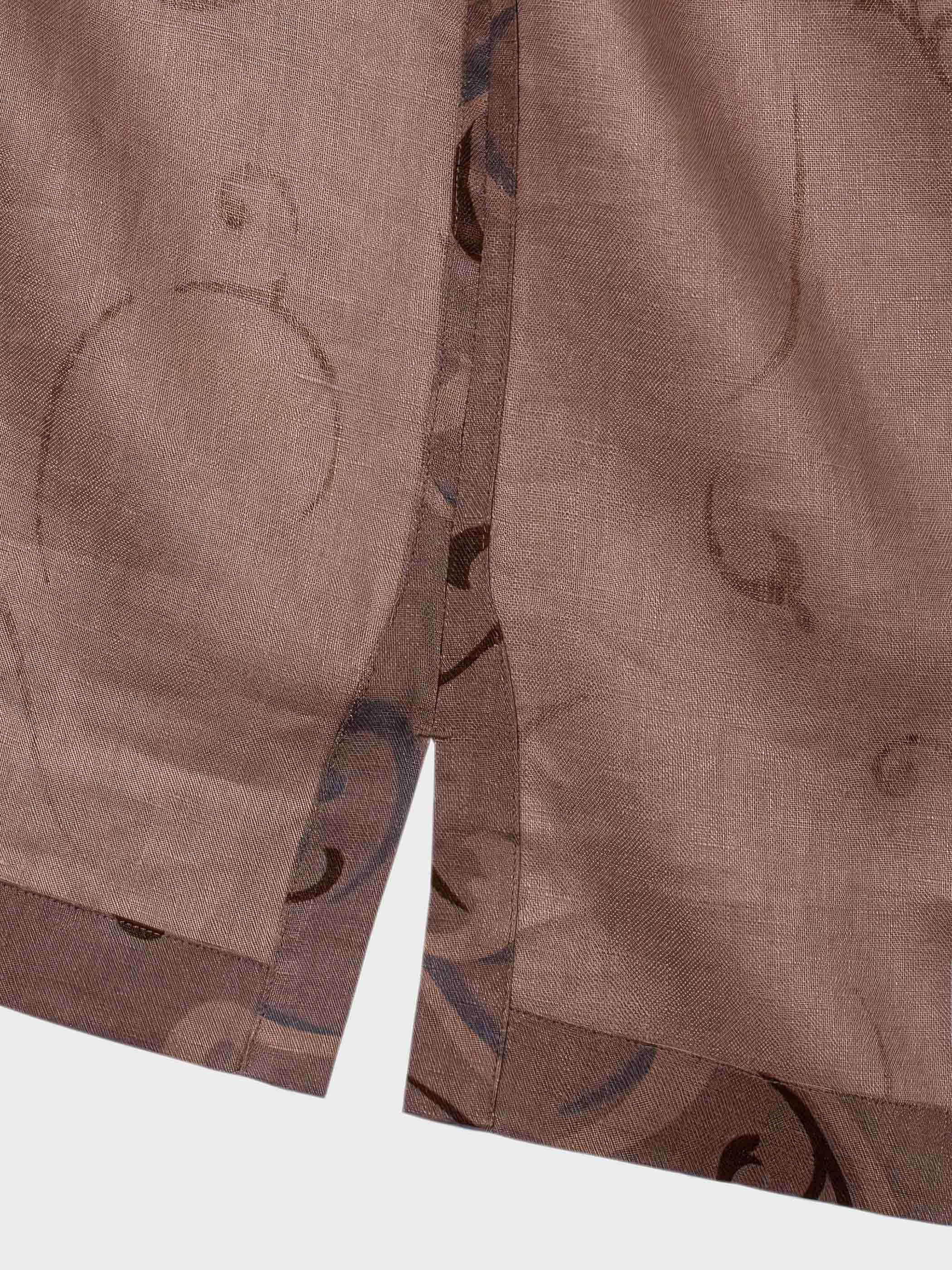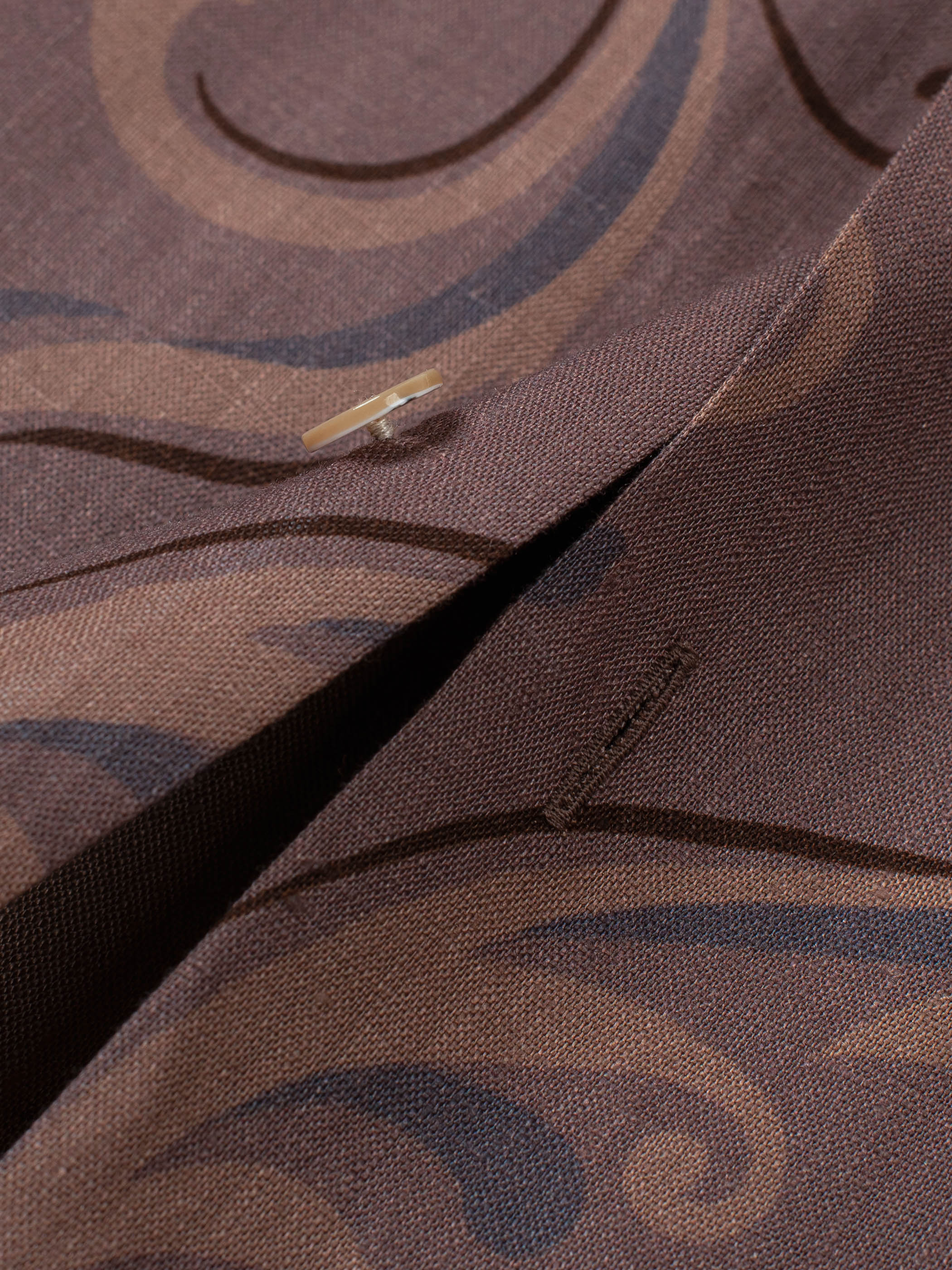 このシャツの素材は100%のリネンで作られています。リネンは天然の植物繊維で、強い透気性と吸湿性を持ち、人体の温度と湿度を調節するのに適しています。リネンの生地は軽くて柔らかく、強度と耐久性があります。また、緻密な加工と染色により、自然な光沢と細かい紋理が表現され、高級感と品質感が際立ちます。