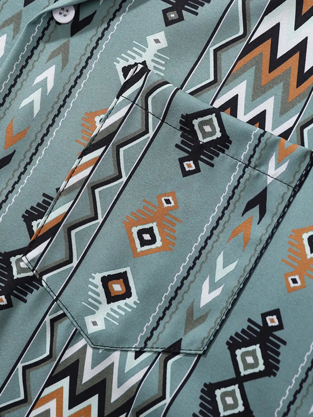 アステカテイストのジグザグ&ダイヤ柄を全面プリントした、軽量ポリエステル製半袖シャツ。