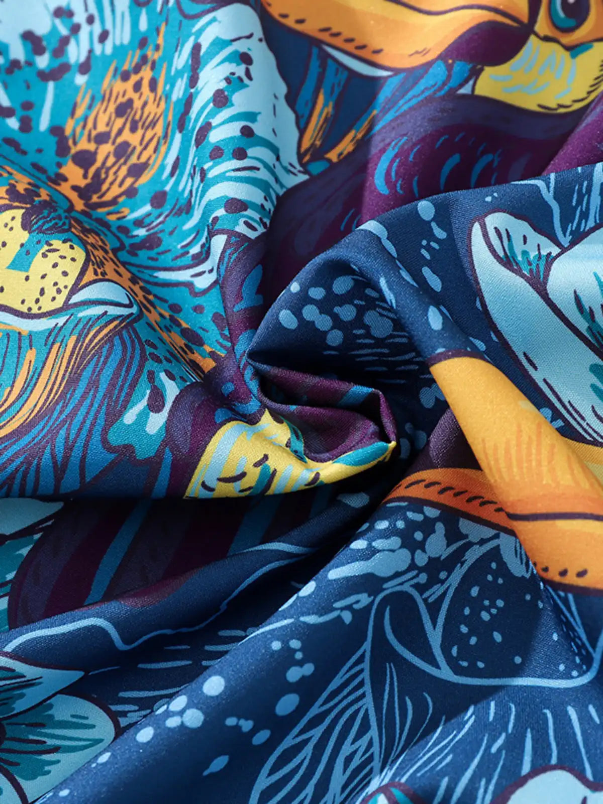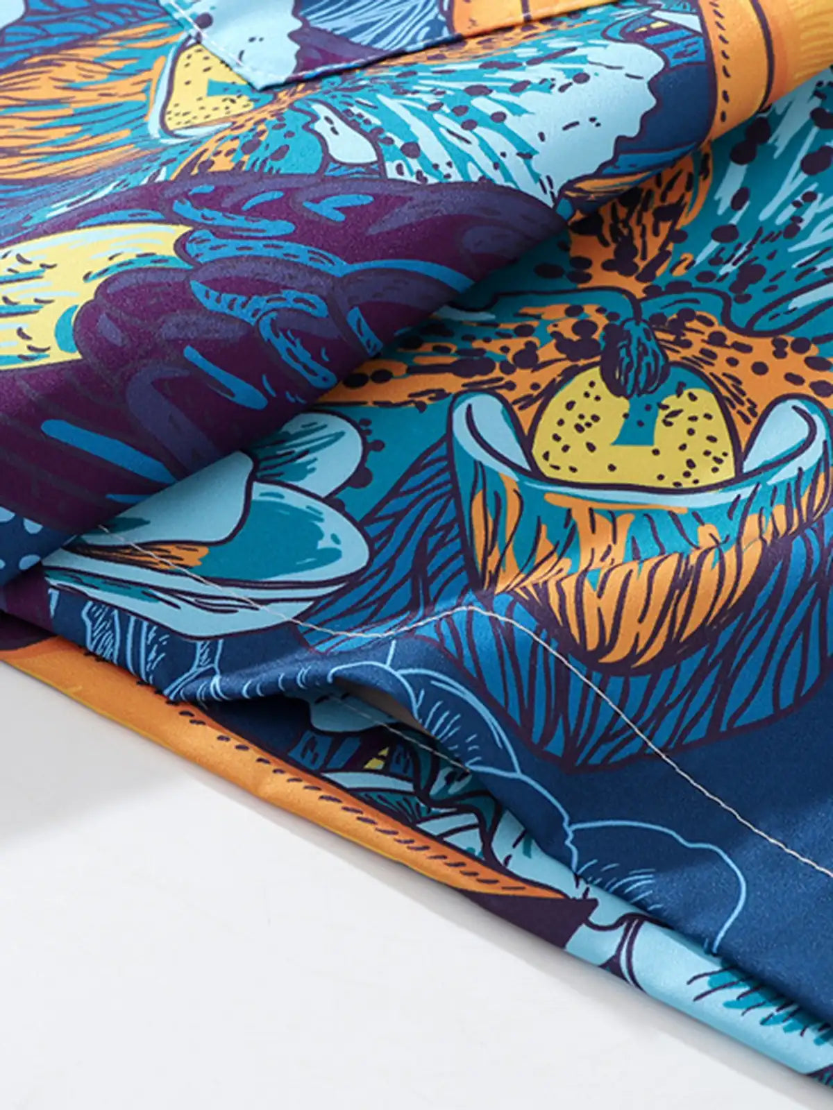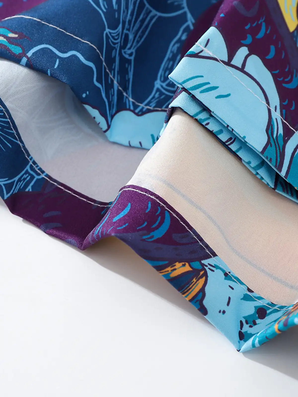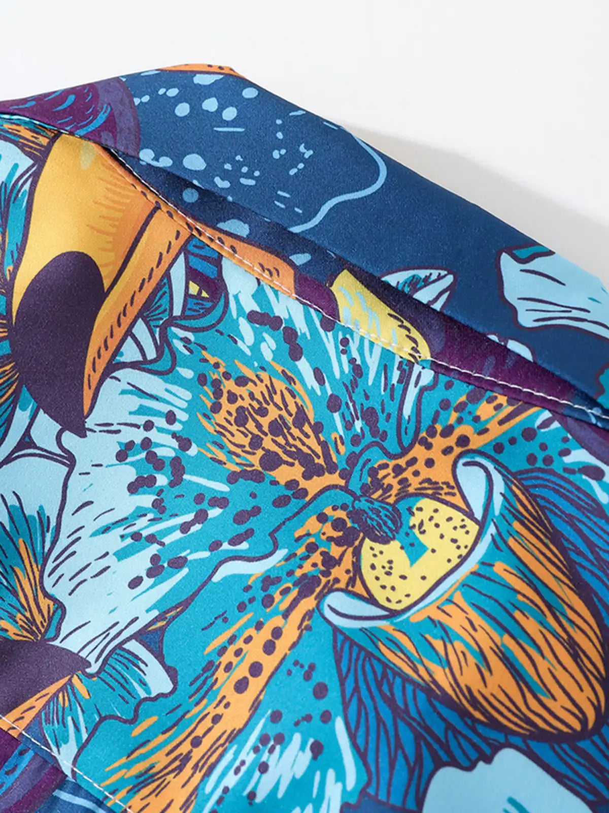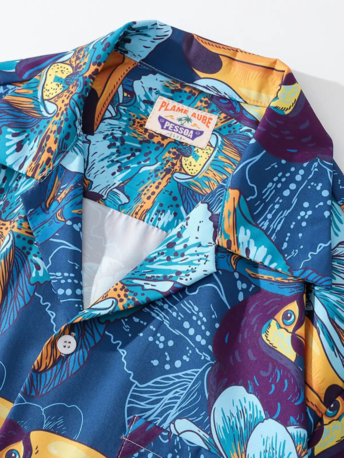 ブライトなブルー地に大胆なバード&フラワー柄を全体プリントし、リゾートやタウンユースで視線を集める一枚。ポリエステル100%生地は光沢を抑えつつドライタッチで速乾性に優れ、シワになりにくい機能性を発揮。オープンカラーとドロップショルダーのリラックスシルエットは、ショーツやライトデニムとの相性も抜群です。