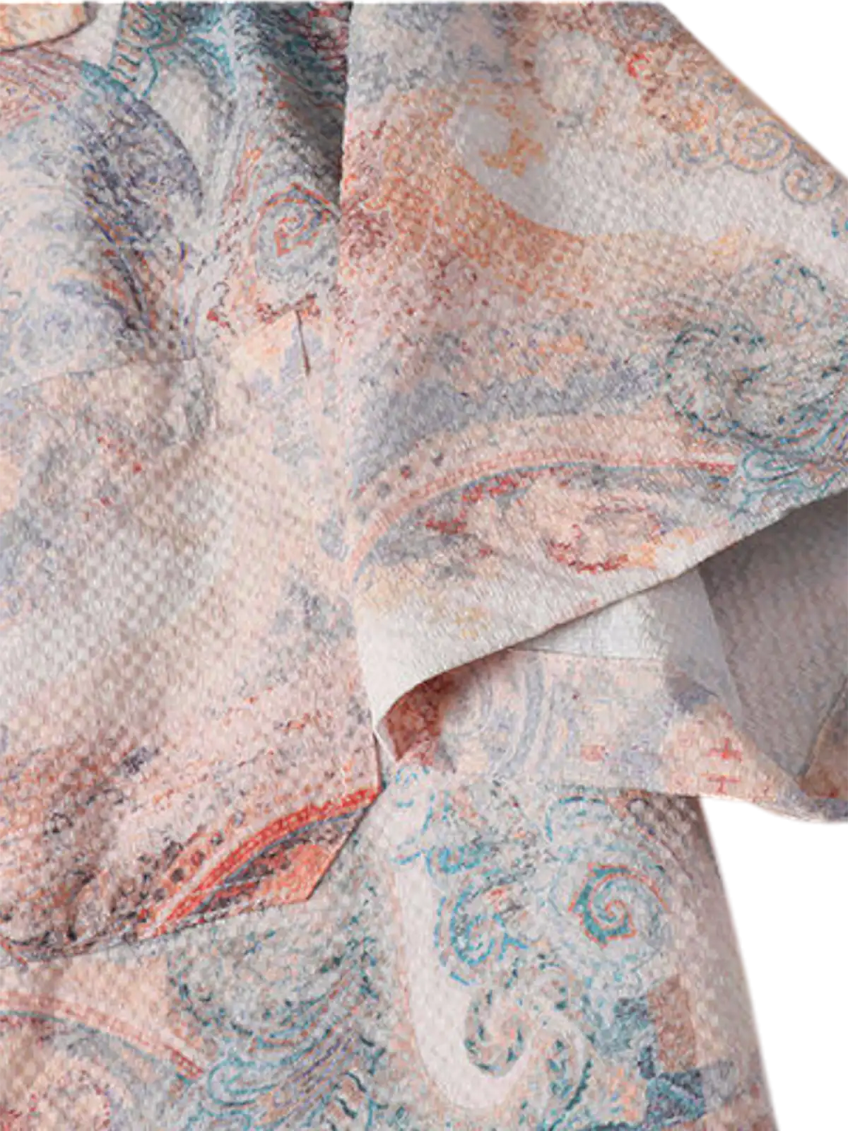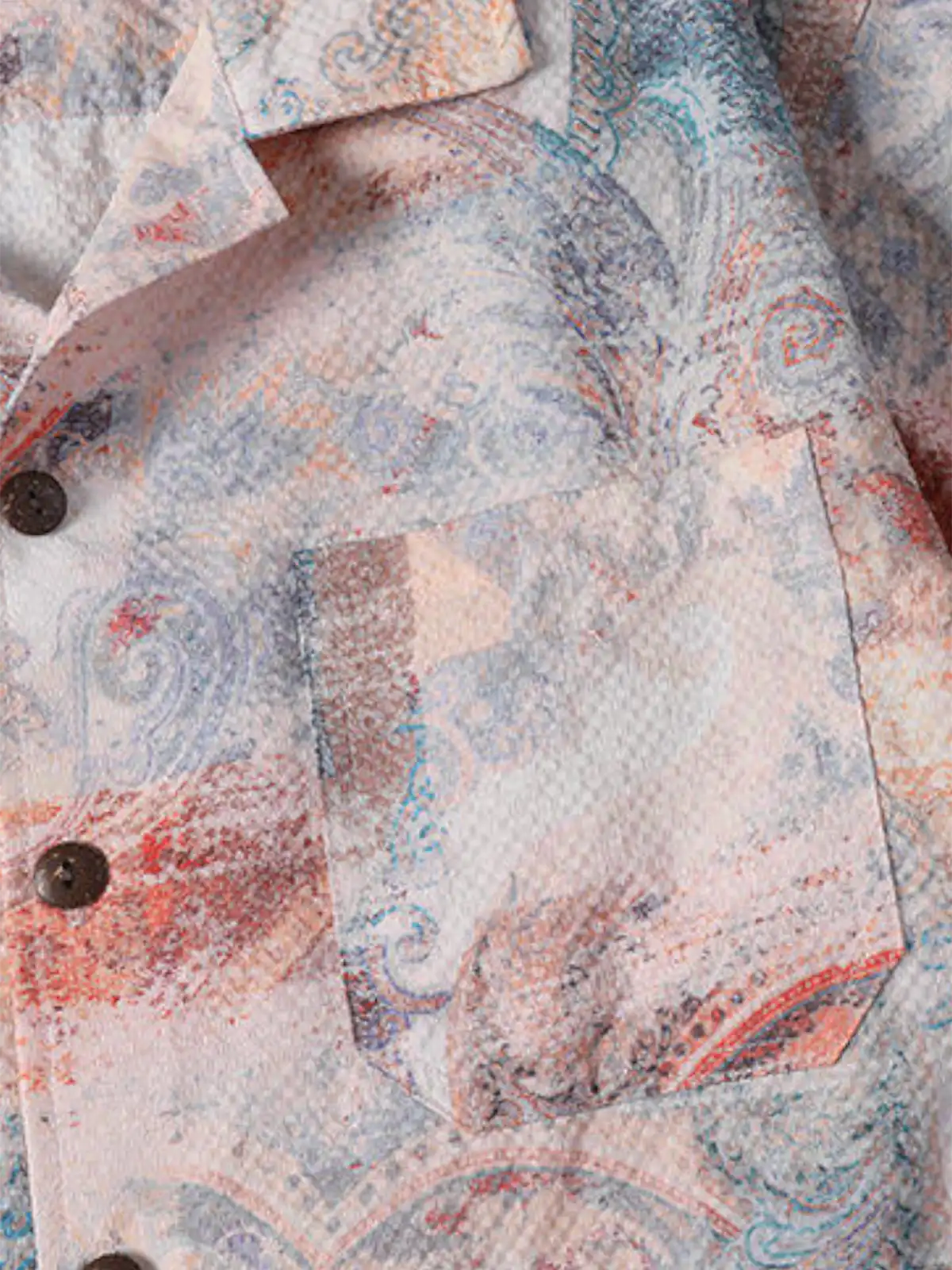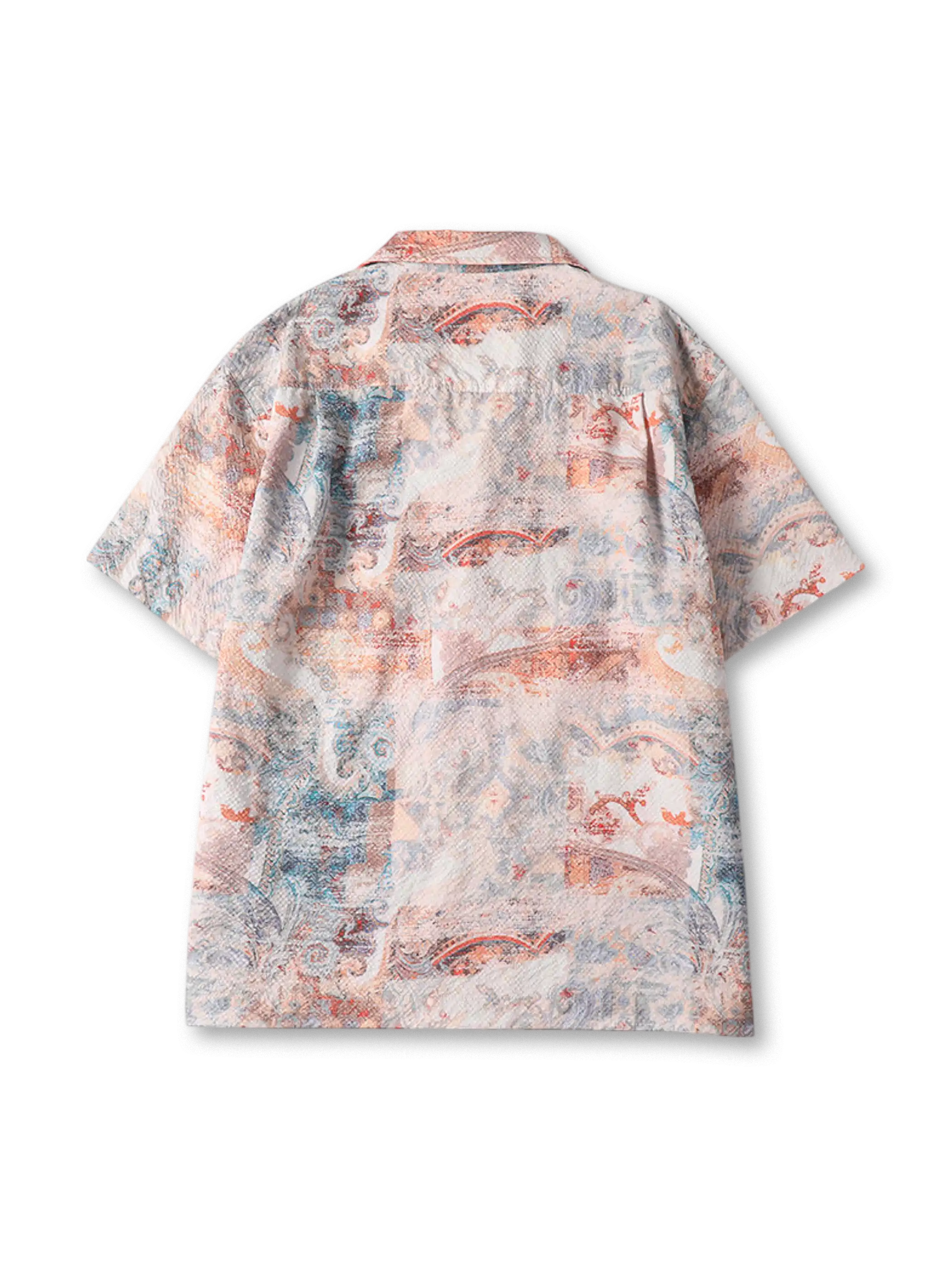 接触冷感機能と立体的シアサッカー生地を組み合わせた、鮮やかなデジタルプリントのキューバカラーシャツ。