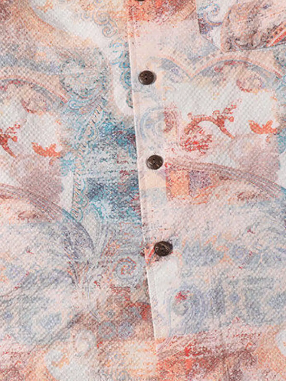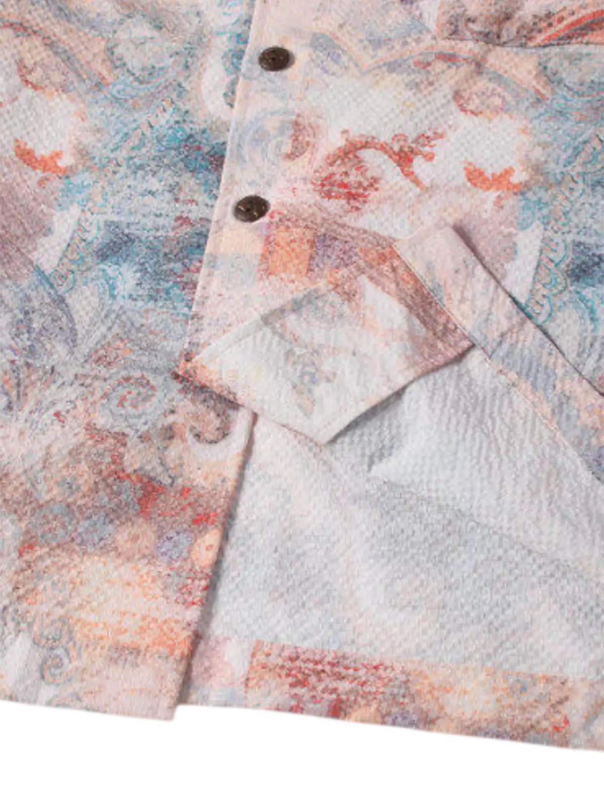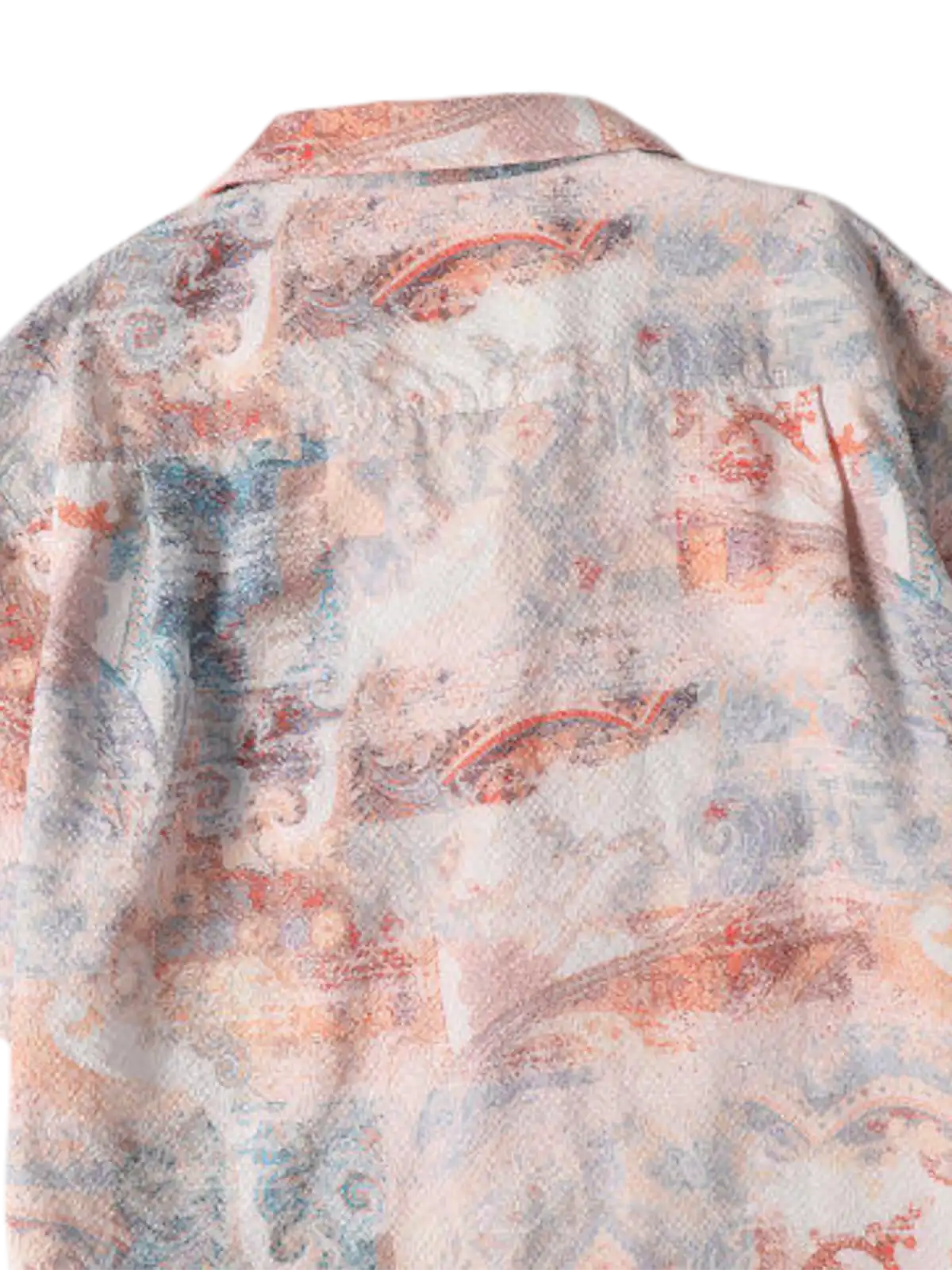 接触冷感機能と立体的シアサッカー生地を組み合わせた、鮮やかなデジタルプリントのキューバカラーシャツ。