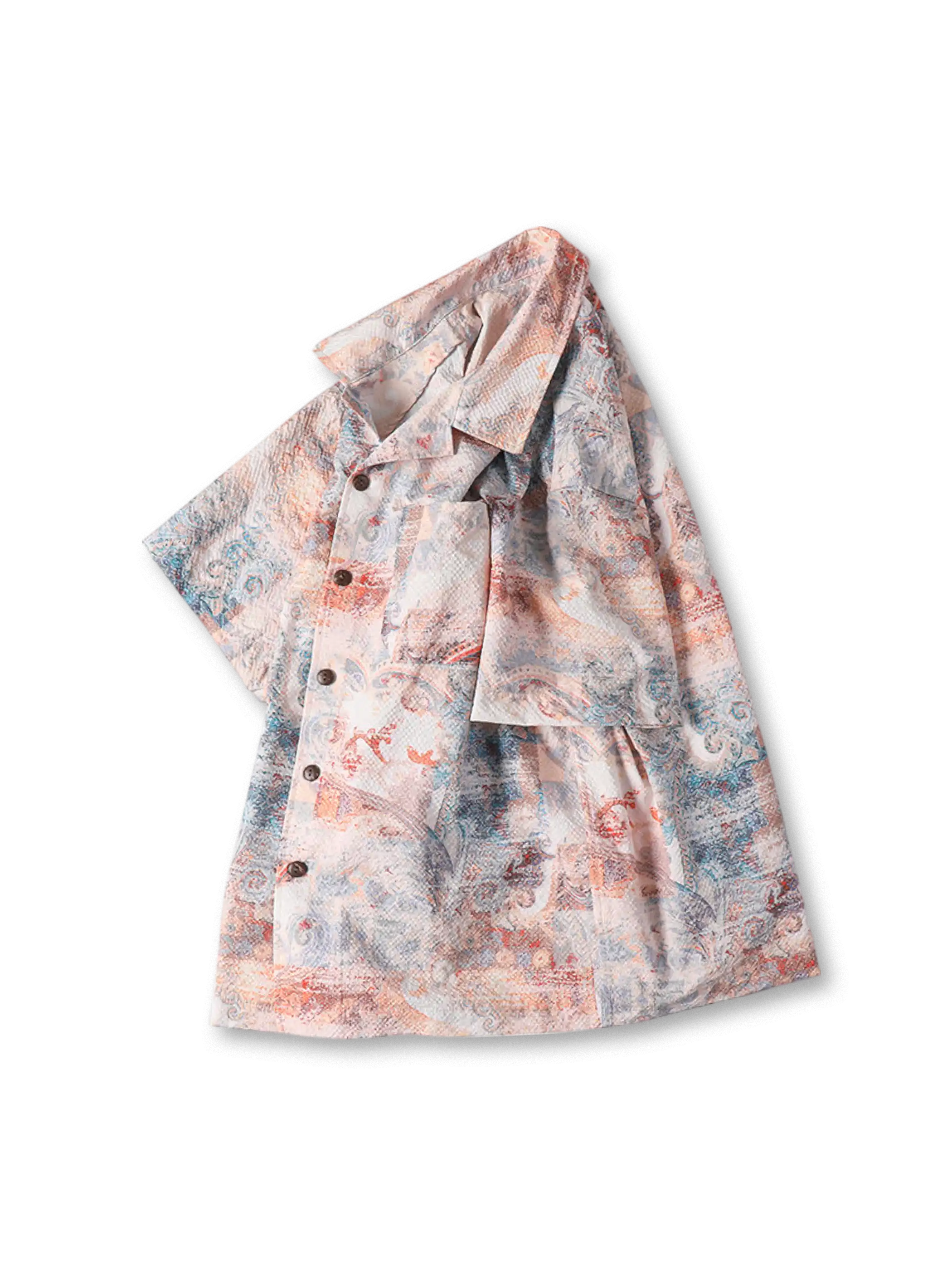 先端の接触冷感テクノロジーを搭載し、肌に触れた瞬間に涼感を発揮。凹凸のあるシアサッカー織りが通気孔となって活気のある立体感を生み、ソフトなドライタッチで夏場も快適。デジタルプリントの抽象柄が一枚で存在感を放ち、リゾートやシティユースにマッチするボックスシルエットで、男女問わず着用可能なユニセックスデザイン。