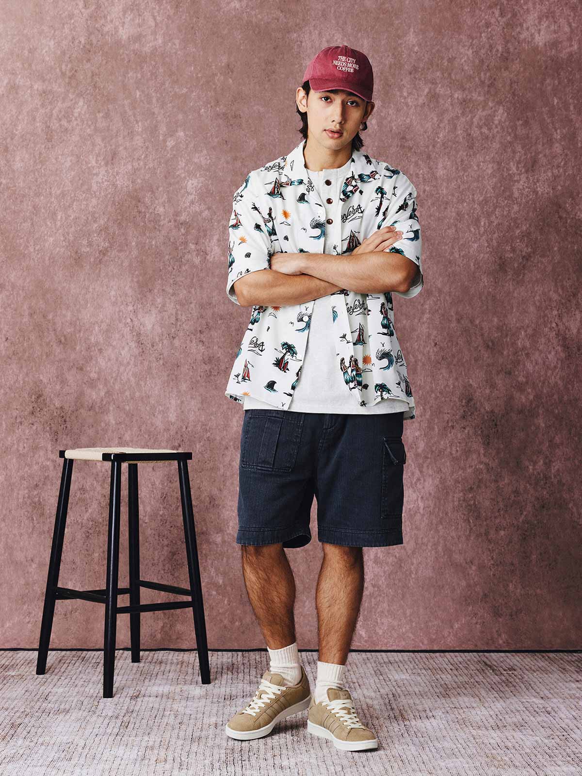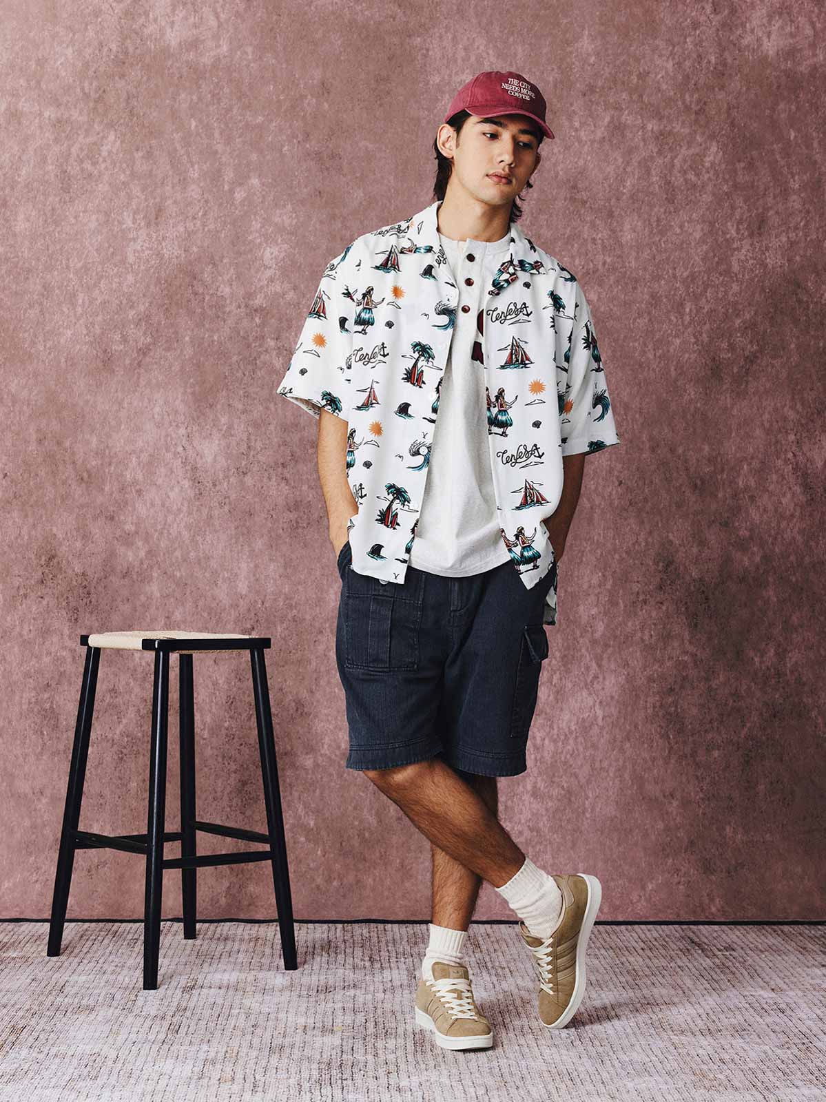 ハワイアンシャツはそのリラックス感と快適な着心地で夏の定番アイテムとして人気です。今季、PESSOAが発表したこのシャツは「サンバ ビーチ」をテーマに採用し、サンバダンサー、ヤシの木、サーフボード、ヨットなどを描いたデザインで、海辺のロマンチックな雰囲気とサンバの活気あふれるエネルギーを表現しています。このユニークな文化的要素が夏のカジュアルな雰囲気に軽快さを加えています。
