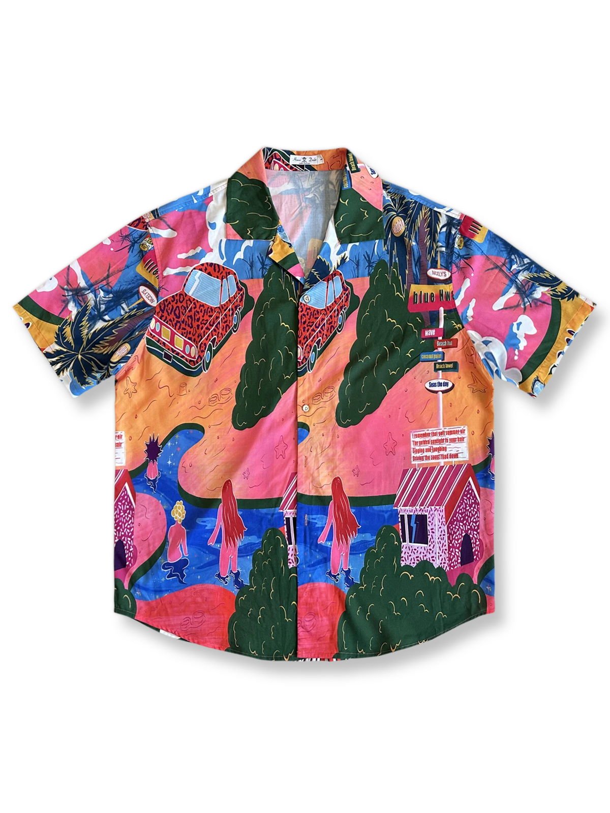このシャツは、ポップアートとストリートカルチャーにインスピレーションを得た物語性豊かなパターンデザインが特徴です。色彩のブロックとグラフィックストーリーを用いて視覚的に捉え、現代アートとレトロスタイルを融合させた現代ファッションとナラティブアートの組み合わせを表現しています。