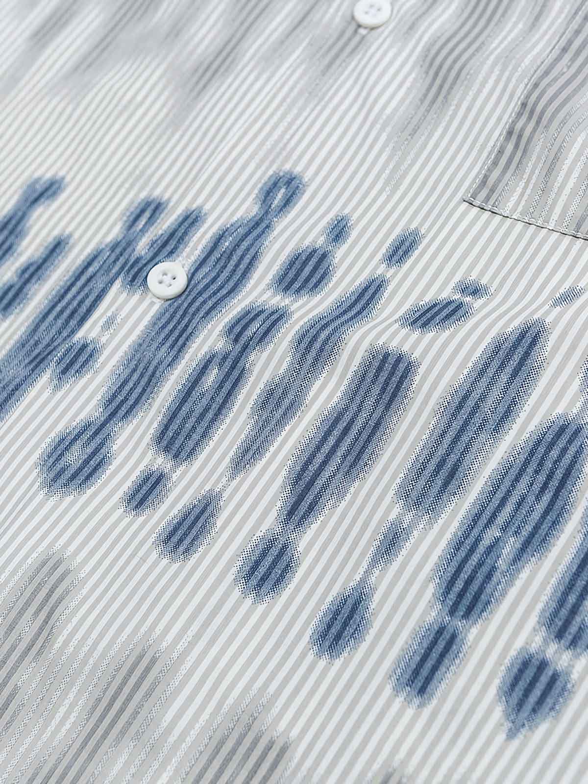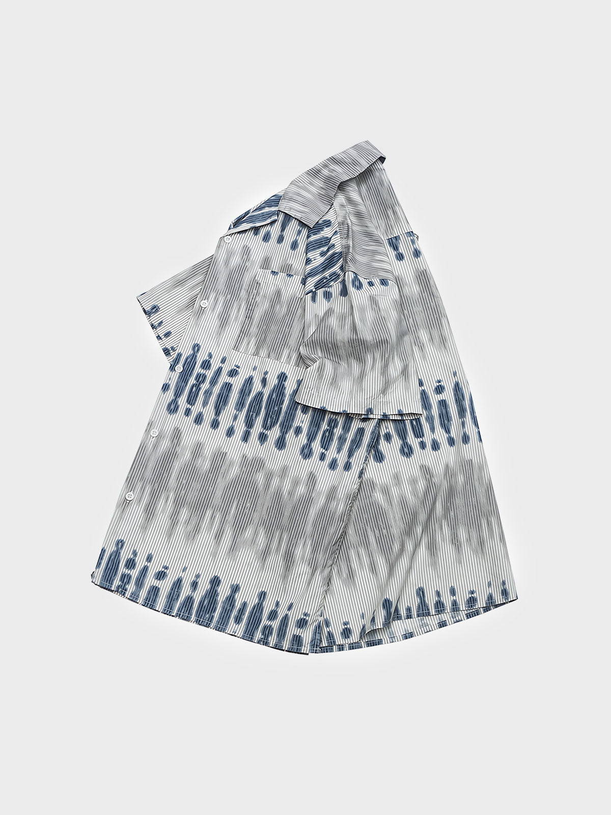 タイダイパターンは、一つ一つ手作業で施されており、そのため各シャツは世界で一つの作品となっています。使用される生地は、その鮮やかな色彩と柔らかな触感が特徴で、夏の装いにぴったりです。