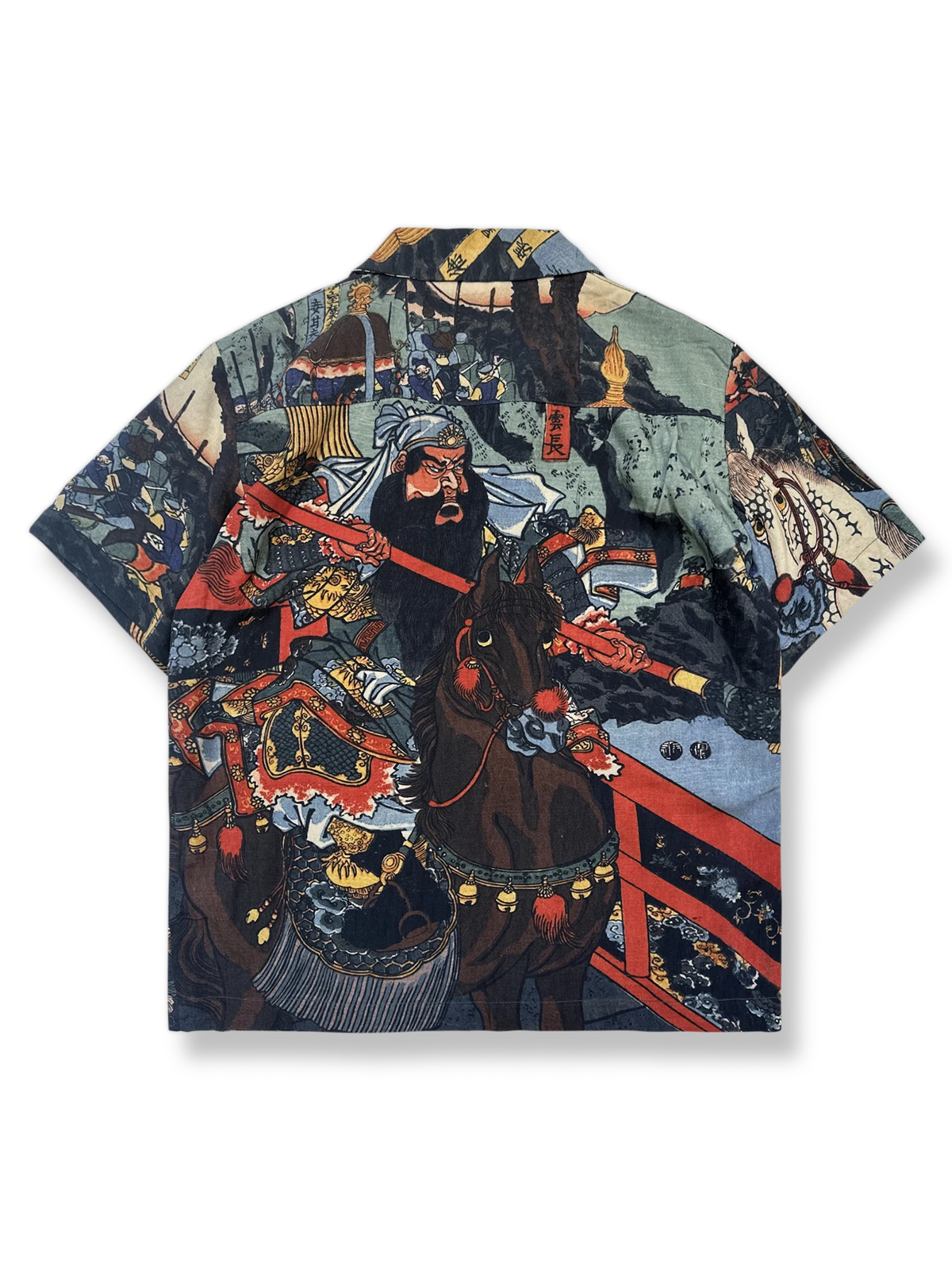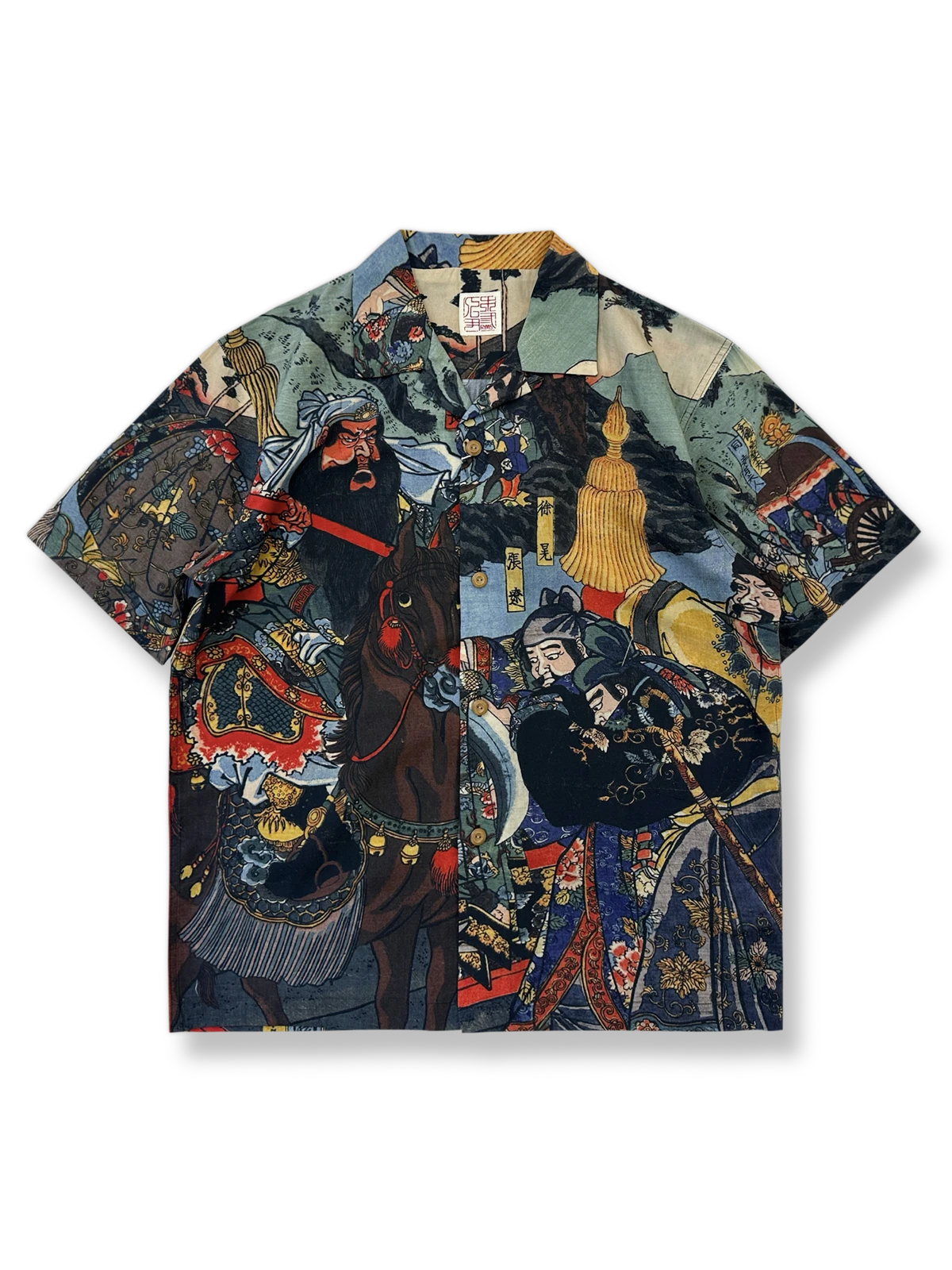 このユニークなハワイアンシャツは、中国三国時代の歴史的エピソードを現代のファッションに融合させています。勇猛で忠義に満ちた関羽をテーマに、伝統的な中国画の要素を取り入れたプリントが施されており、彼の英雄的なイメージを洗練されたスタイルで表現しています。