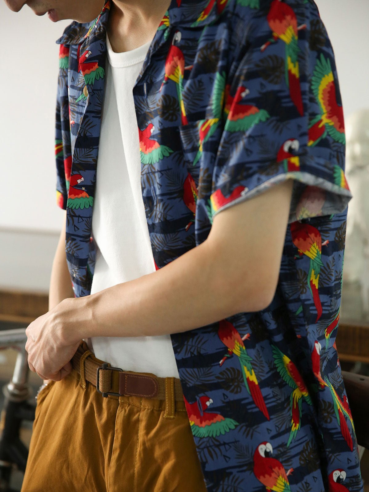このアロハスタイルの半袖シャツは、100%コットンの高密度薄手素材を使用しており、手触りが良く、通気性が高いので、夏に最適です。シャツ全体に色鮮やかなオウム柄が施されており、濃厚なトロピカル感を演出します。クラシックなアロハシャツスタイルで、開襟とゆったりとしたフィット感が特徴です。ファッション性と快適性を兼ね備えた夏のワードローブの必需品です。