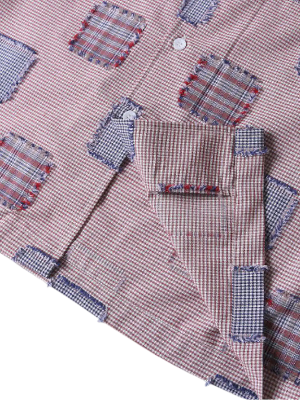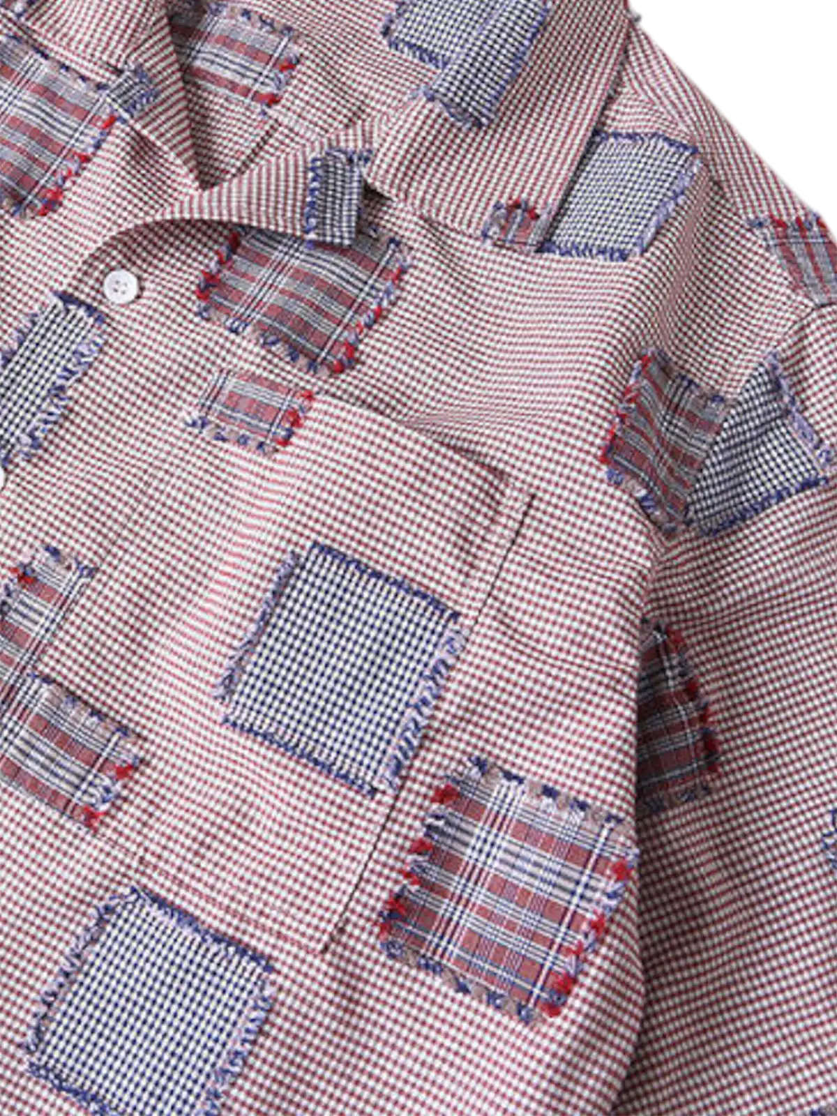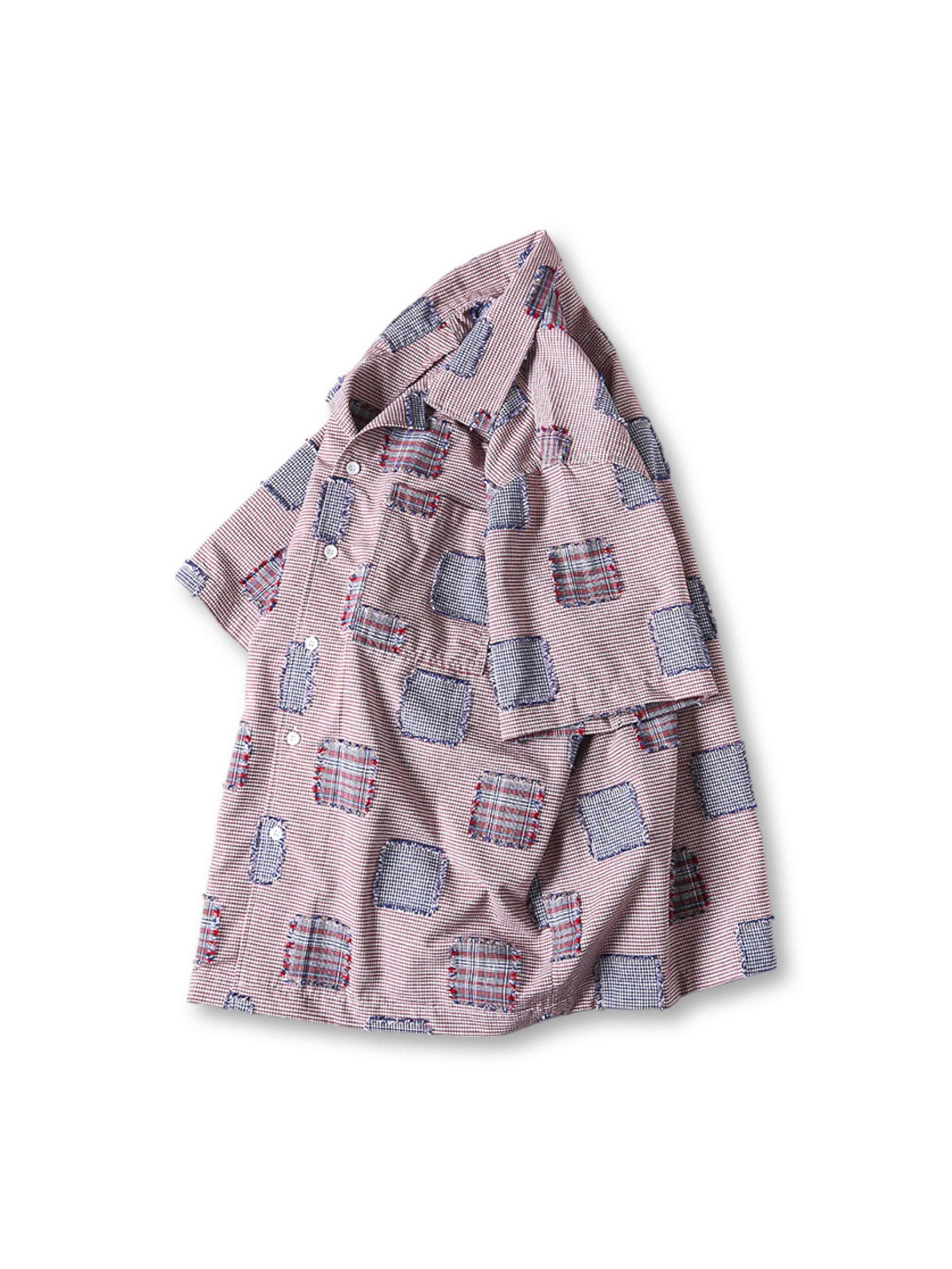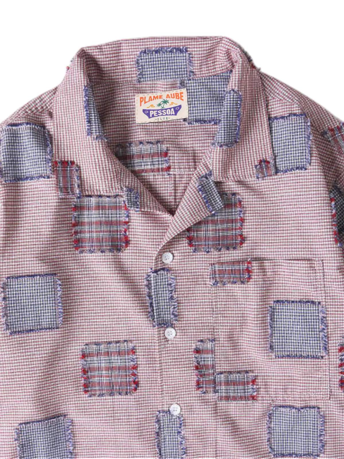 色織りの細格子とパッチワークが生む立体感が魅力の、リラックスシルエットキューバカラーシャツ。