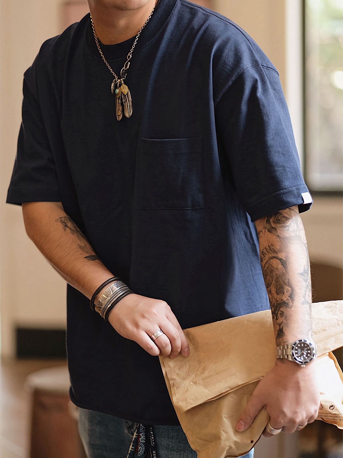 このベーシックなTシャツは、耐久性と快適性に優れたヘビーデューティコットン素材を使用しています。チューブ型カットオフデザインとドロップショルダースタイルで、より良い快適性と自由度を提供します。胸にシンプルなポケットを備えており、実用性とデザイン性を兼ね備えています。シンプルな無地デザインは様々な場面で活躍し、日常の着こなしに必須のアイテムです。コーディネートの提案:デニムパンツやカジュアルパンツと合わせて、簡単にファッショナブルなカジュアルスタイルを演出します。