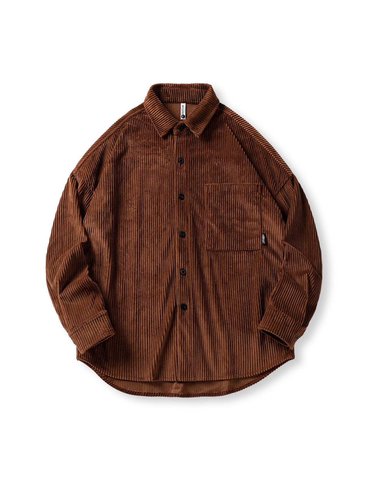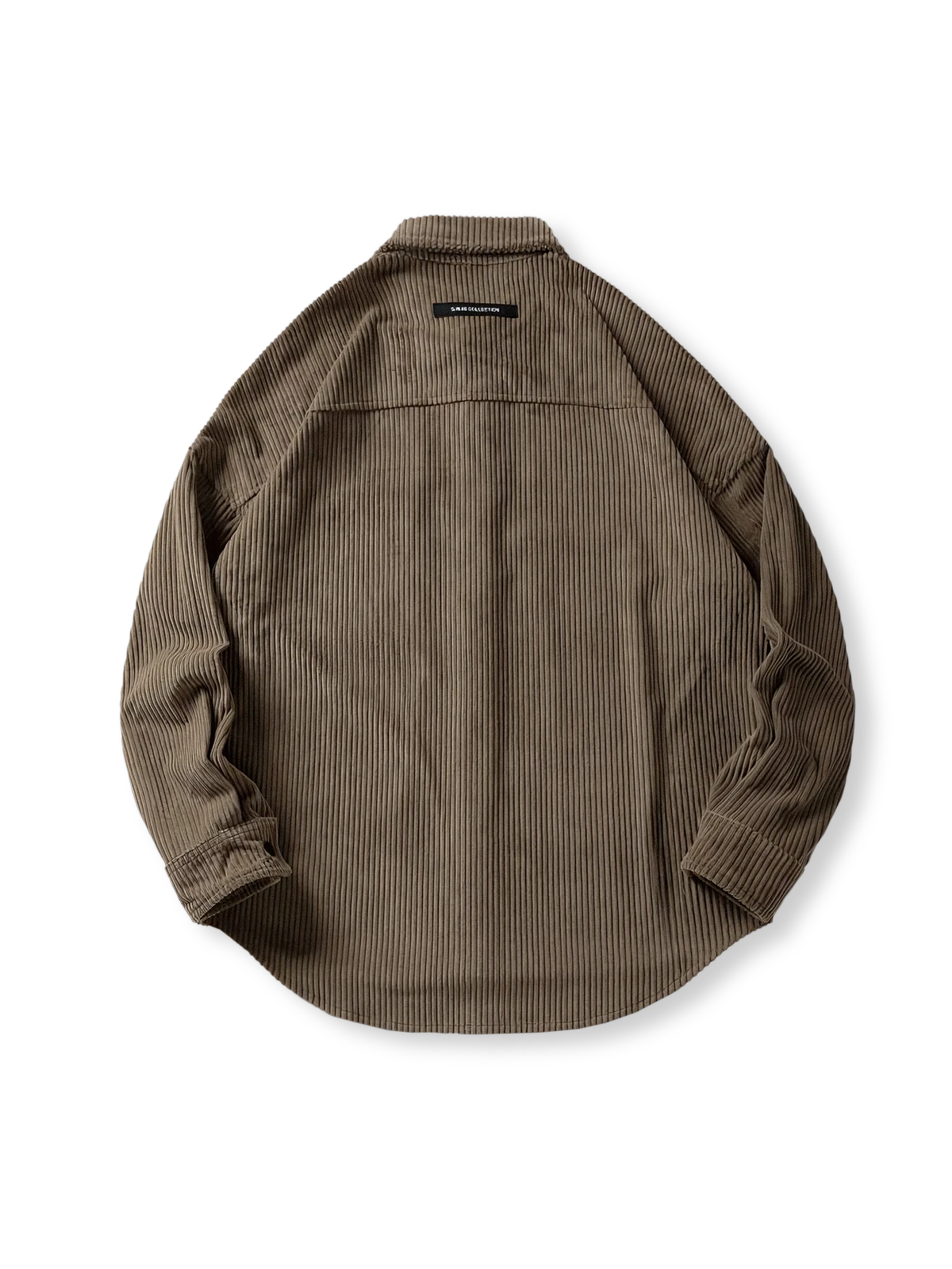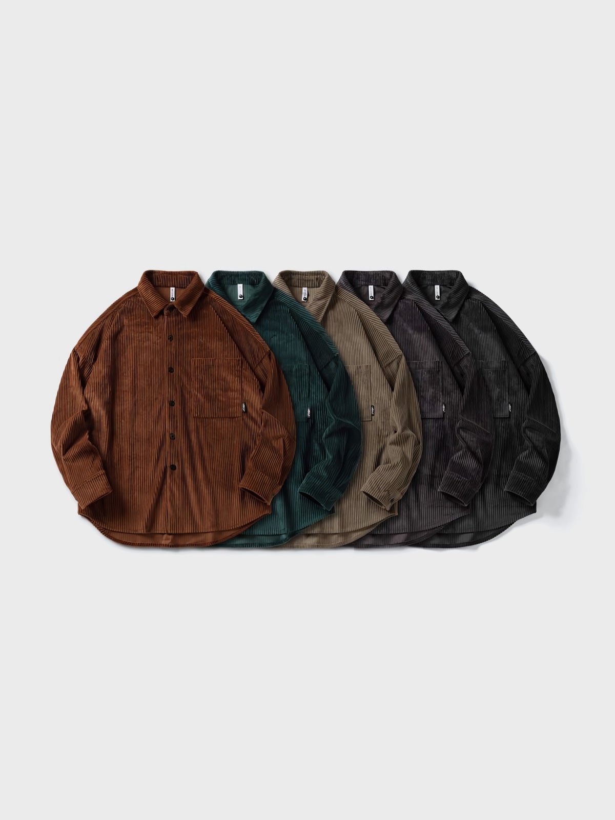 このコーデュロイワークシャツは、100%コットンのコーデュロイ素材を使用し、柔らかな手触りと上質な質感が特徴の一着です。秋冬にぴったりで、シンプルかつクラシックなデザインが、どんなスタイルにも自然に溶け込みます。ドロップショルダーのシルエットがリラックス感を演出し、快適な着心地を提供。胸元の大きなポケットが実用性を高め、ワークスタイルの要素を取り入れたデザインです。単独での着用やインナーとしても活用でき、カジュアルでスタイリッシュなコーディネートを簡単に作り上げる、日常の必須アイテムです。