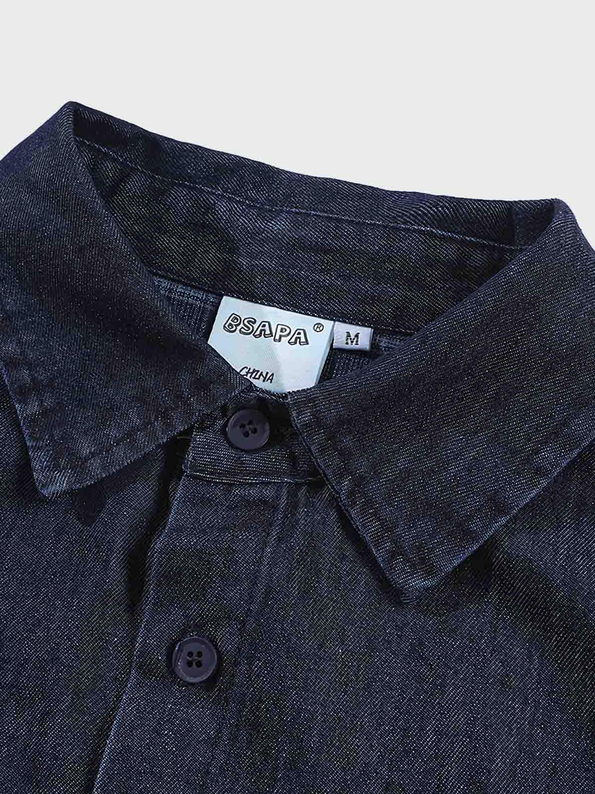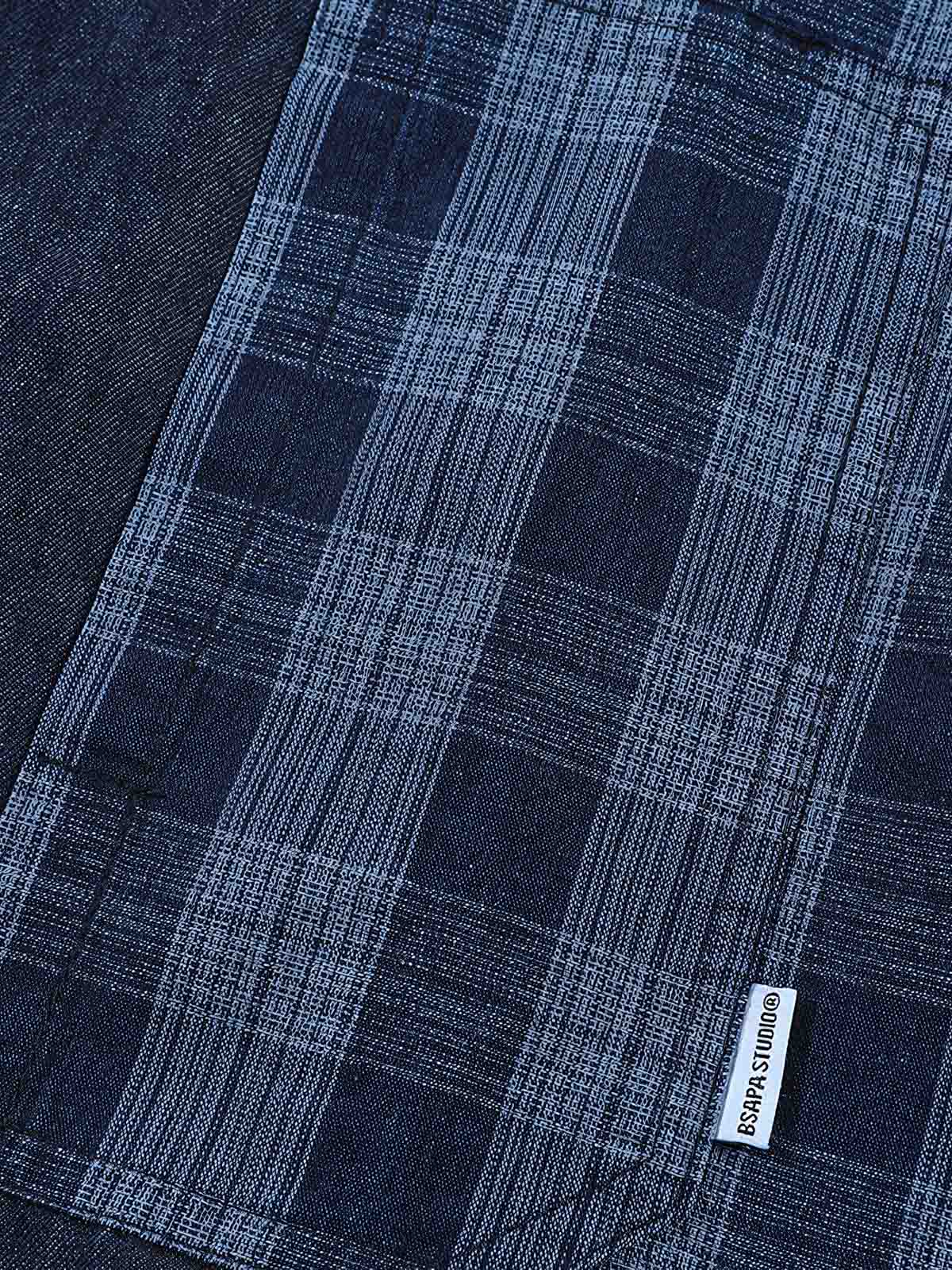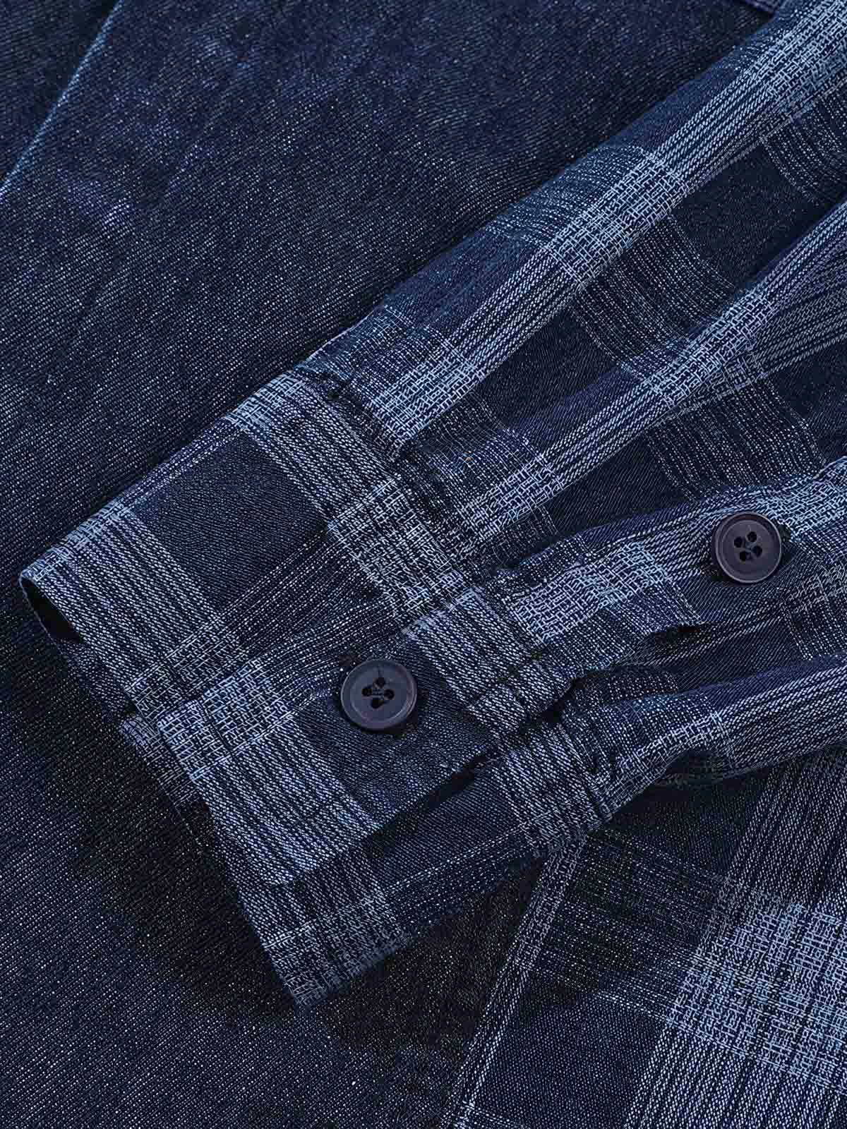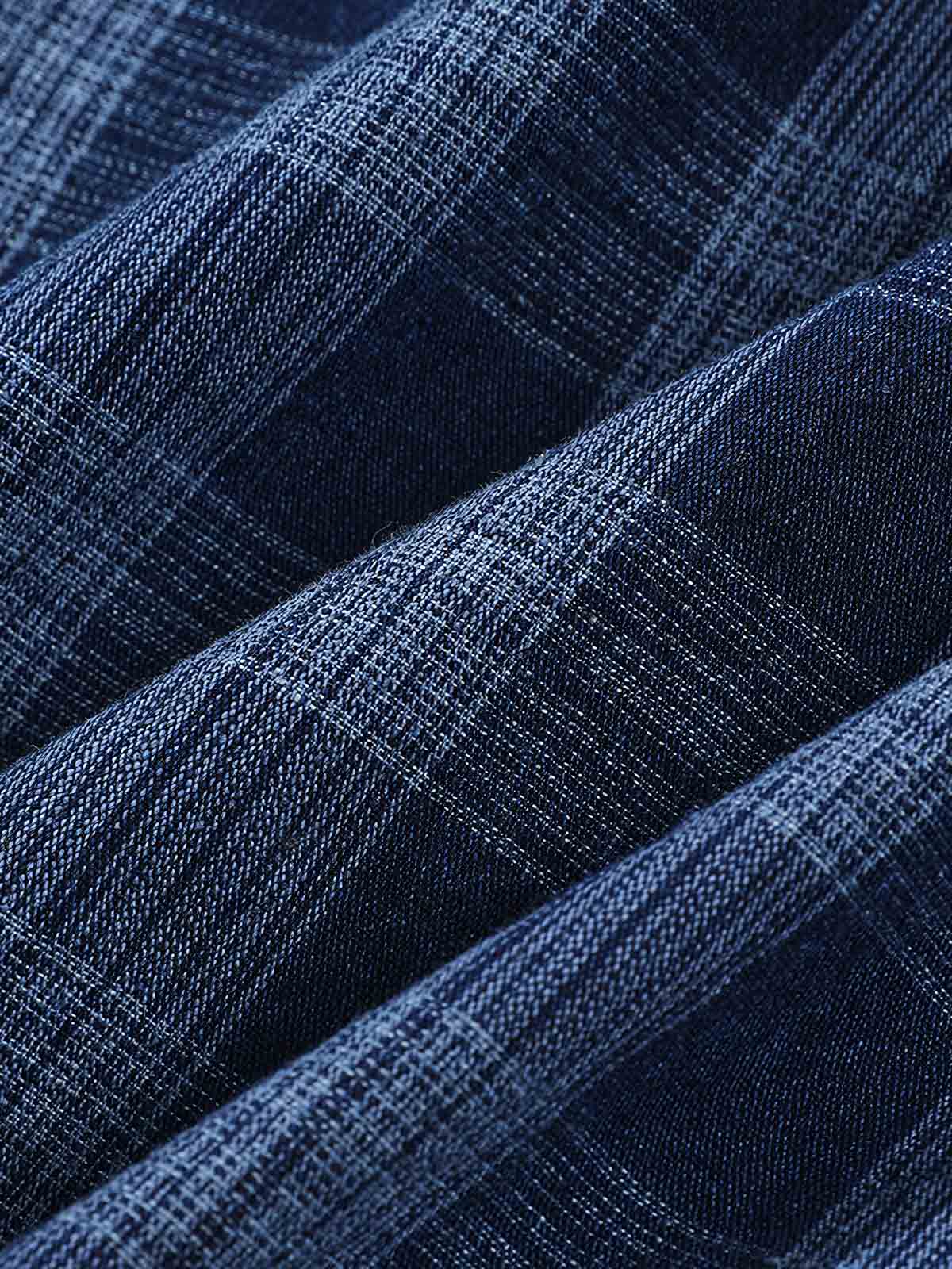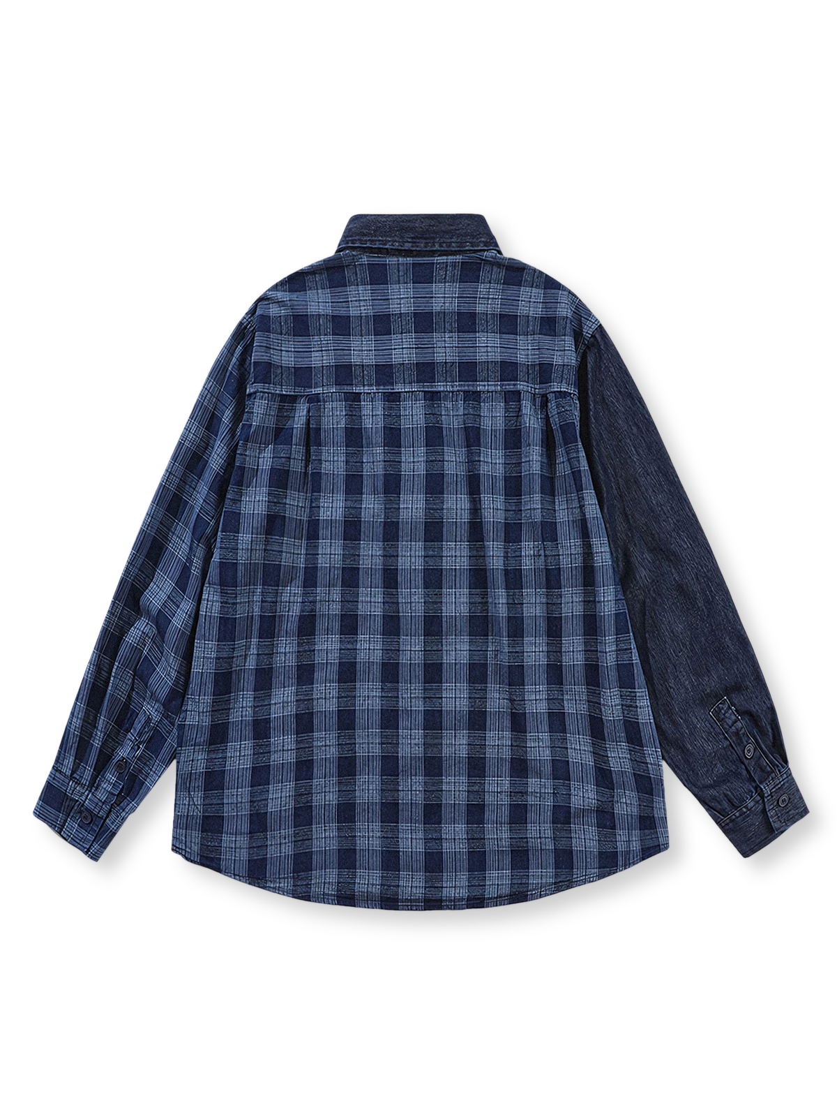 高品質のデニム素材を使用し、衣服には自然な色落ちとグラデーション処理を施しており、それぞれのシャツにユニークな風合いを与えています。チェック部分はコントラストを生み出し、視覚的な興味を引きます。