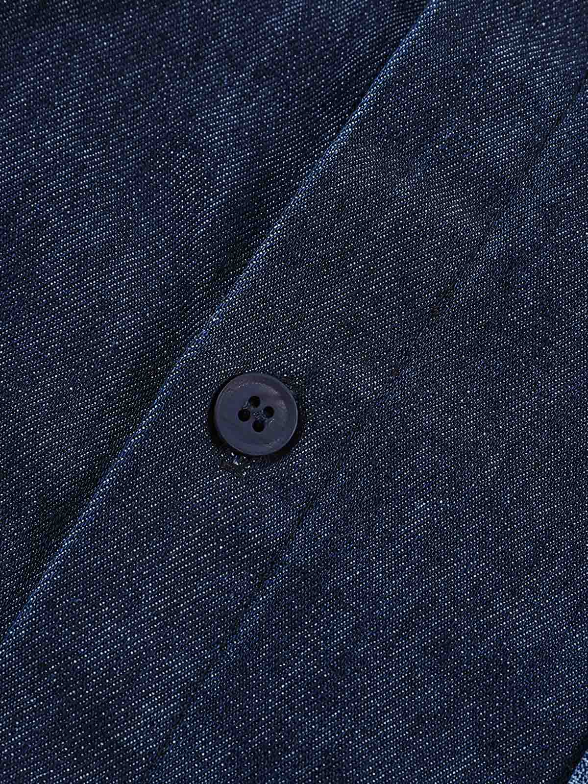 このシャツは適度なゆとりを持つレギュラーフィットで、快適さと動きやすさを兼ね備えています。デニムのしっかりとした質感がカジュアルながらも洗練された印象を与えます。