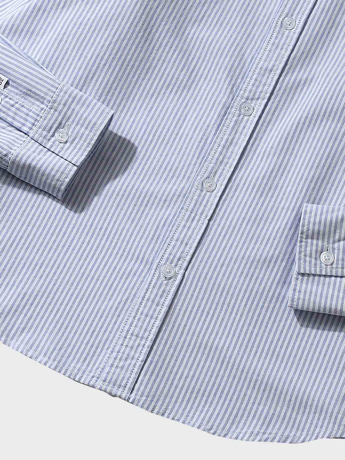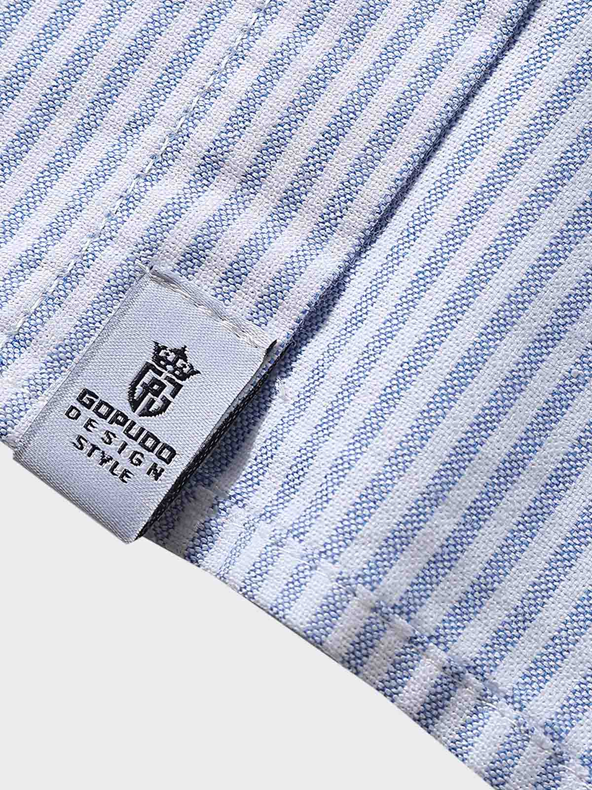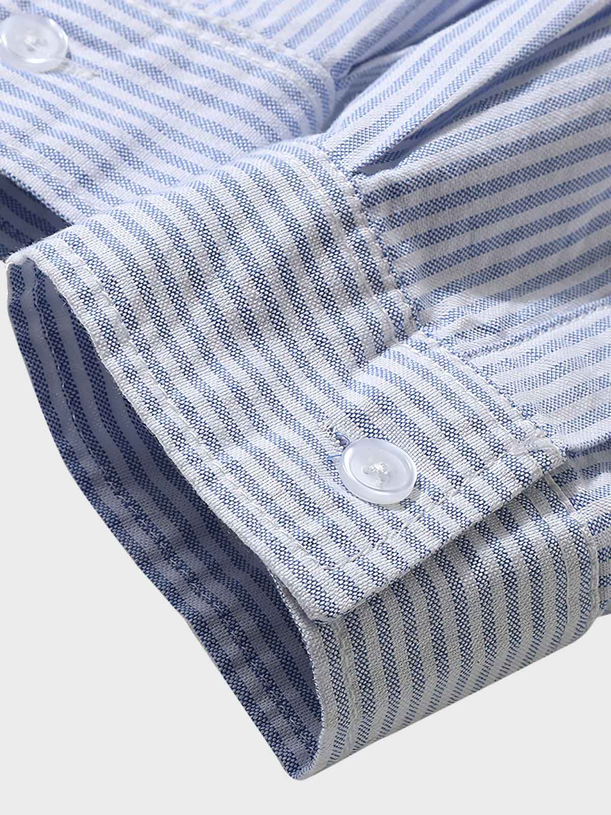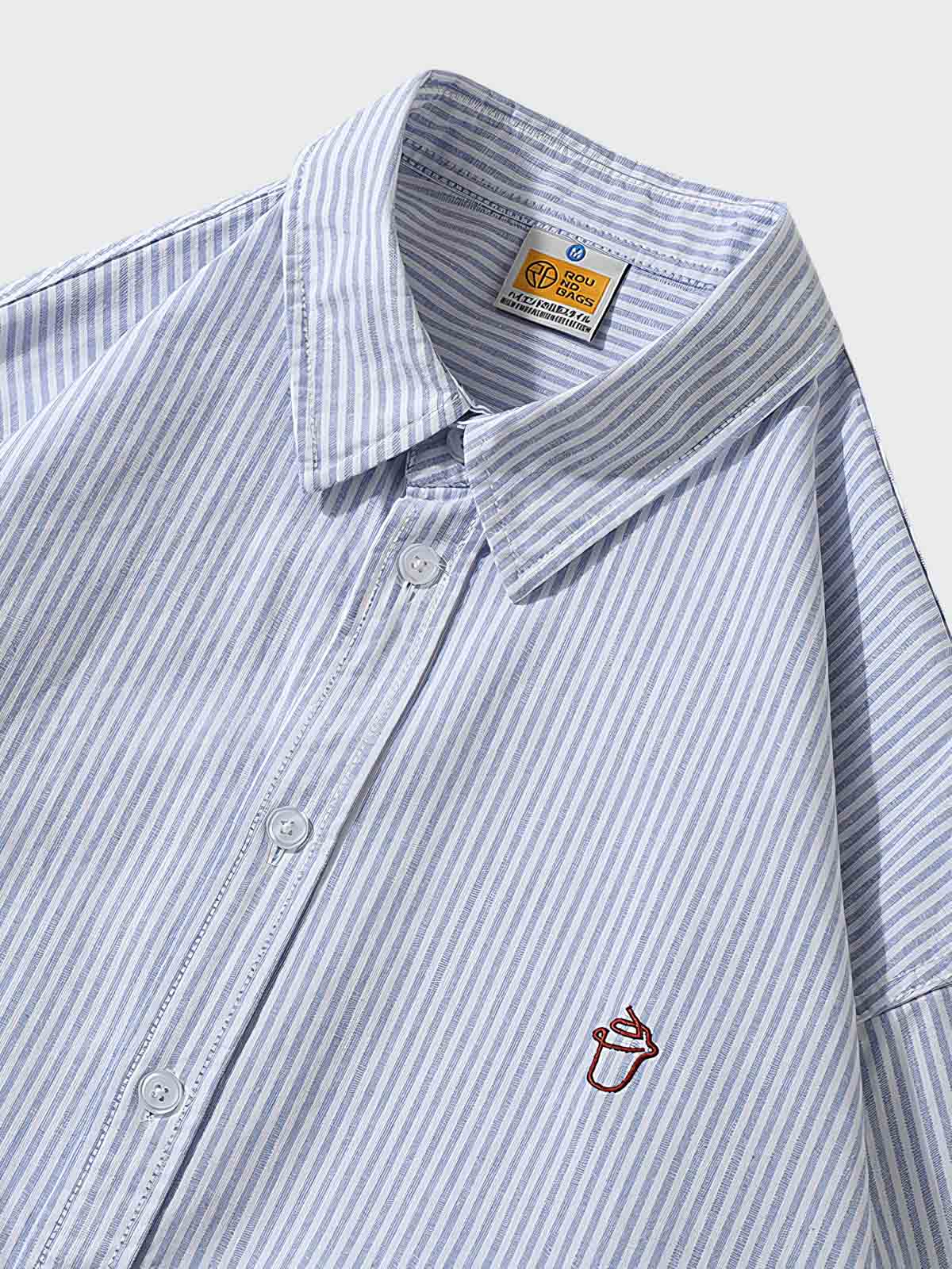 このシャツは100%コットン素材を使用しており、快適で通気性が良く、オールシーズンで着用可能です。クラシックなストライプデザインにシンプルな刺繍が施されており、日常のカジュアルスタイルからオフィス、さまざまな社交の場面に適しています。ゆったりとしたシルエットで、動きやすく快適です。ブルー、ピンクなどの複数のカラーオプションがあり、さまざまなスタイルに対応できます。