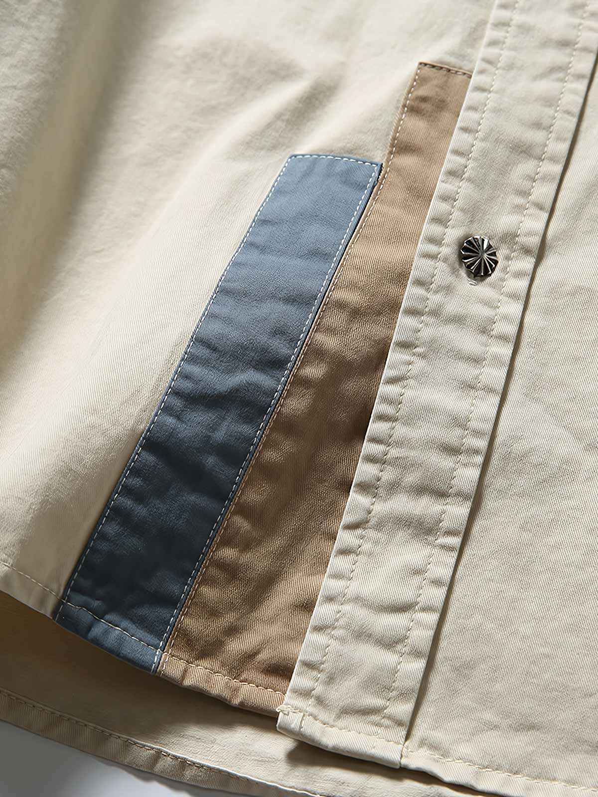 このカジュアルシャツは、クラシックな酵素洗い加工により、柔らかく豊かな風合いを持つ100%コットン生地を使用しています。着心地の良さと肌触りが魅力です。配色ストライプデザインがモダンなアクセントとなり、ヴィンテージスタイルと現代的な要素をバランスよく融合しています。ゆったりとしたルーズフィットシルエットが、多様な体型に対応し、リラックスしたカジュアルな着こなしからアウトドアまで幅広く活躍します。春秋シーズンのコーディネートにぴったりで、個性的なスタイルを求める方におすすめの一着です。