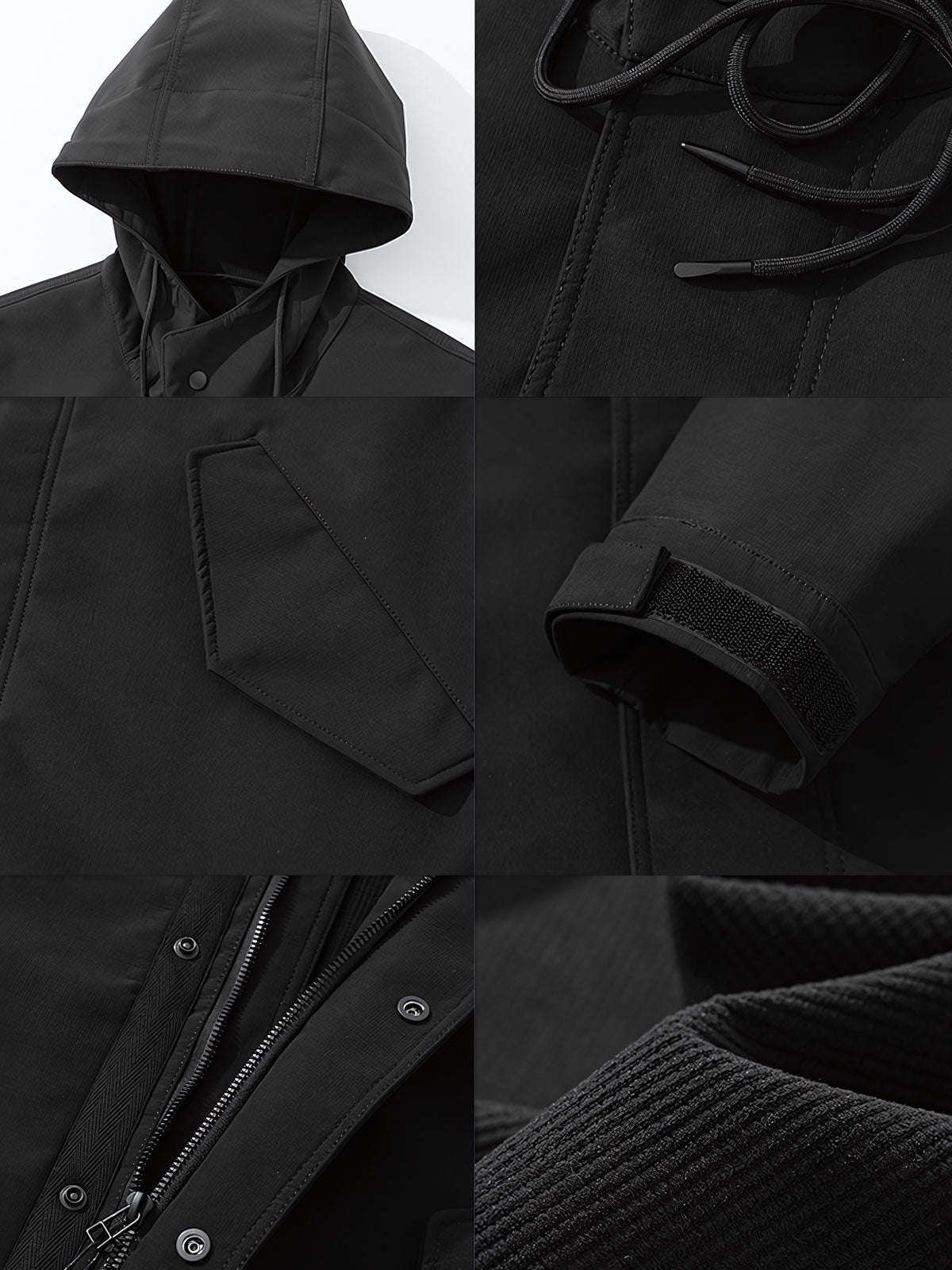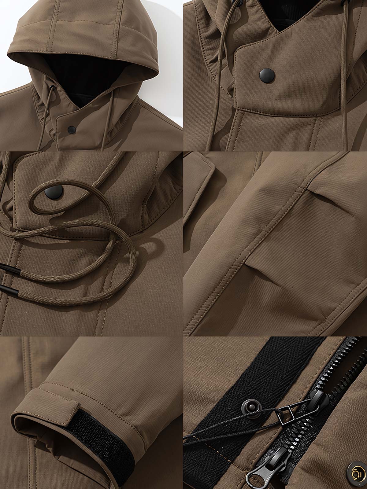 三防機能を持つ素材は、防水、防風、防汚を意味し、様々なアウトドア環境に適しています。大きなポケットのデザインは、必需品を持ち運ぶための収納スペースを増やしています。