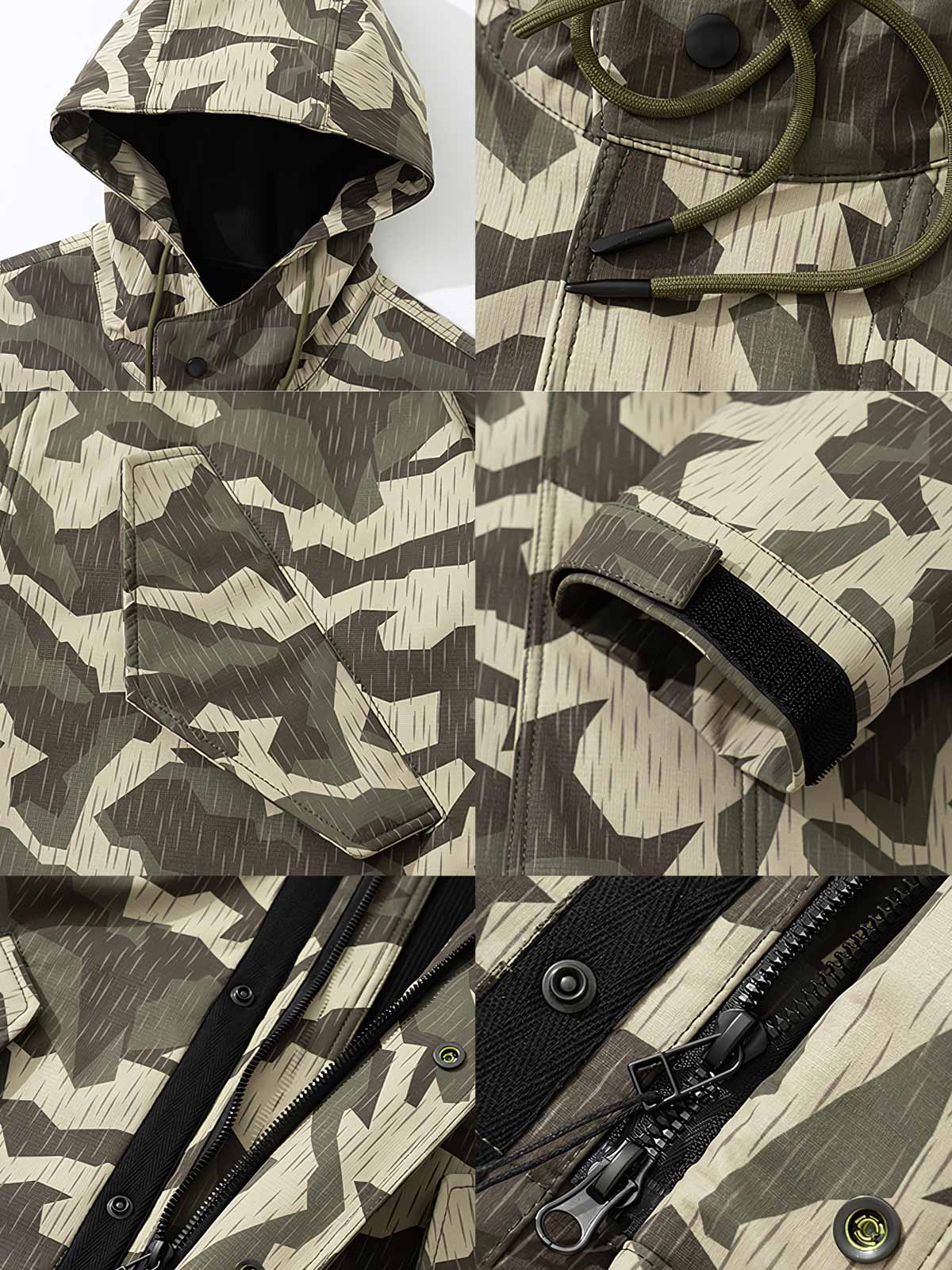 これらの3つのジャケットは、アウトドアウェアのクラシックな色合いを代表しています:控えめなブラック、多機能なミリタリーグリーン、そして長い軍事歴史を持つカモフラージュパターン。これらの色は、アウトドアファッションのトレンドを反映しています。