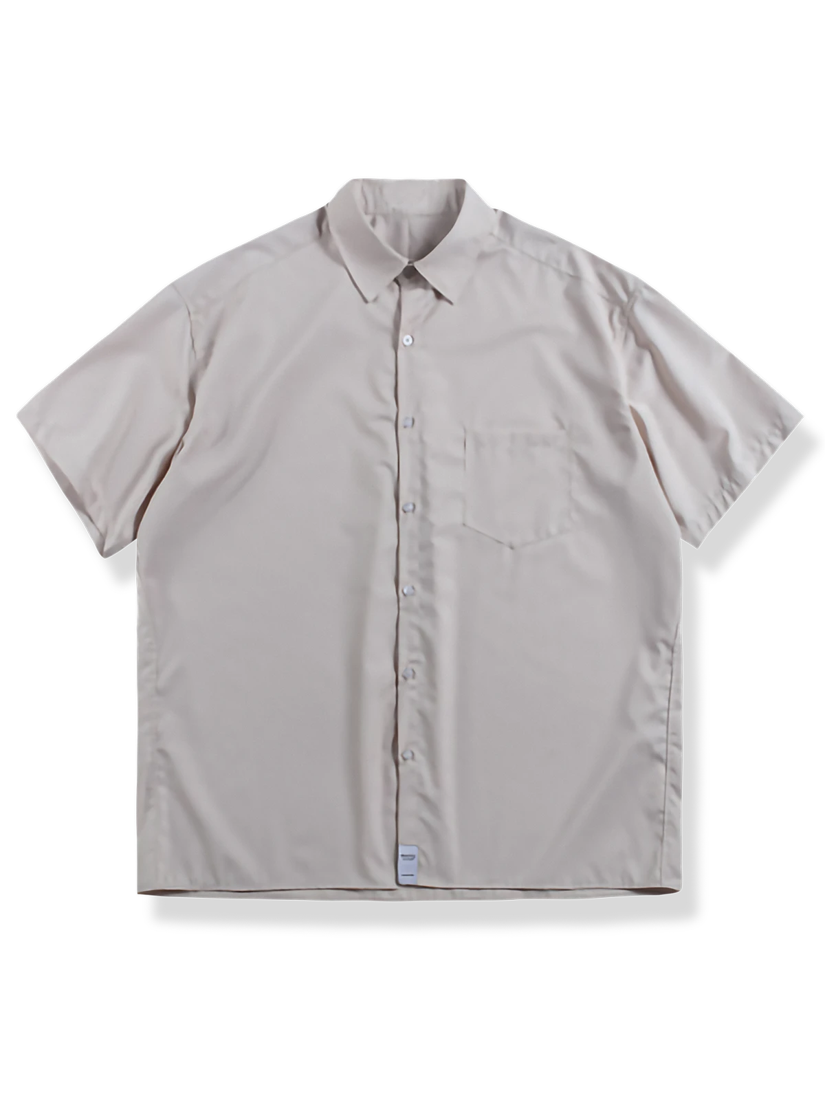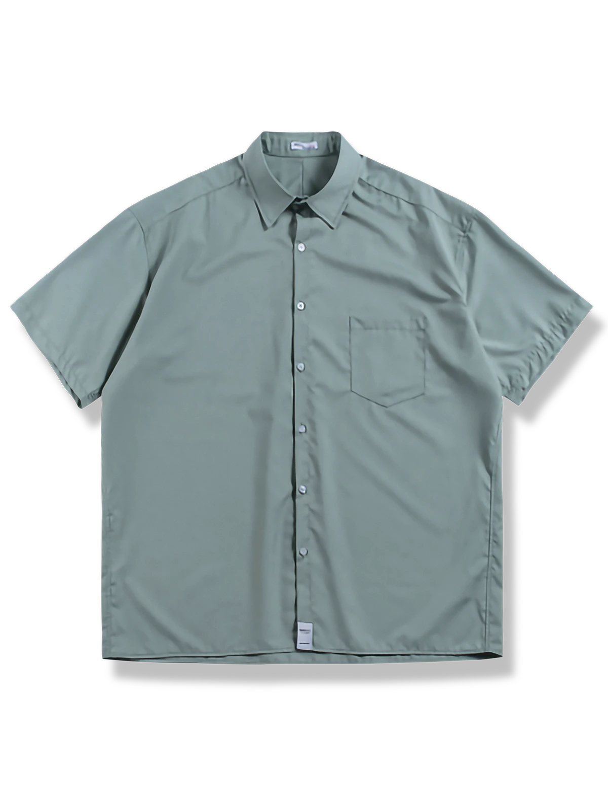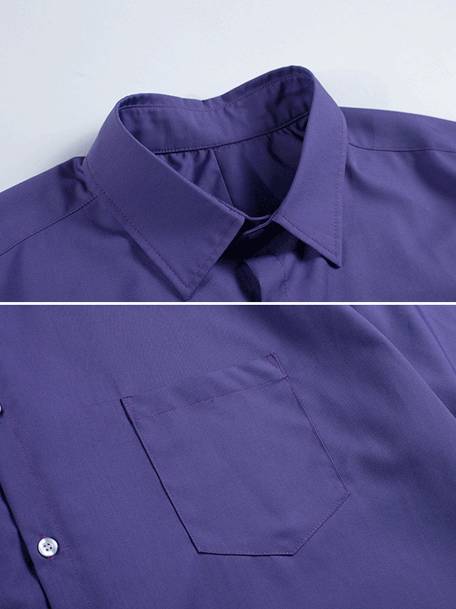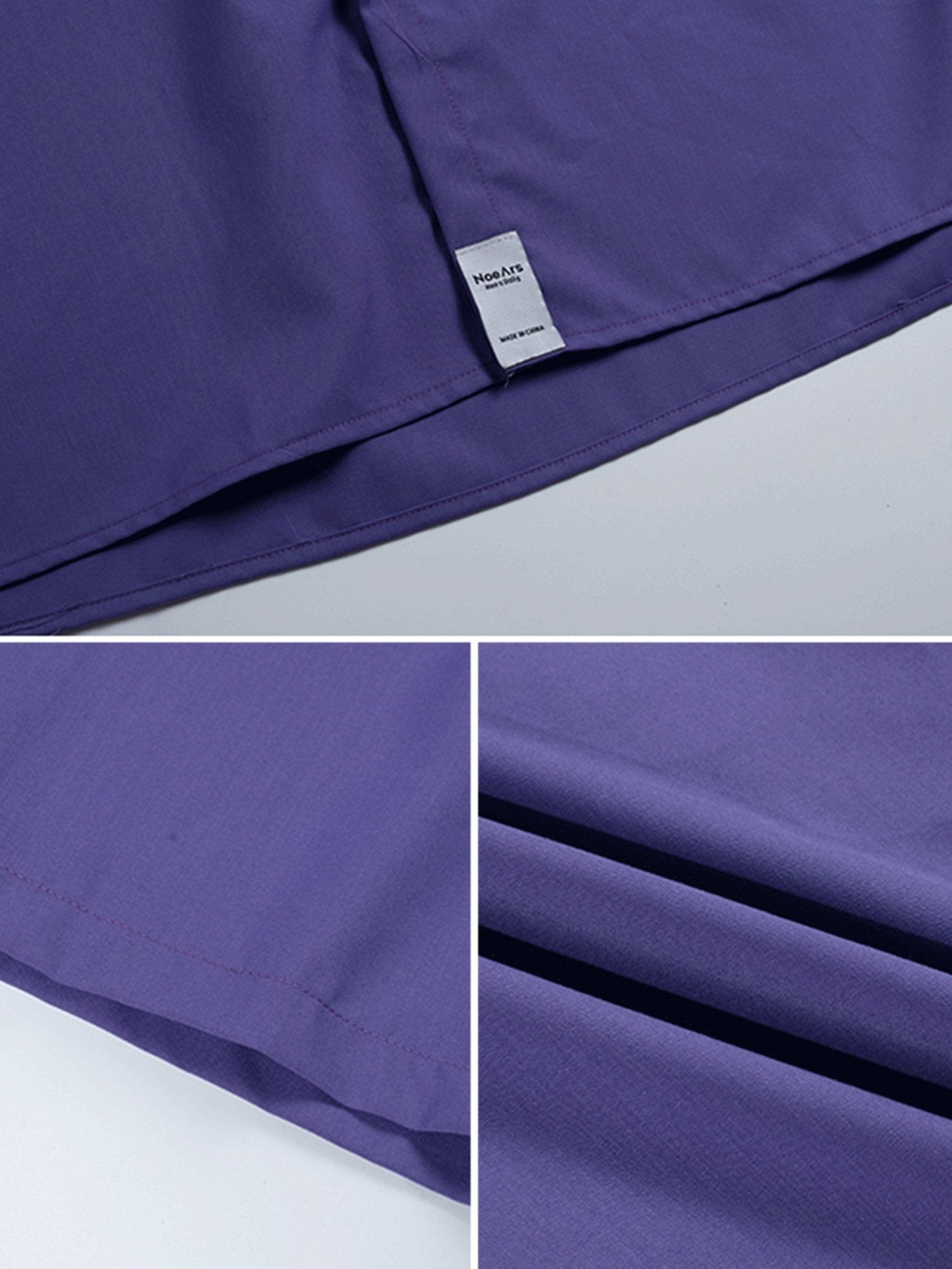 このシャツのディテールデザインは独特です。シャツのポケットの形状が特徴的で、シンプルなTシャツとの重ね着を楽しめ、着こなしに立体感を加えます。全体的にシンプルな無地のデザインはシャツを洗練された雰囲気にし、流行を逃しません。