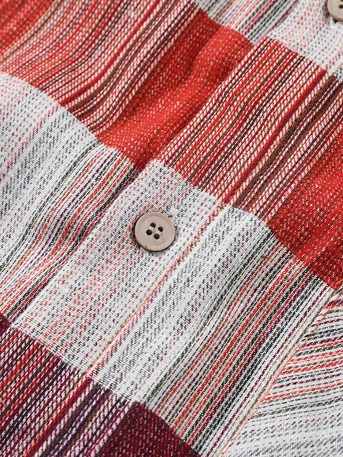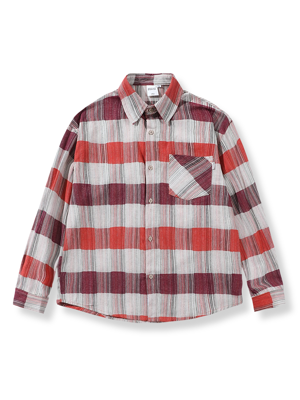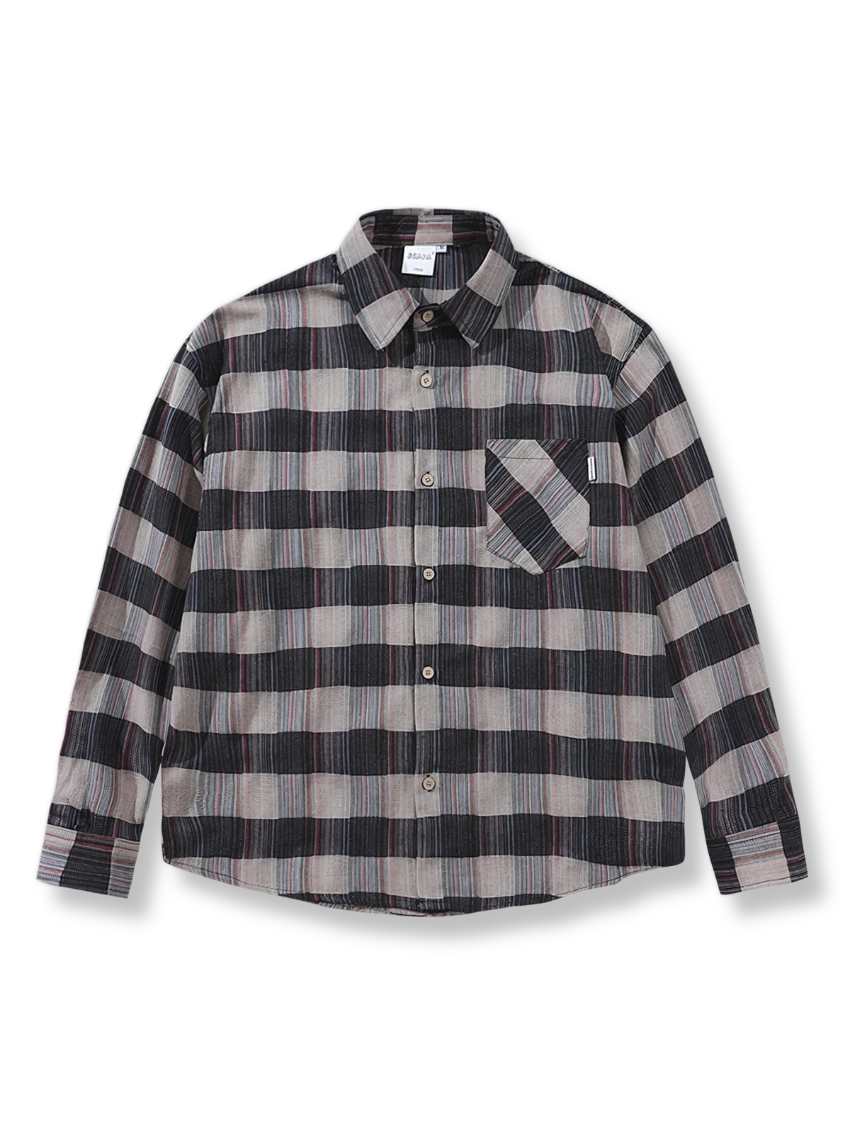 高品質の純綿素材を使用し、柔らかい触り心地と優れた耐久性を実現しています。チェックパターンの細かい仕上げは、繊細な技術を示しており、伝統的なポケットとボタンのデザインは、クラシックなディテールへの敬意を表しています。