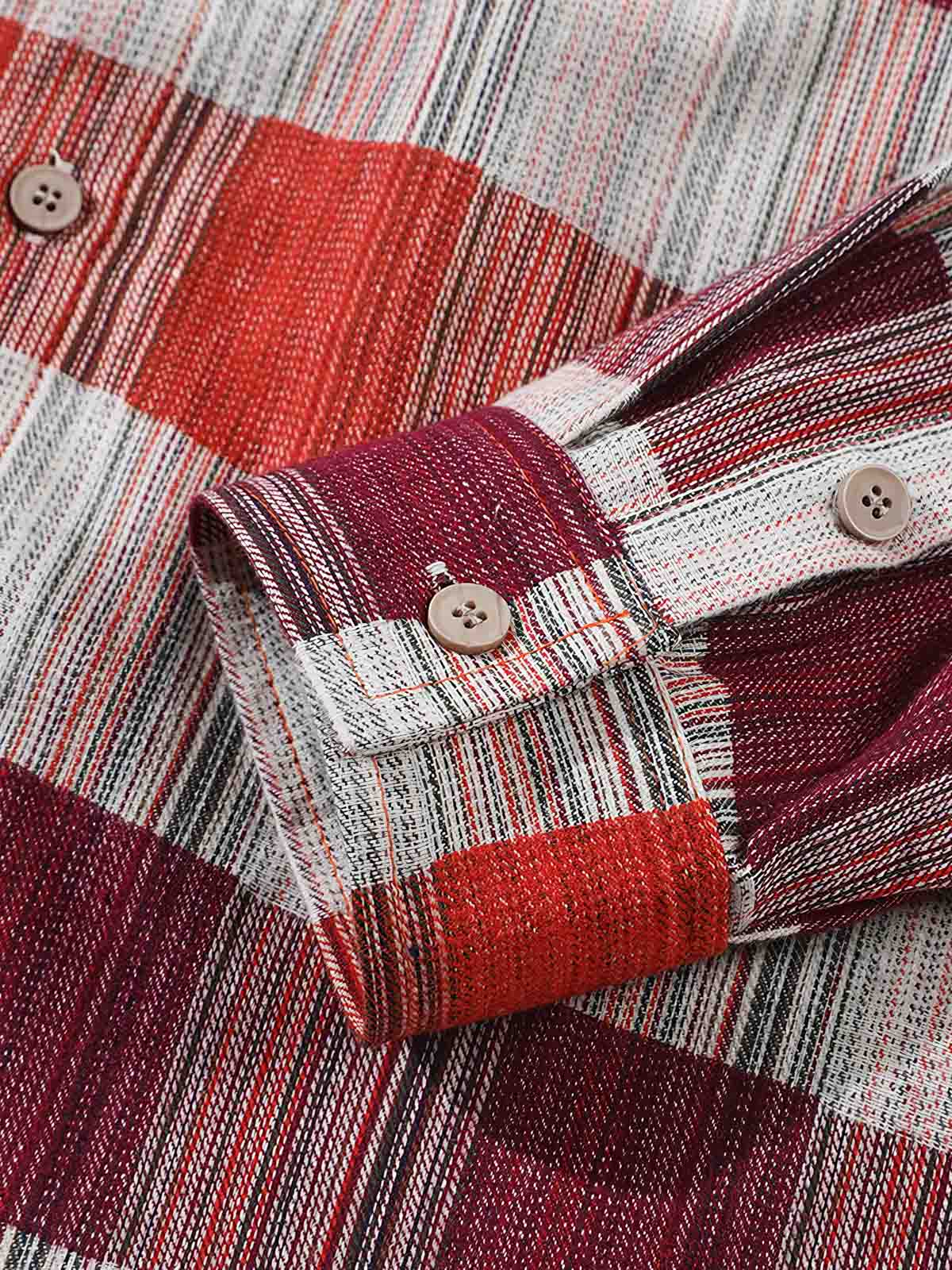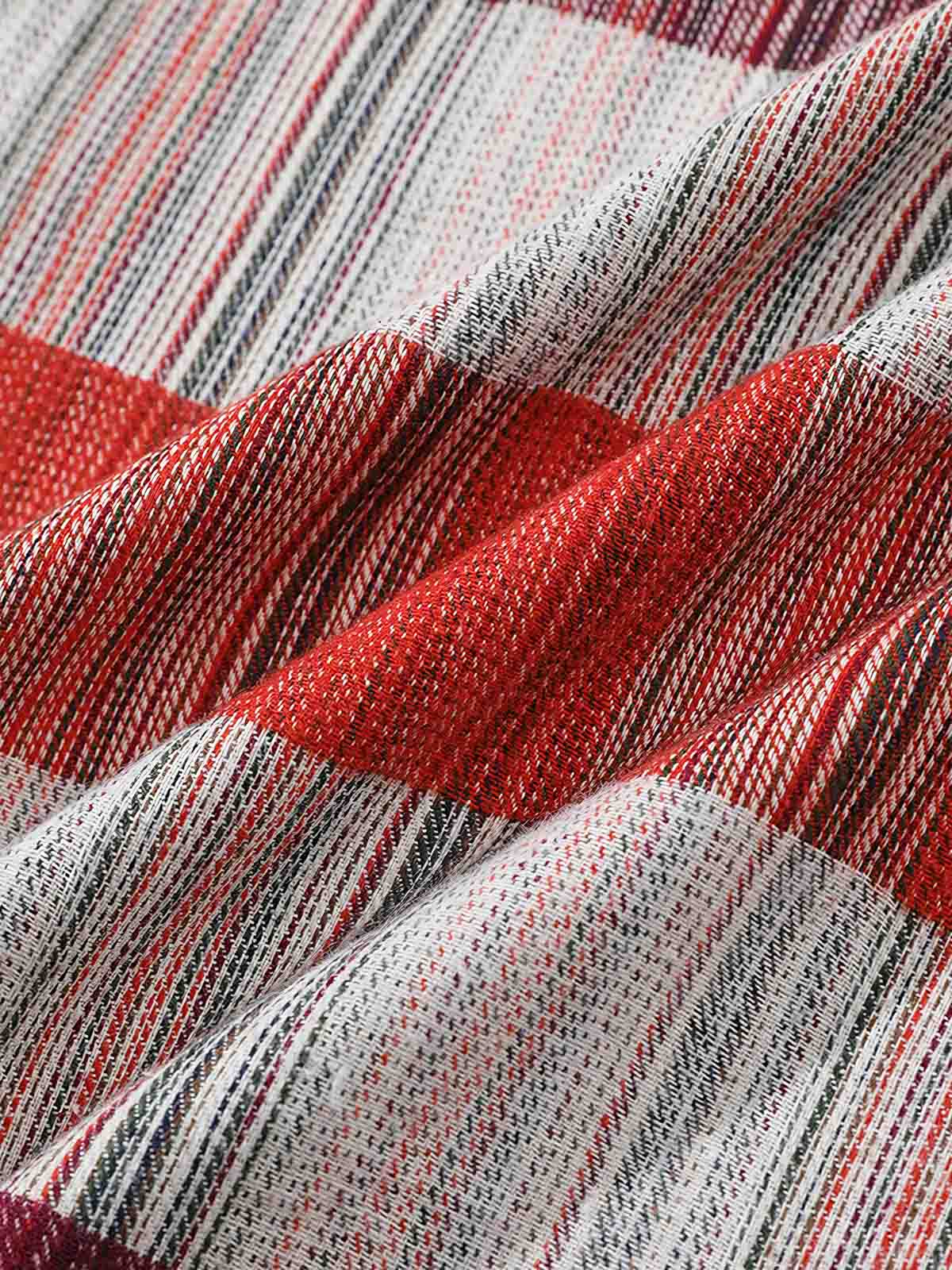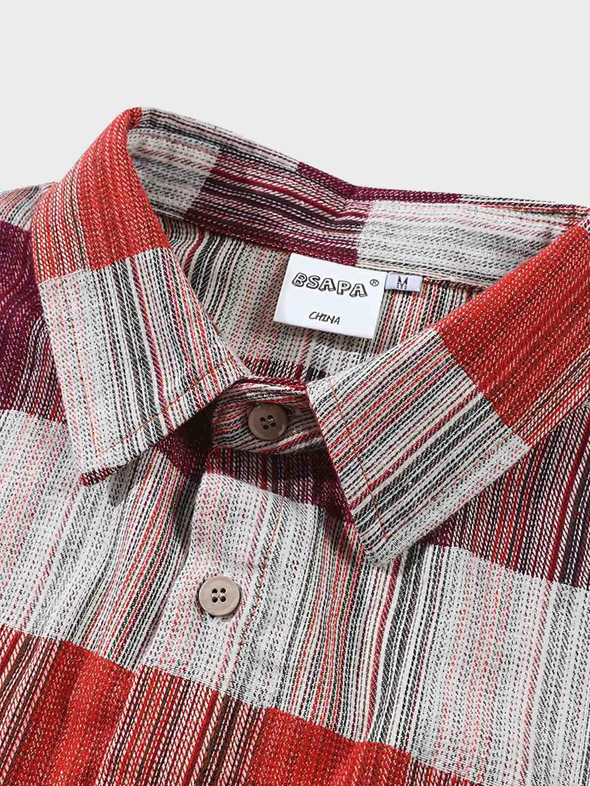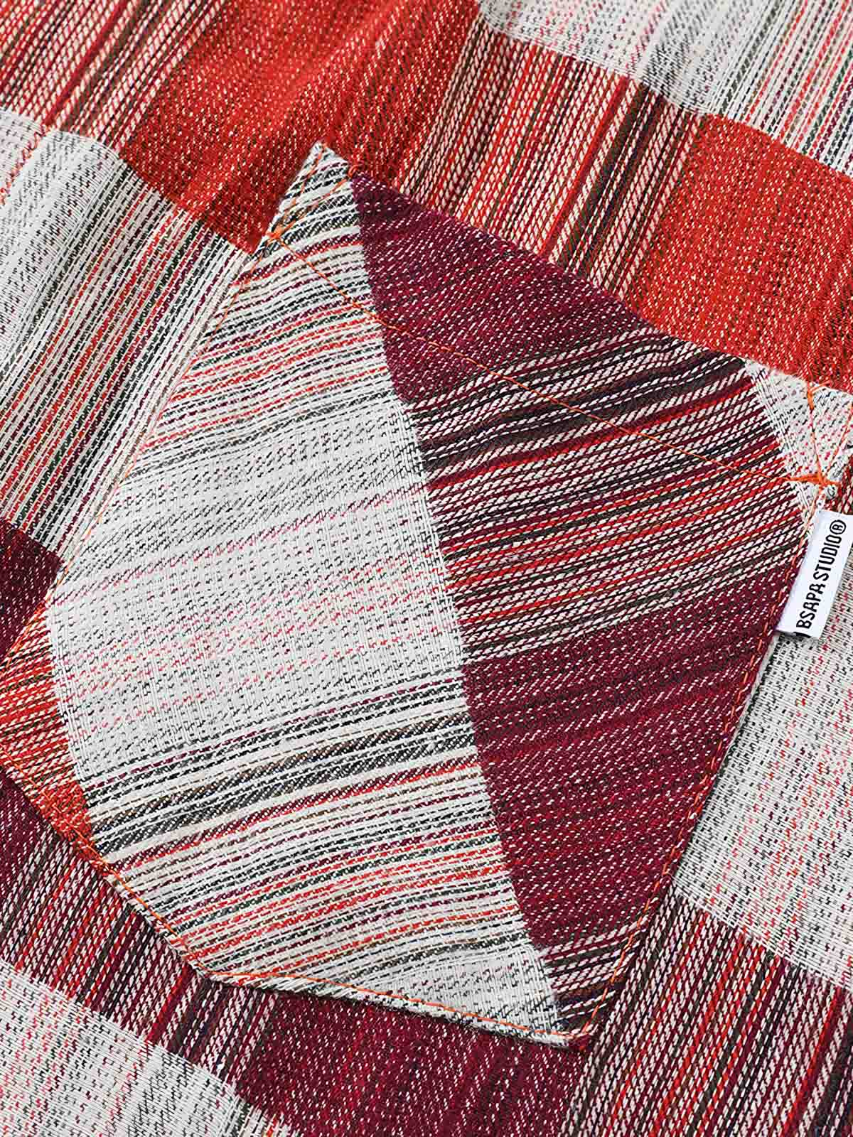 高品質の純綿素材を使用し、柔らかい触り心地と優れた耐久性を実現しています。チェックパターンの細かい仕上げは、繊細な技術を示しており、伝統的なポケットとボタンのデザインは、クラシックなディテールへの敬意を表しています。