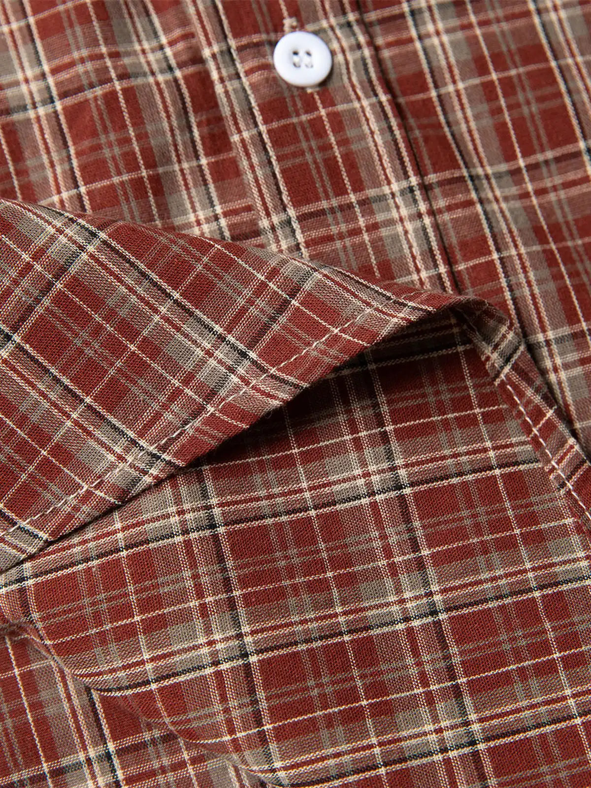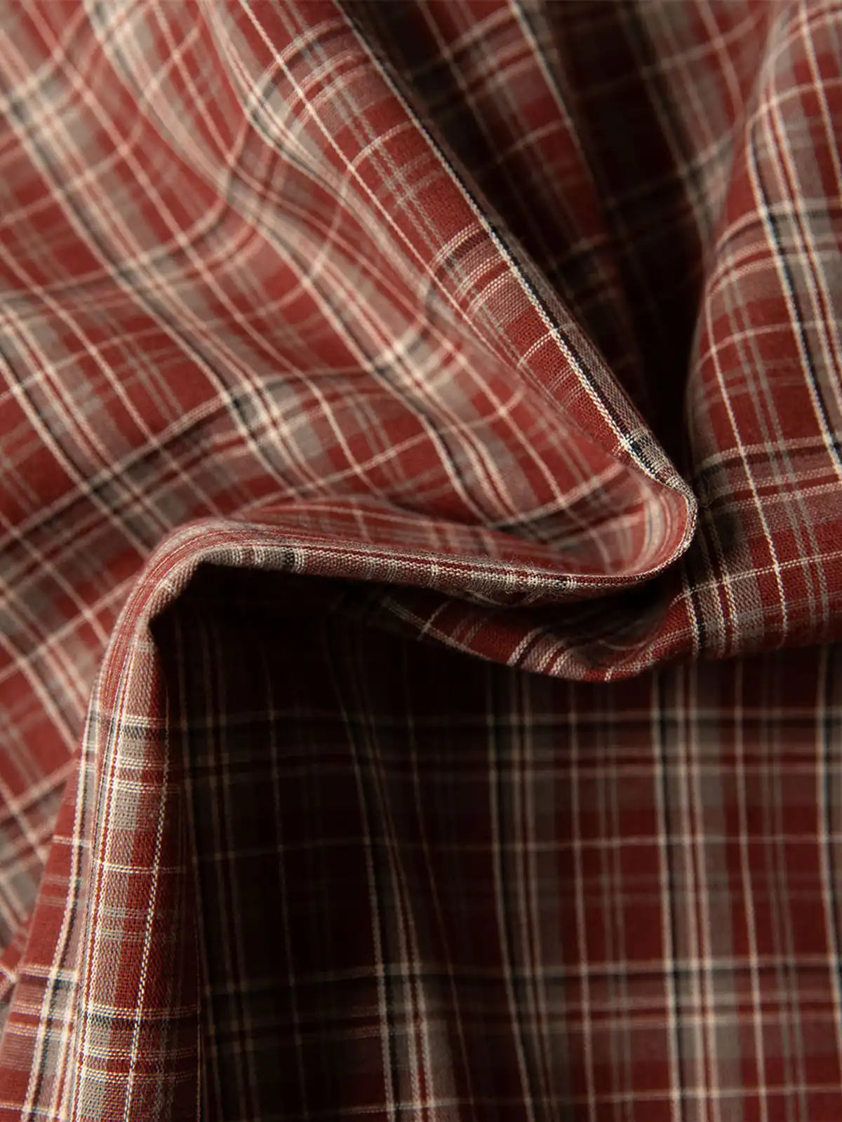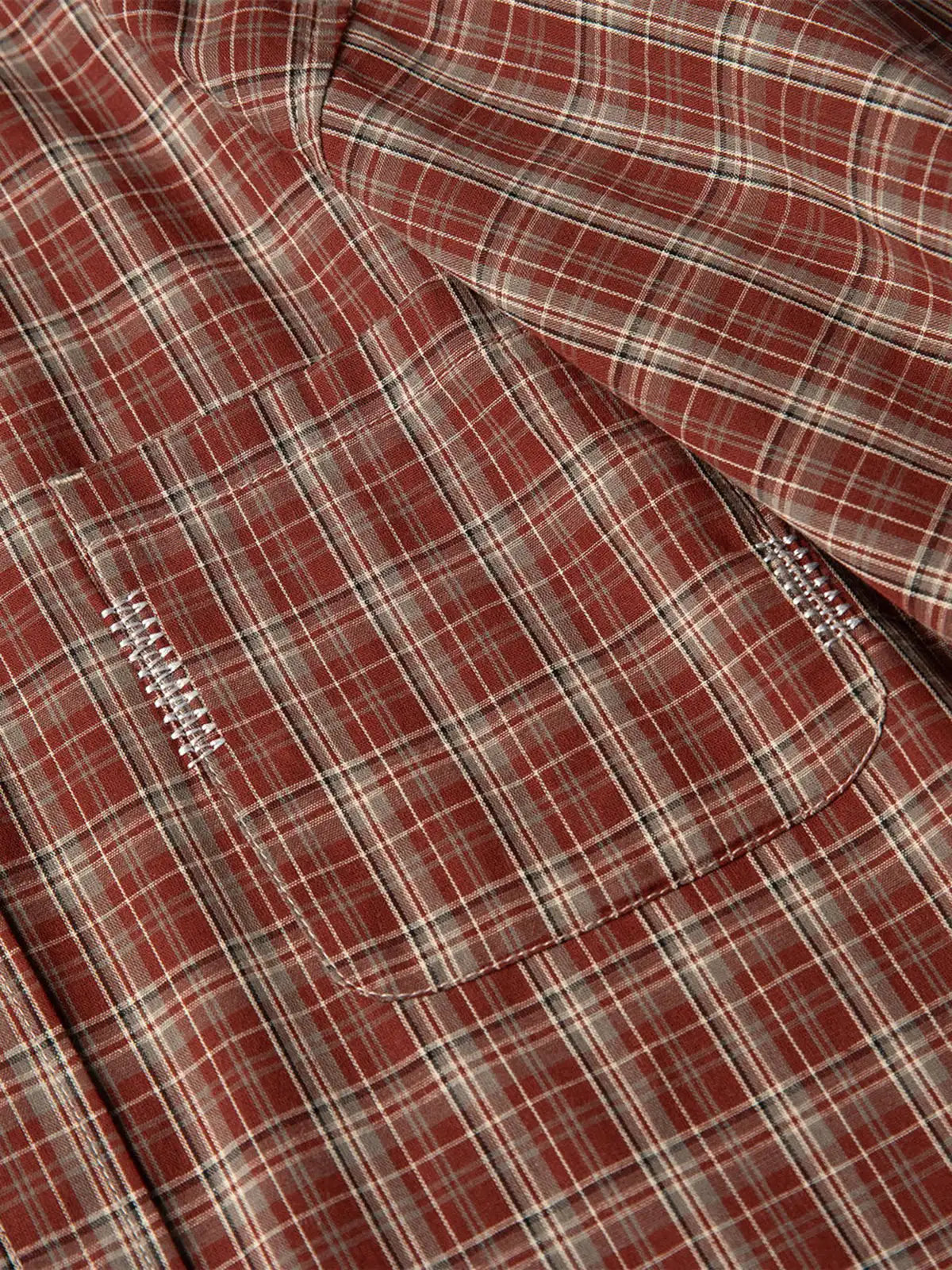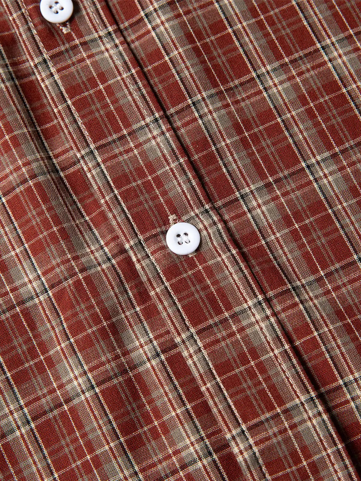 コットン100%のブリーチドウォッシュ生地は、洗い込むほどにほどよい柔らかさと美しいアタリが出て、まるで長年着込んだかのような風合いを楽しめます。フロントには伝統的なマドラスチェックをベースとし、あえて刺繍で補修風パッチを加えることでノスタルジックかつ個性的な表情を演出。ゆったりめのボックスシルエットは肩まわりが楽で、裾のラウンドカットはどんなボトムにも自然と馴染みます。ドットボタンや胸ポケットの刺繍補強など細部にもこだわり、レギュラーカラーの襟元がリラックスした着こなしを後押しします。