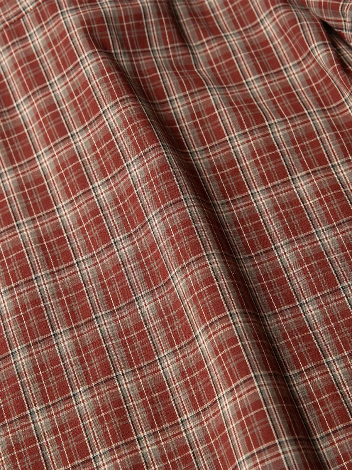 程よいゆるシルエットに施した刺繍パッチがアクセントの、味わい深いヴィンテージ風チェックシャツ。