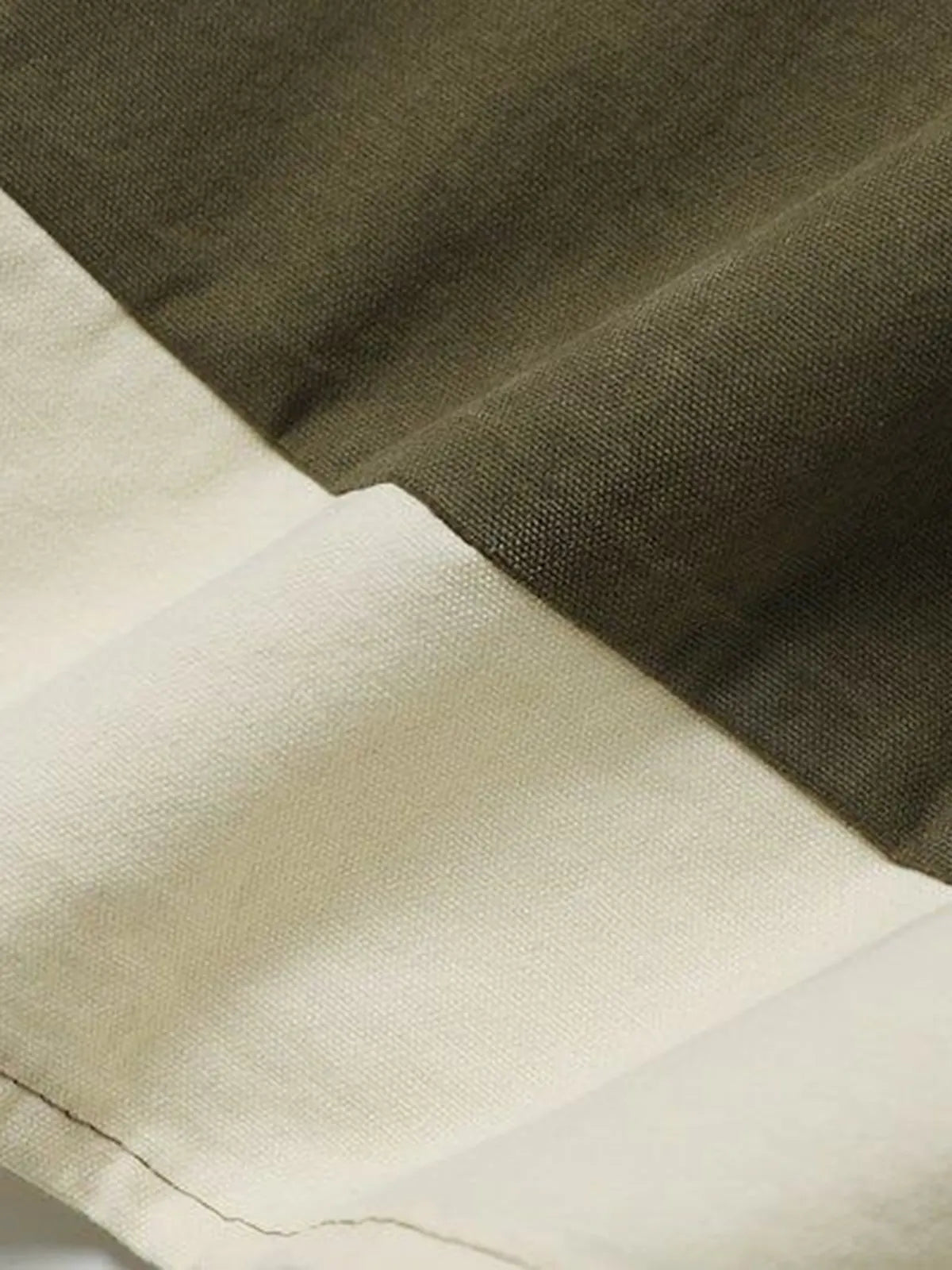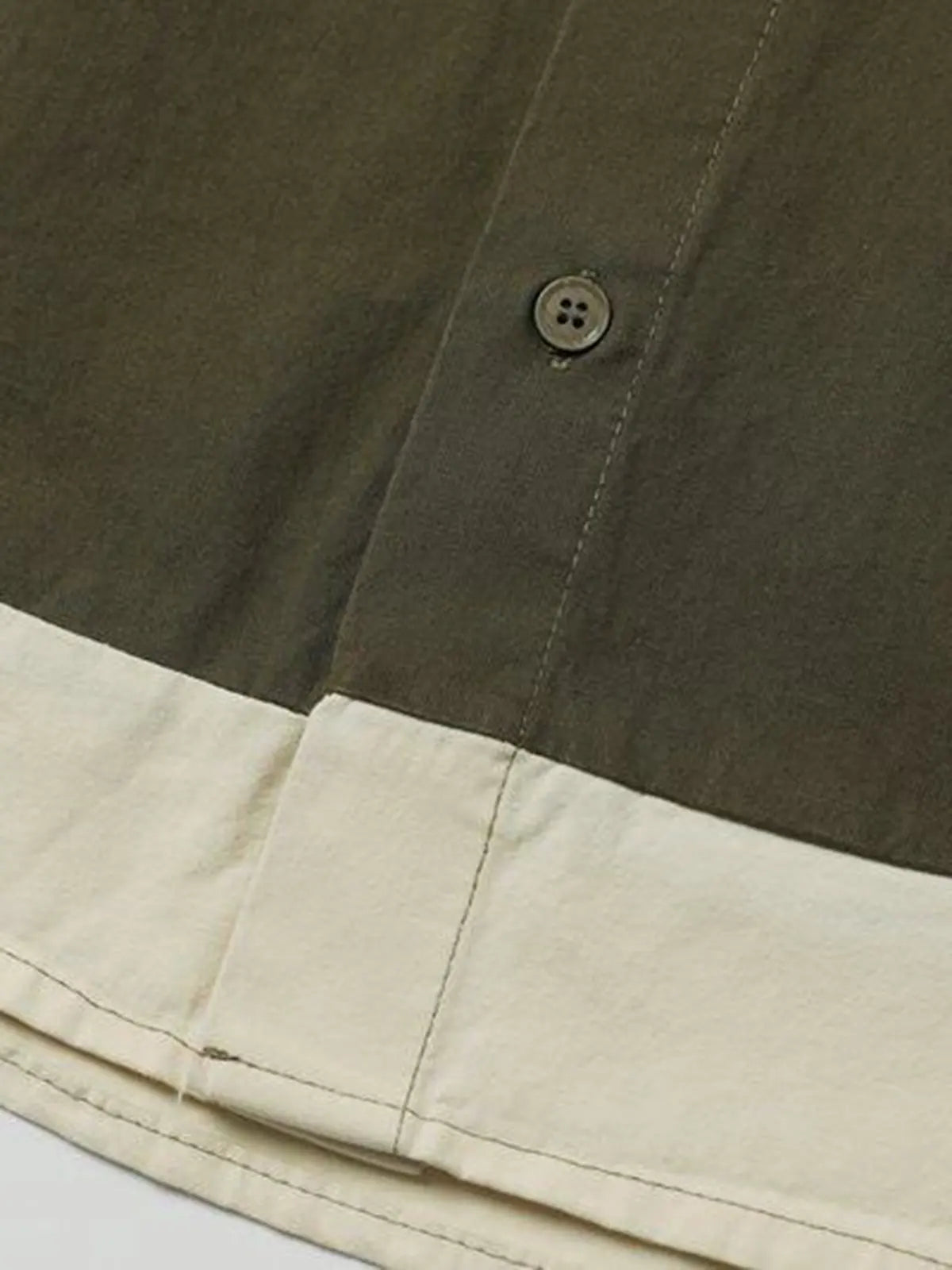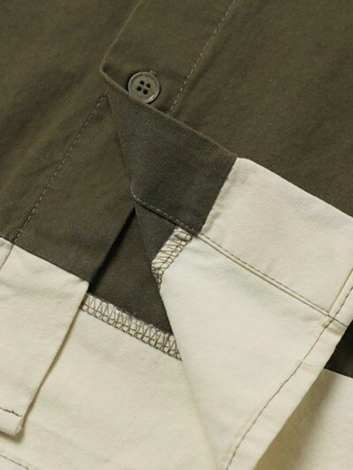 ミリタリーテイストとストリートの要素を融合した、色鮮やかな配色切り替えシャツ。