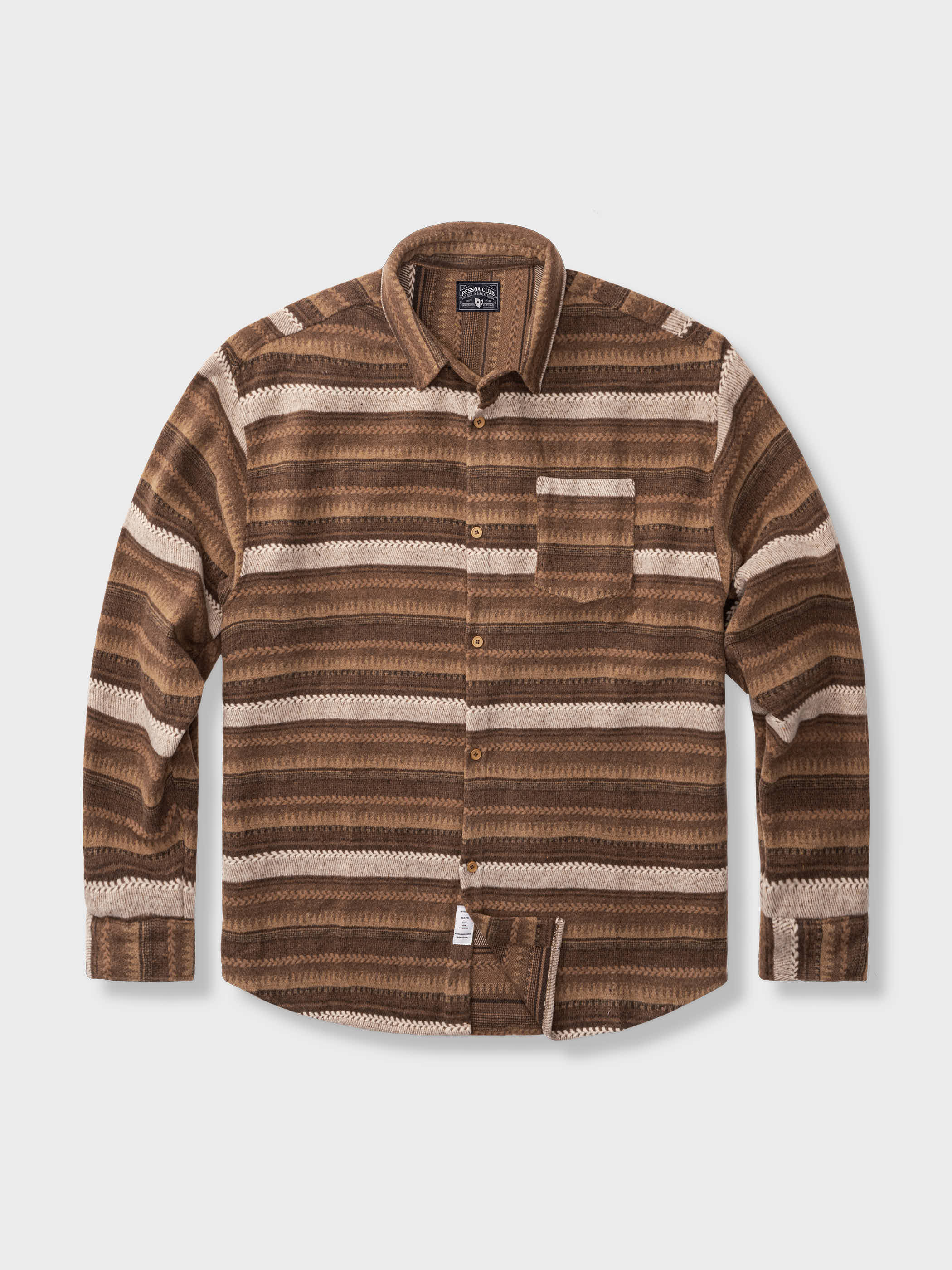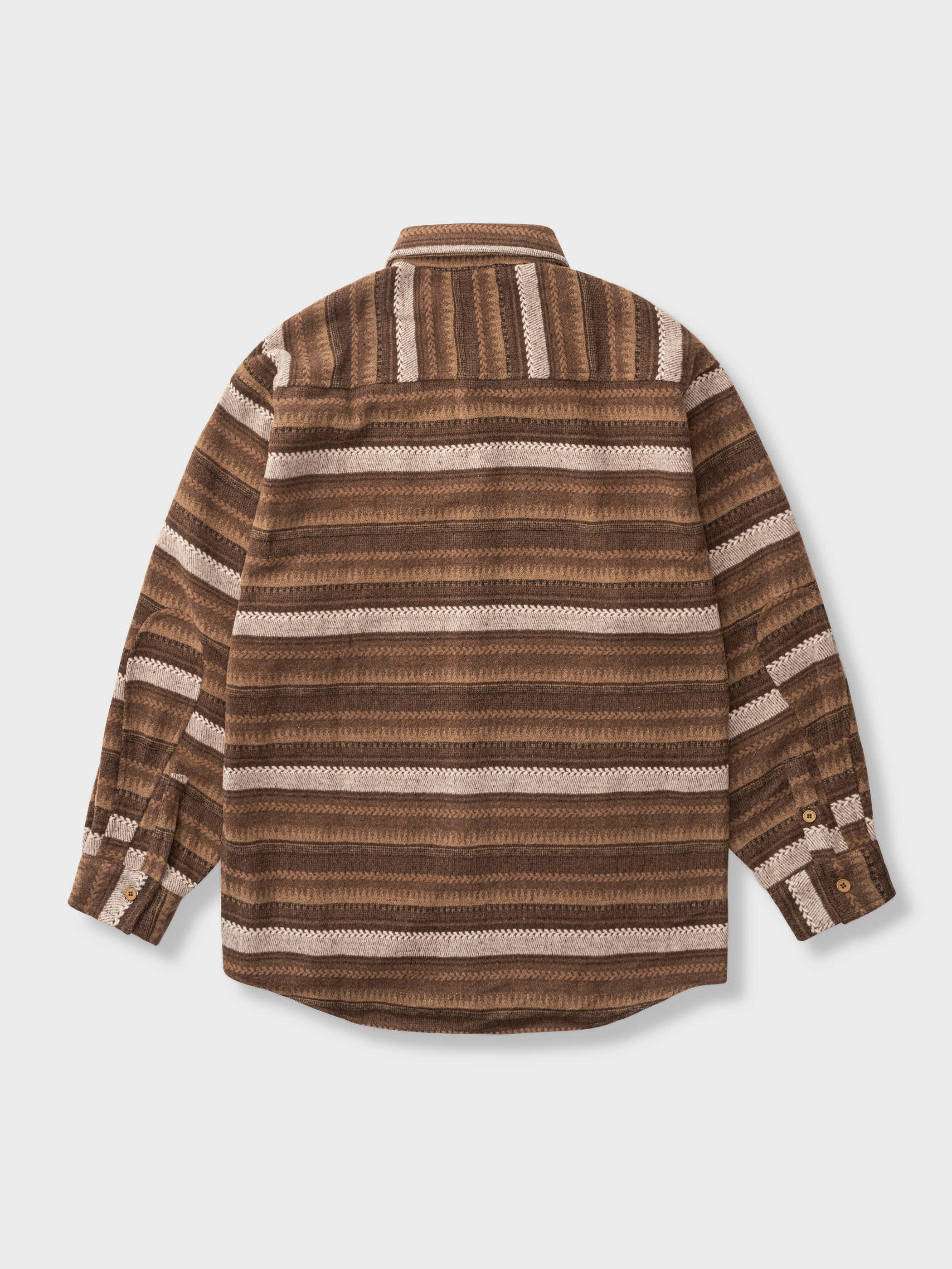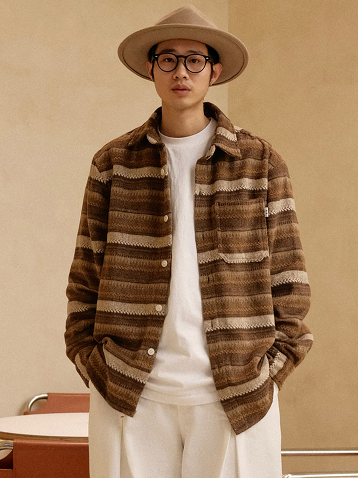 高品質なポリエステルが使用されており、形状記憶性が高く、耐摩耗性に優れている。ボーダー柄と相まってシャツ特有の柔らかい表情に、質感とおしゃれ感を加える。