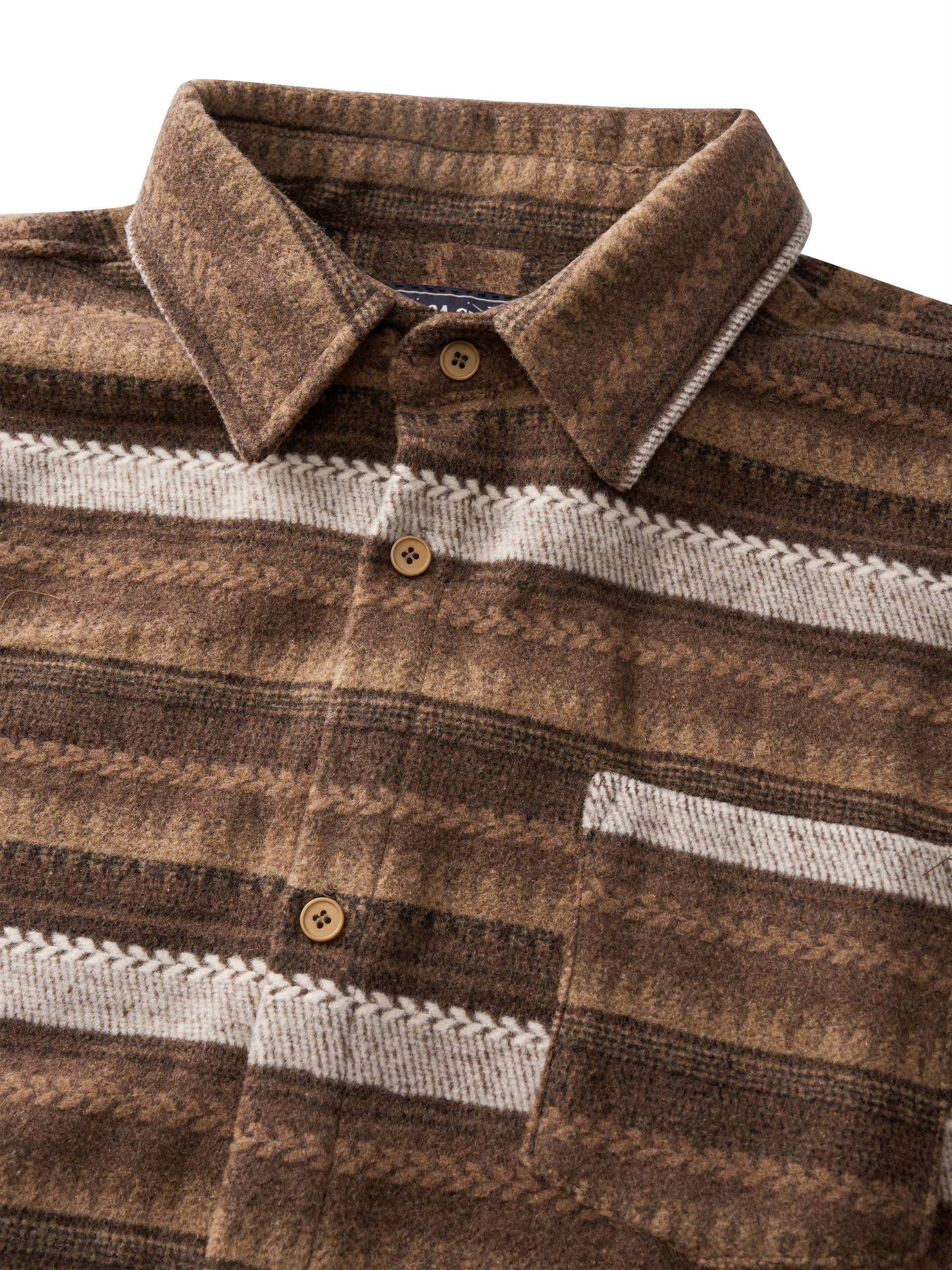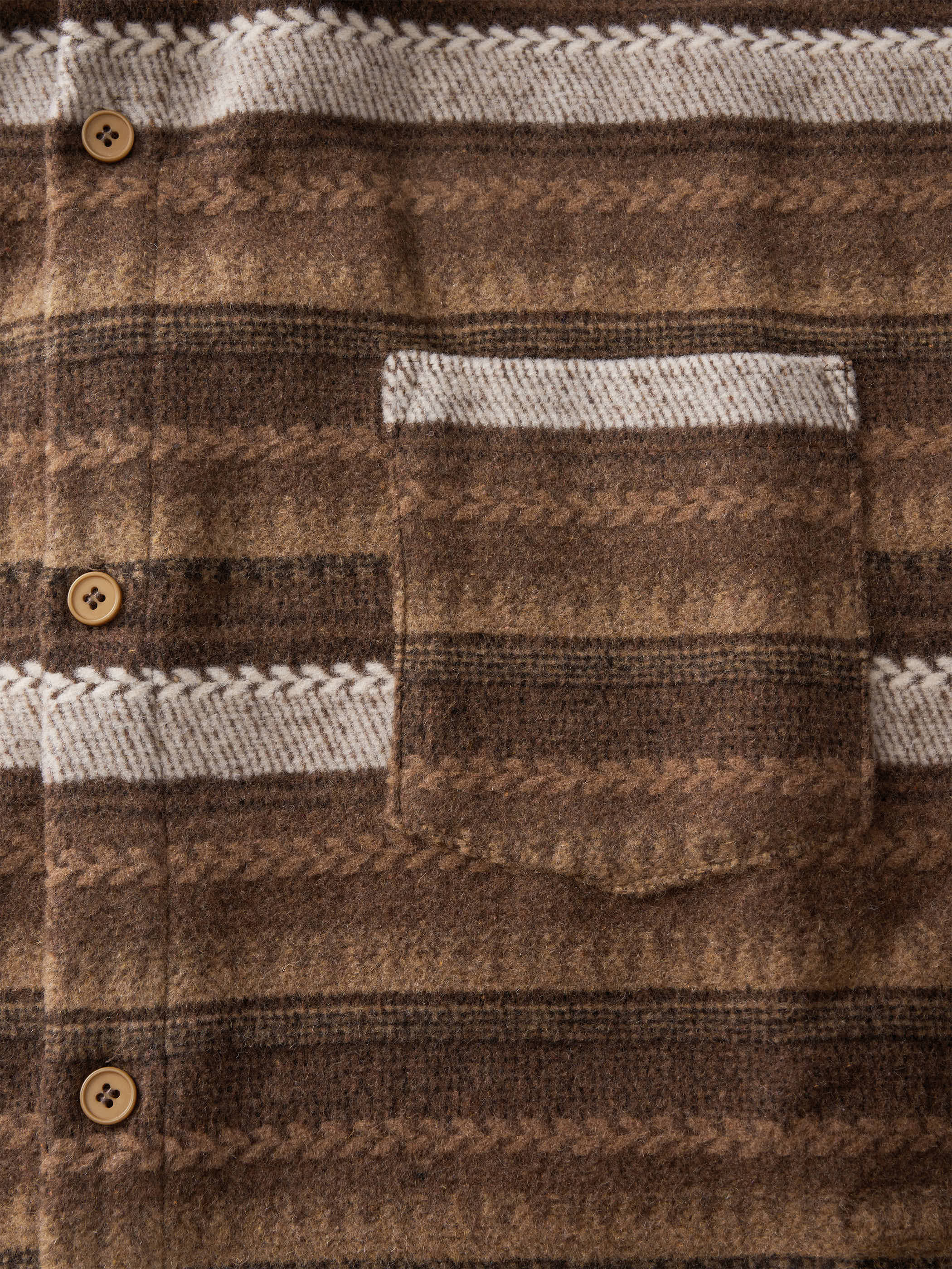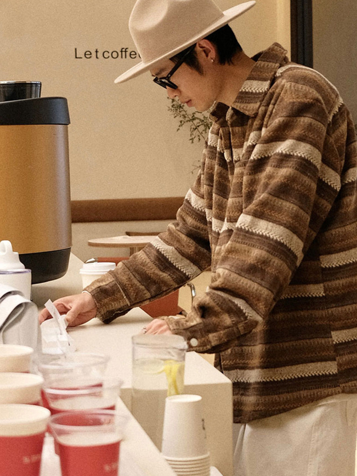高品質なポリエステルが使用されており、形状記憶性が高く、耐摩耗性に優れている。ボーダー柄と相まってシャツ特有の柔らかい表情に、質感とおしゃれ感を加える。