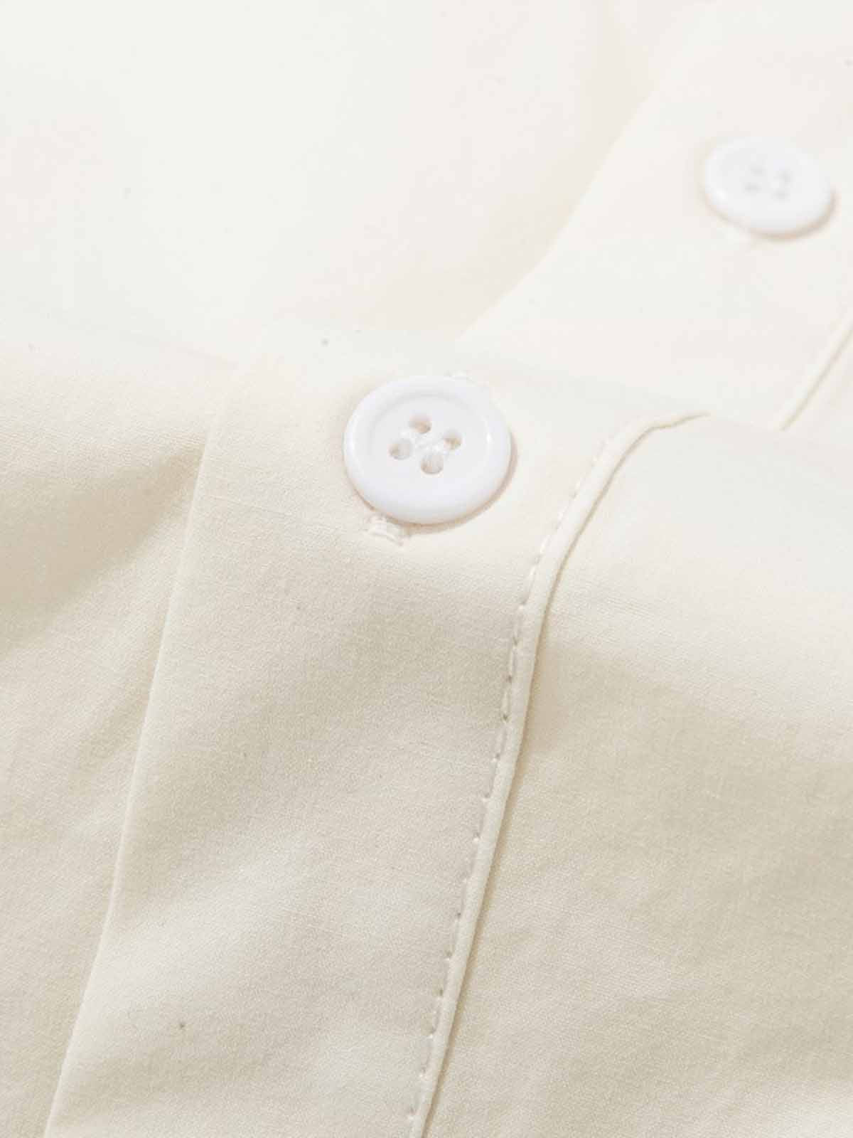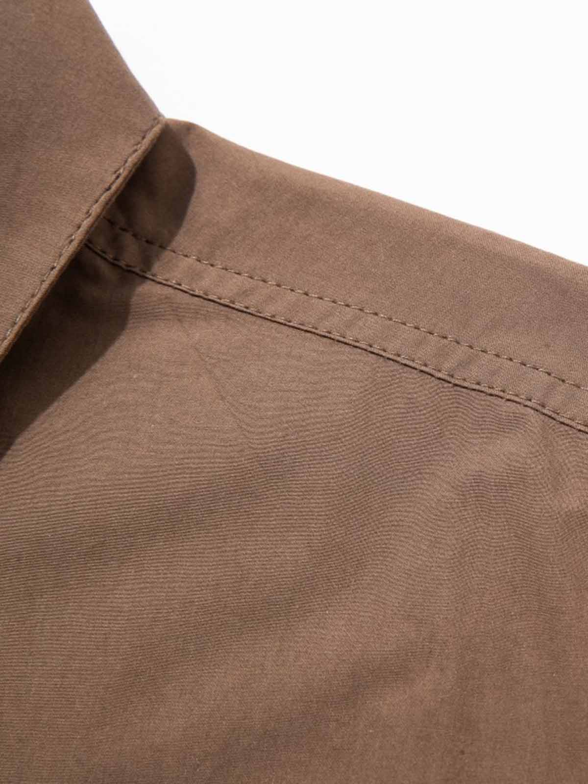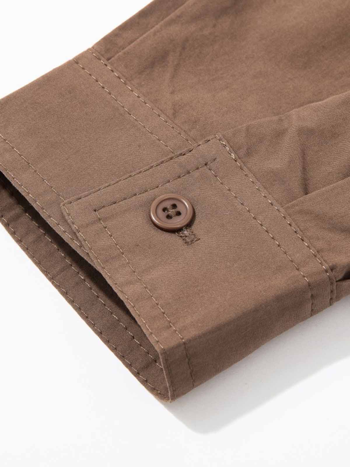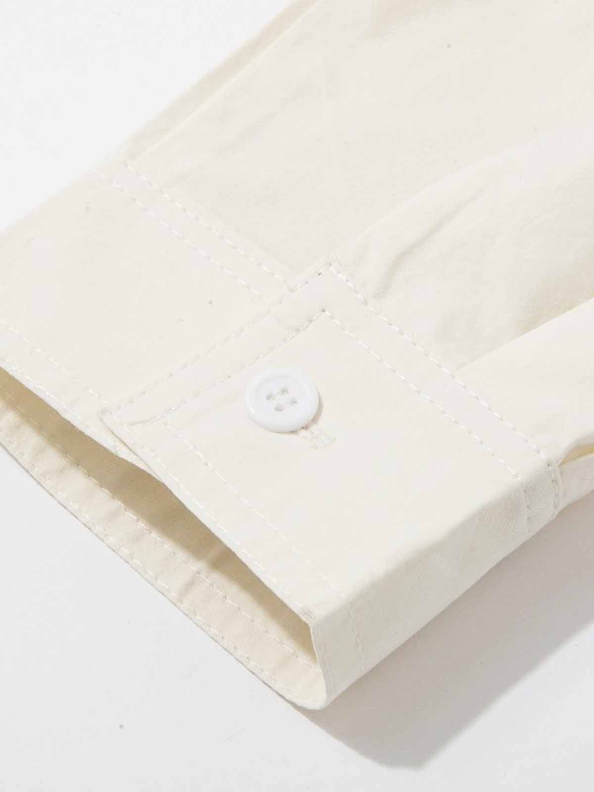 本シャツは、従来の対称デザインを打破する非対称カッティングが特徴で、独自のレイヤリング効果とモダンな印象を与えます。シンプルな翻領とルーズフィットのシルエットが、日常の着回しをしやすくしながらも個性的なスタイルを演出。100%コットンの生地は柔らかく通気性に優れており、季節を問わず快適に着用できます。さらに、アーチ状の裾カットが、Tシャツやベストとのレイヤードスタイルにも最適で、通勤からカジュアルシーンまで幅広いスタイルにマッチする一着です。