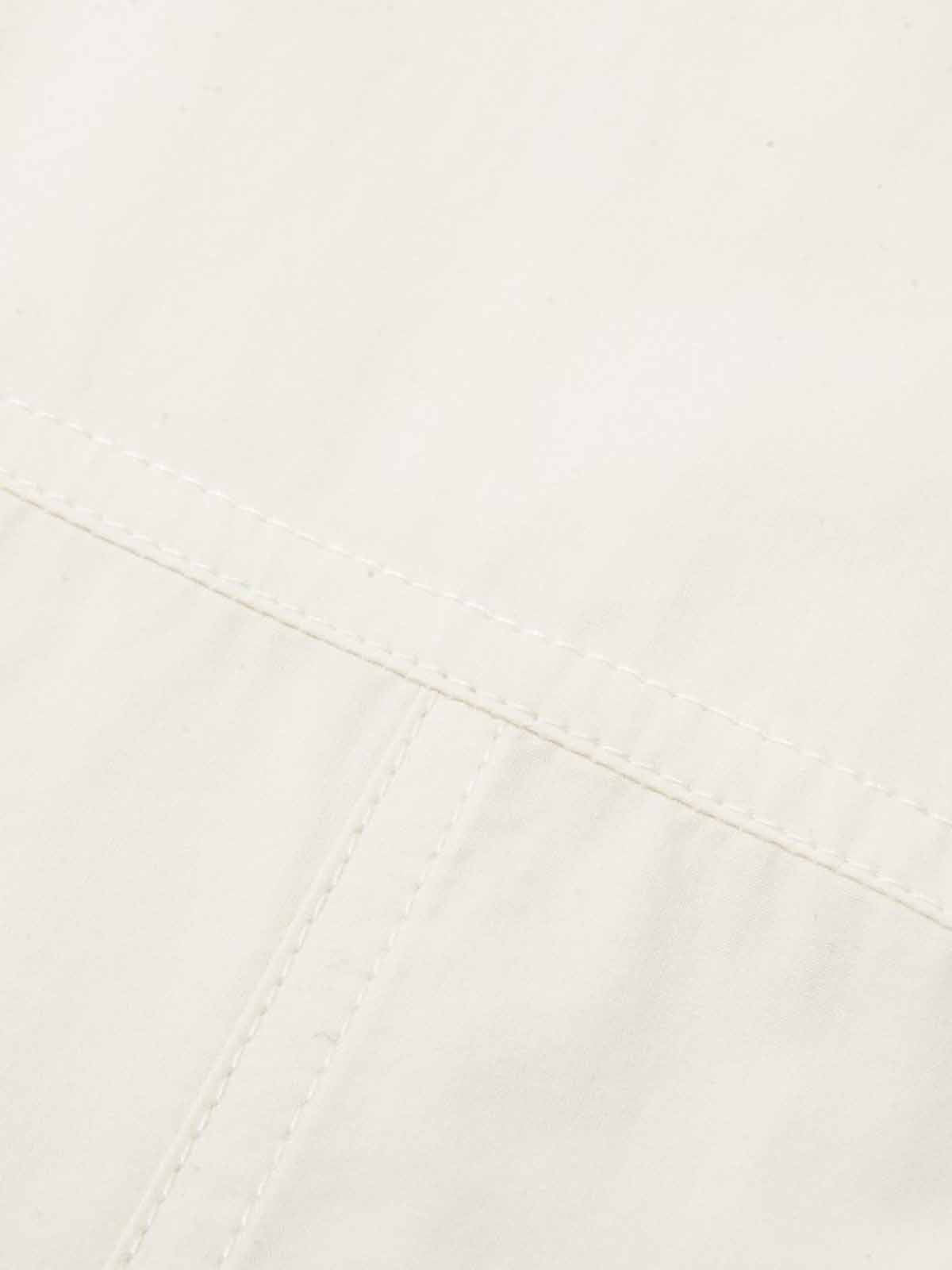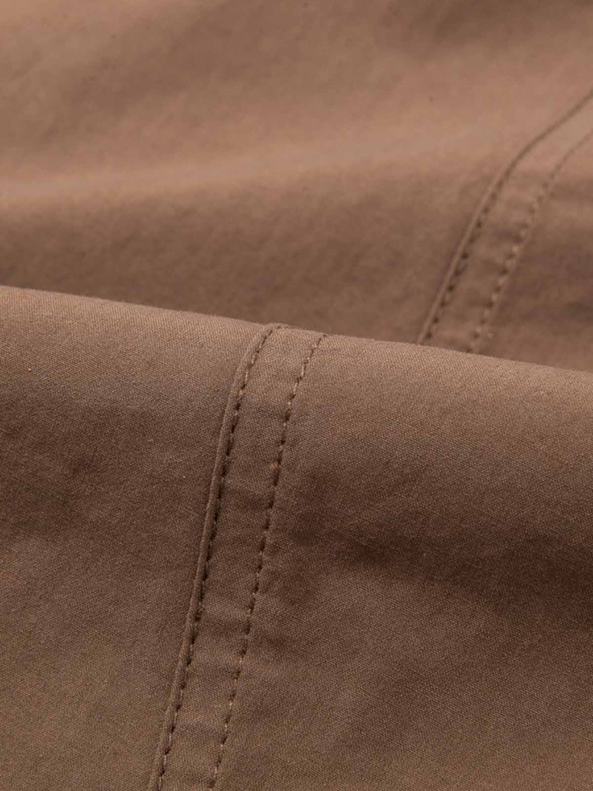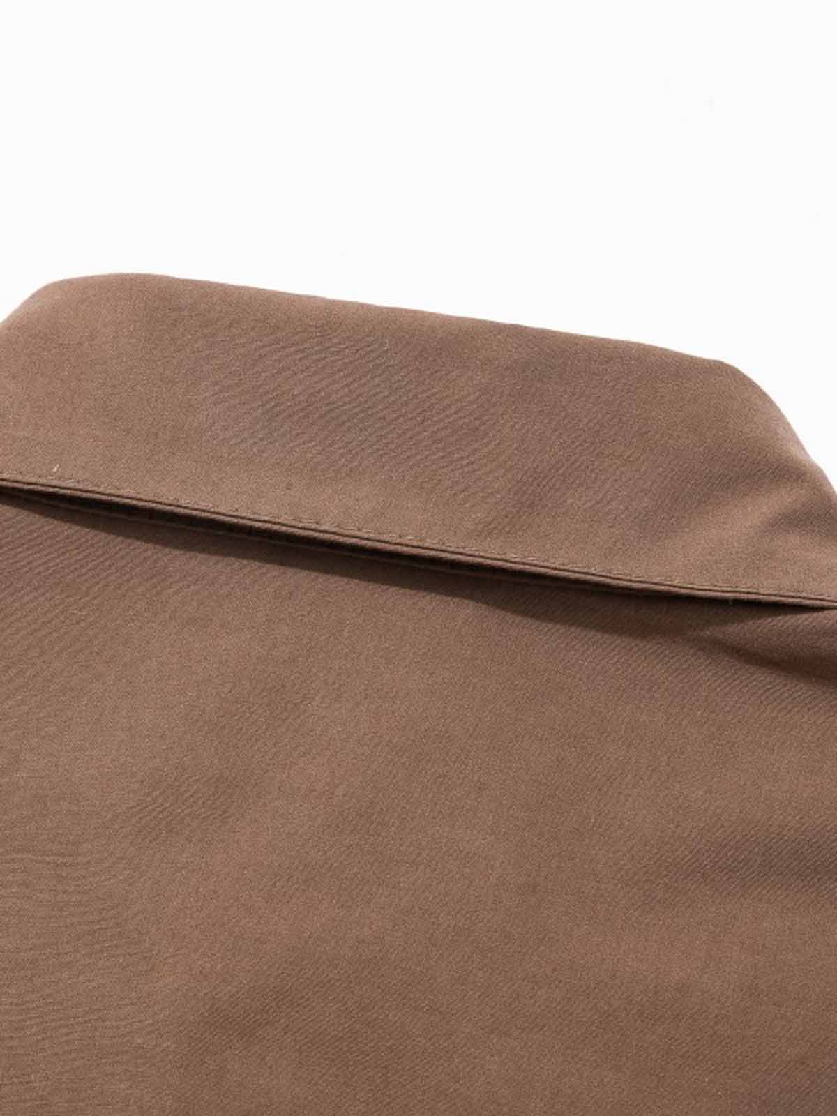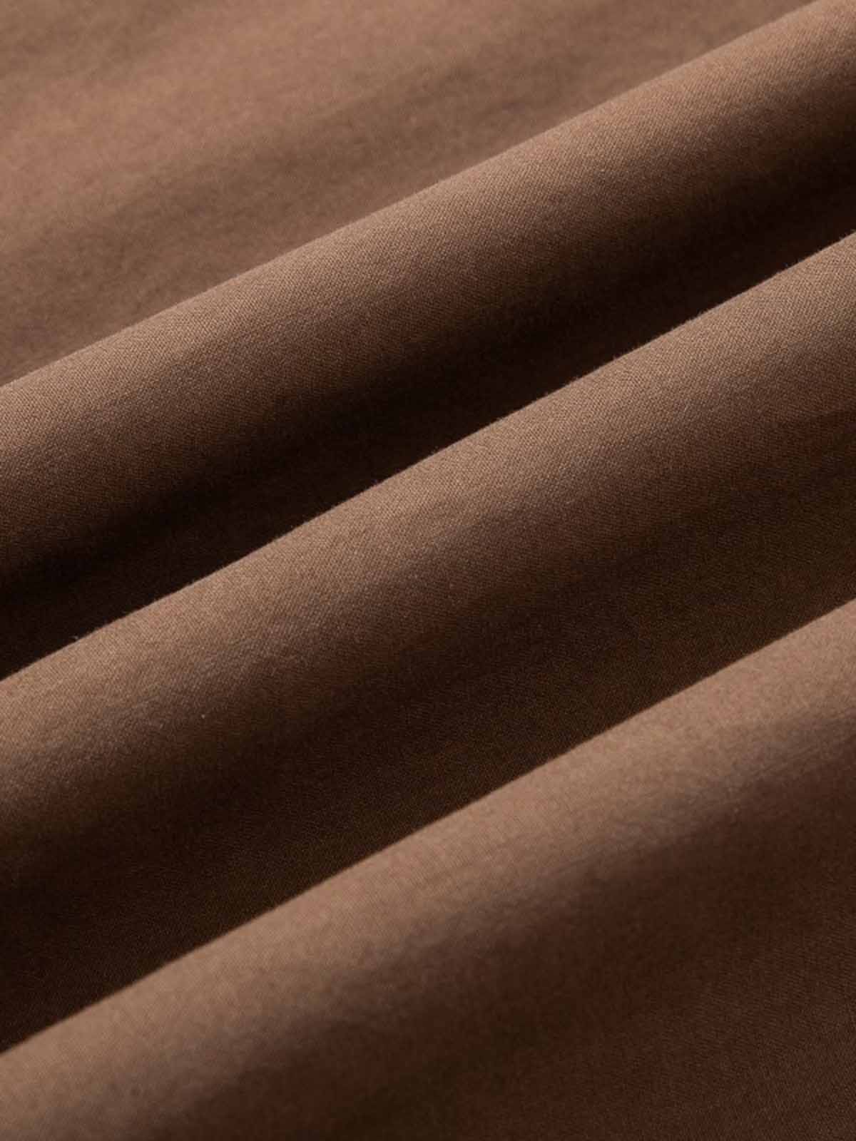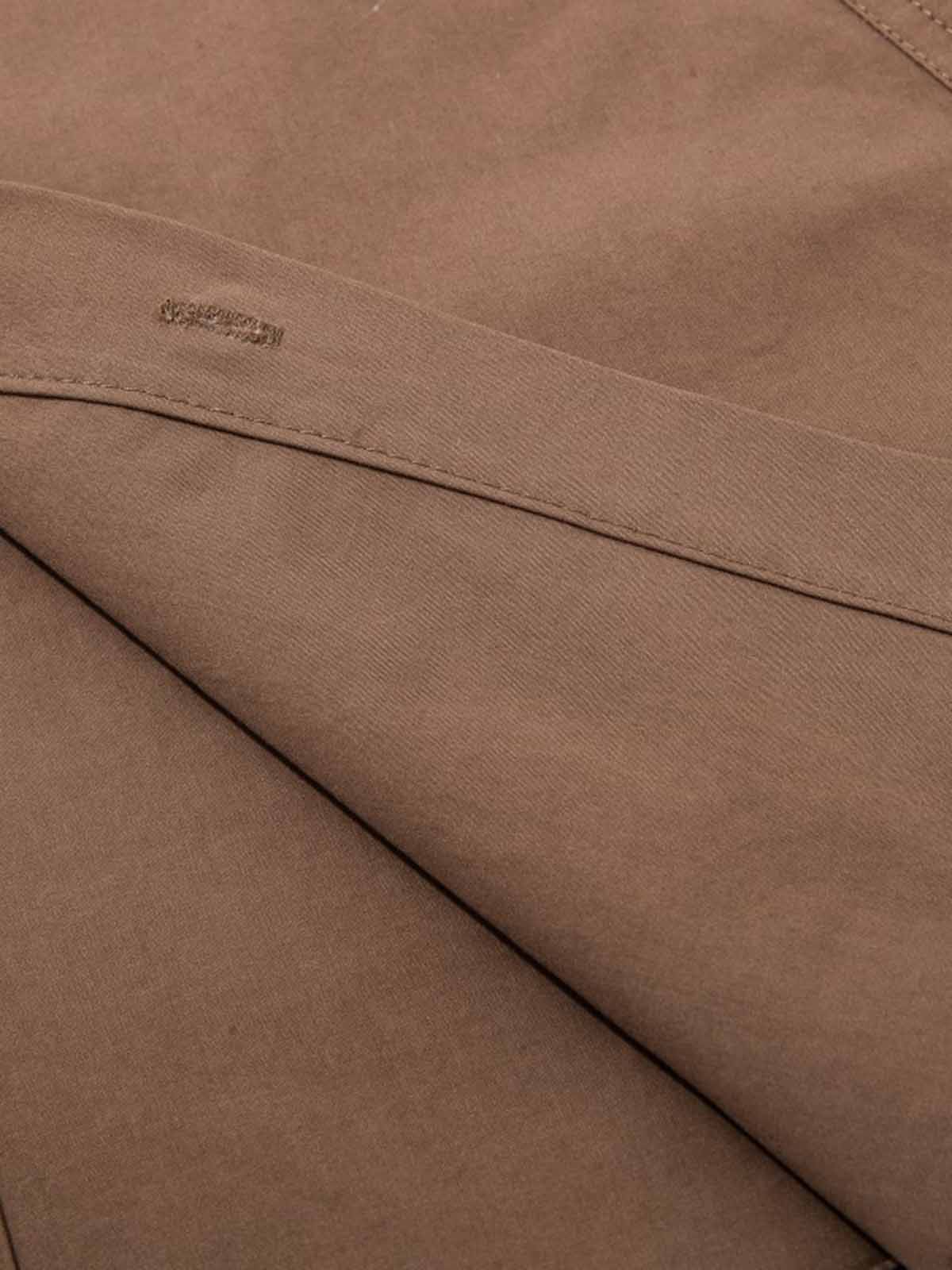 本シャツは、従来の対称デザインを打破する非対称カッティングが特徴で、独自のレイヤリング効果とモダンな印象を与えます。シンプルな翻領とルーズフィットのシルエットが、日常の着回しをしやすくしながらも個性的なスタイルを演出。100%コットンの生地は柔らかく通気性に優れており、季節を問わず快適に着用できます。さらに、アーチ状の裾カットが、Tシャツやベストとのレイヤードスタイルにも最適で、通勤からカジュアルシーンまで幅広いスタイルにマッチする一着です。
