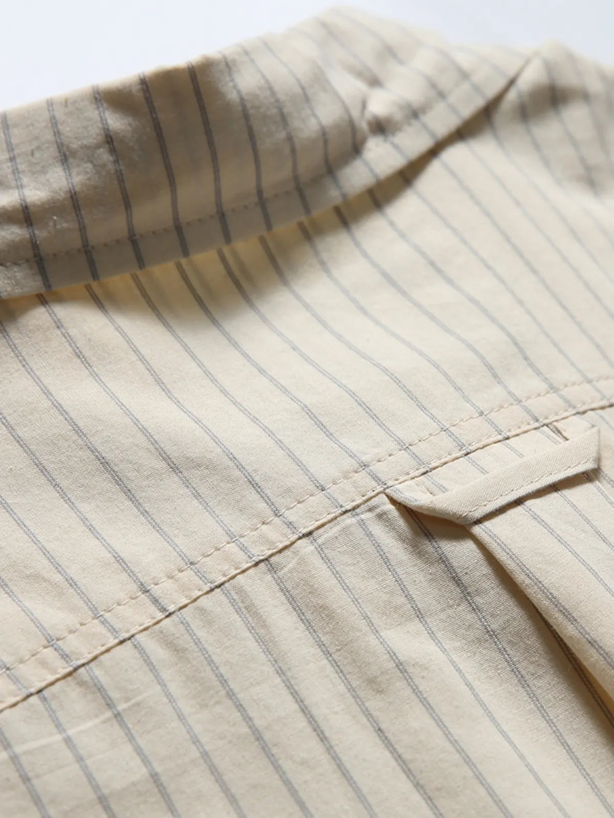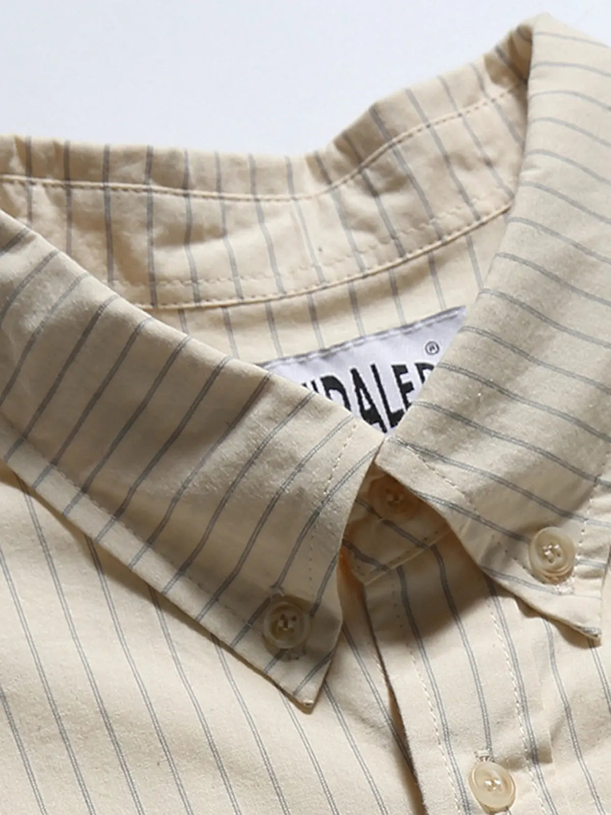 このアメリカンレトロストライプ長袖シャツは、100%コットン素材を使用し、軽い着心地と適度な通気性を備えています。太めのストライプ柄がアメリカンレトロなテイストを演出しつつ、スタンダードフィットでカジュアルに着回しやすいデザイン。春秋のライトアウター感覚で羽織るのにも、インナーとしてレイヤードするのにも最適です。デニムパンツやチノパン、ワイドパンツなど幅広いボトムスとも相性が良く、日常の着こなしから週末のお出かけまで幅広く活躍します。