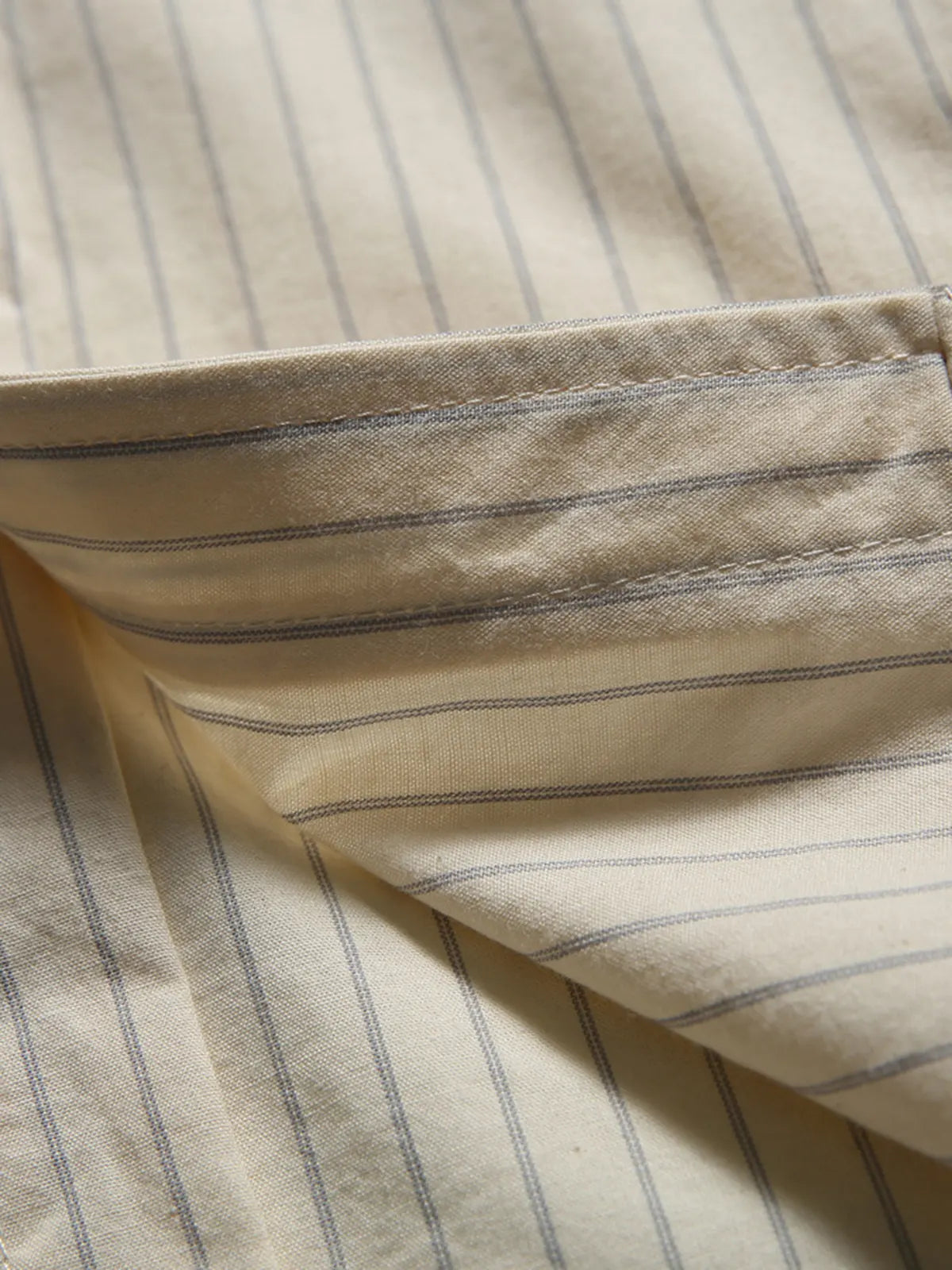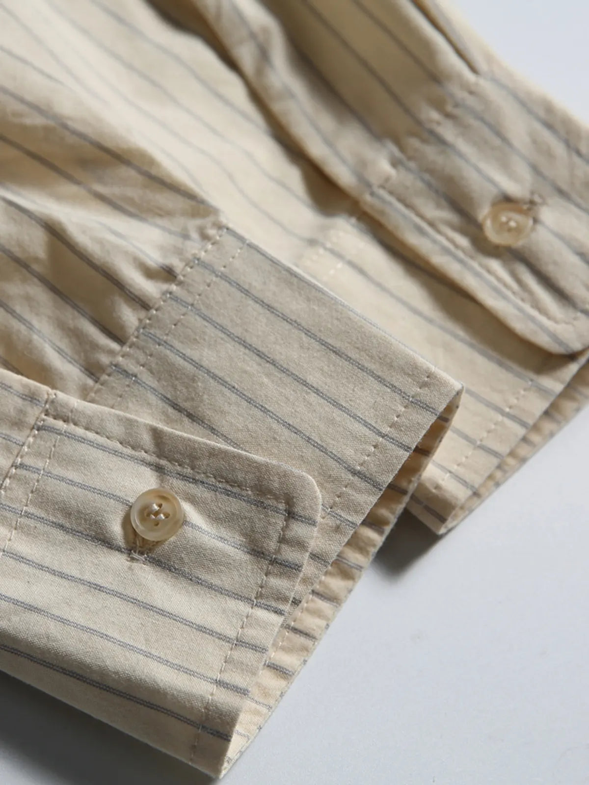 クラシックなストライプ柄によるアメリカンレトロな雰囲気を纏い、リラックスかつおしゃれに着こなせる長袖シャツです。