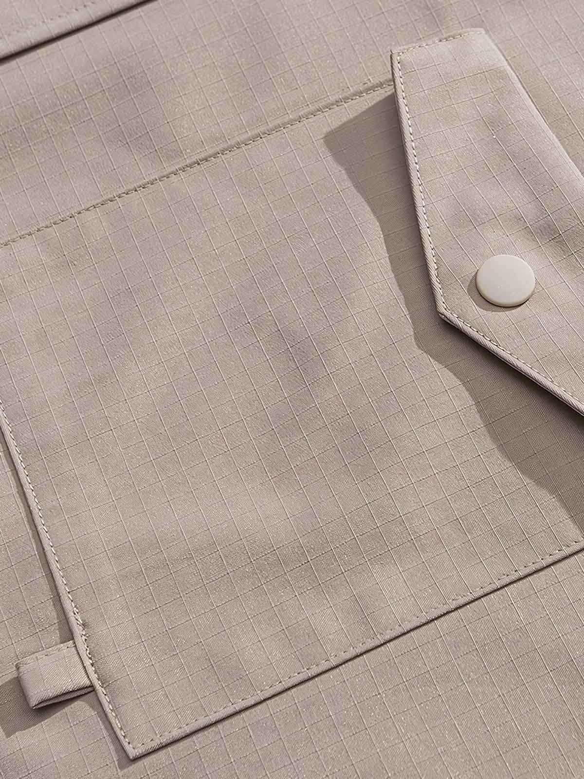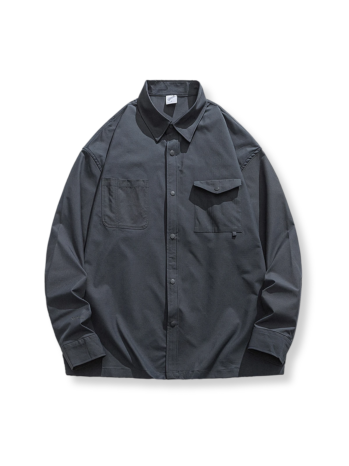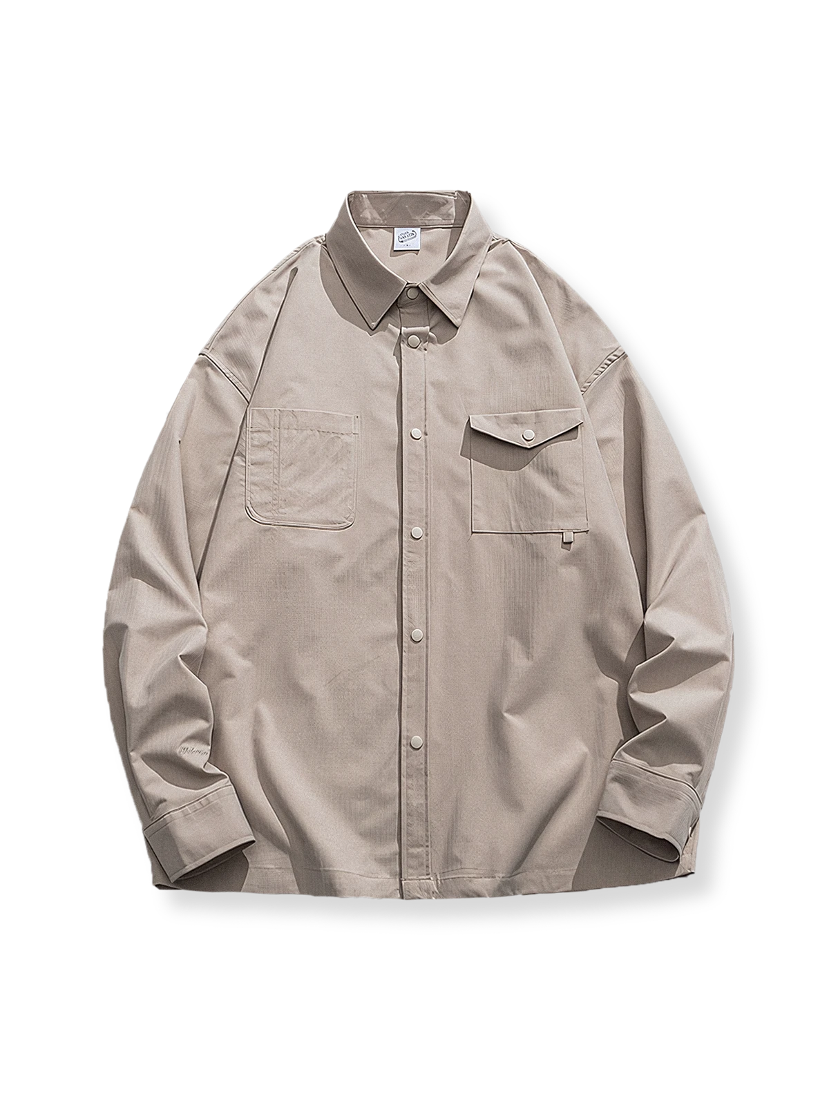 こちらはベーシックな長袖シャツで、日本のレトロなポケットデザインが特徴的です。クラシックなデザインにモダンなエッセンスを加えたこのシャツは、機能性とスタイルを兼ね備えています。フロントポケットはレトロスタイルに影響を受けており、洋服の細部にまでこだわりたい方に最適です。
