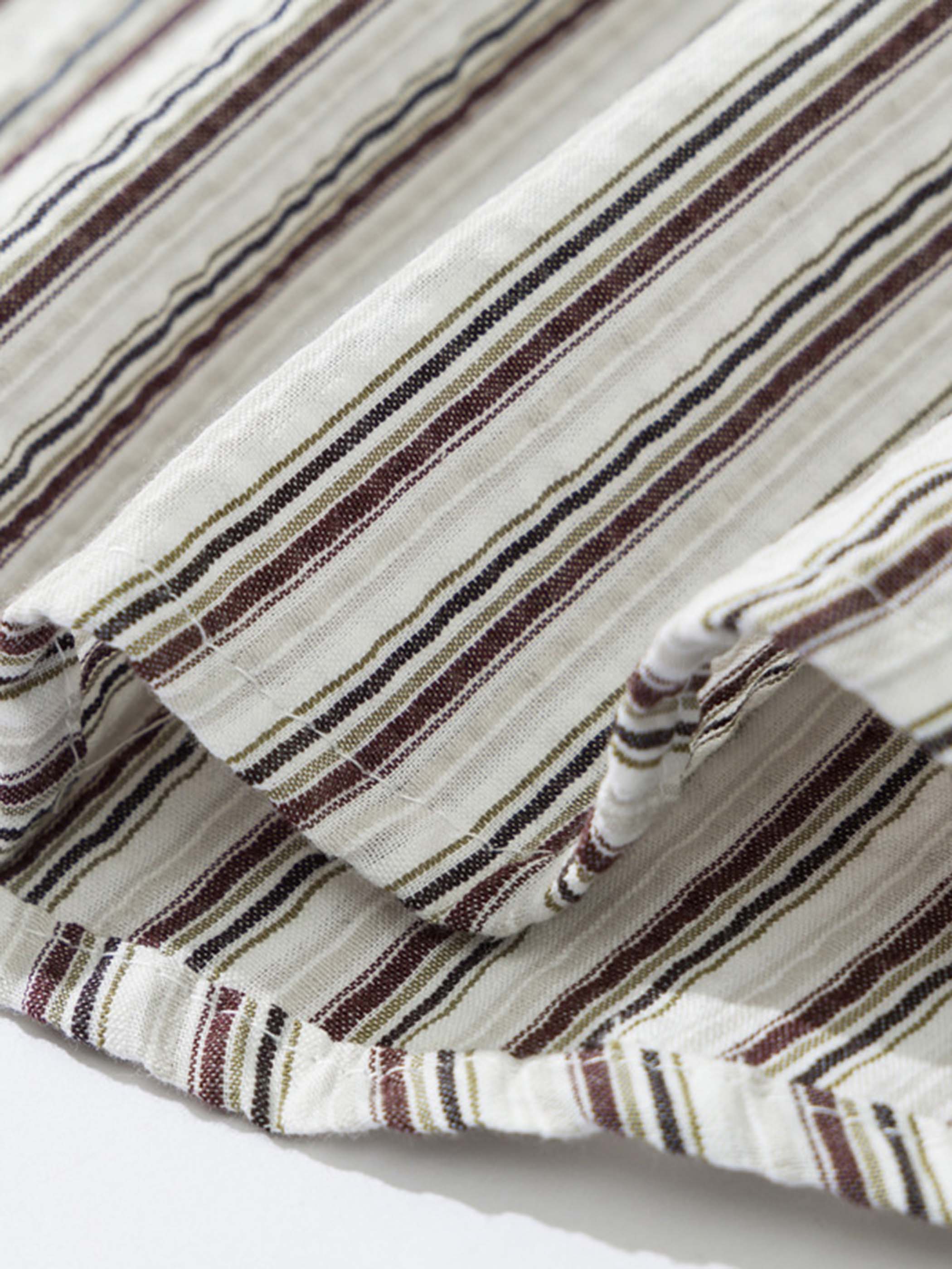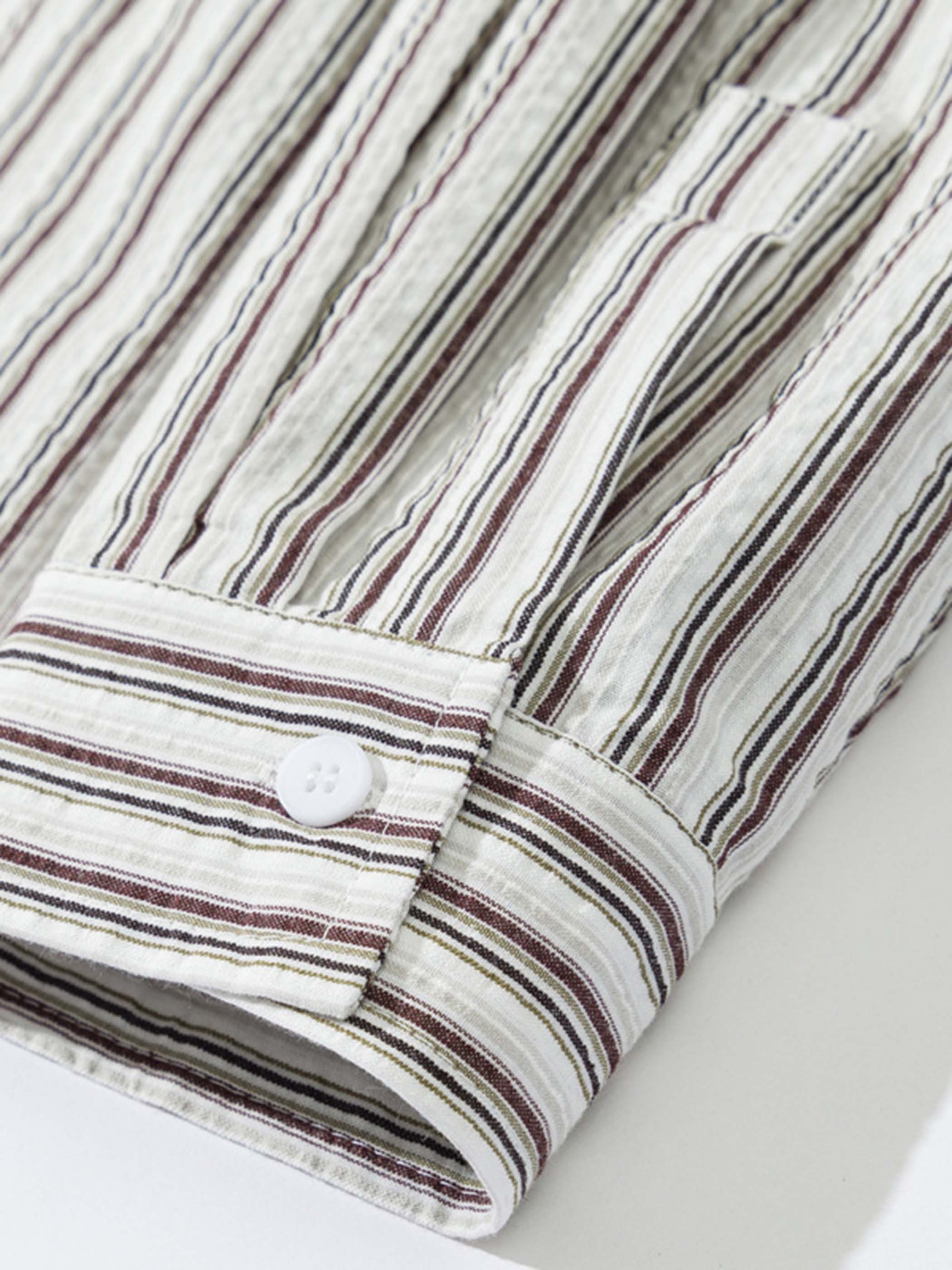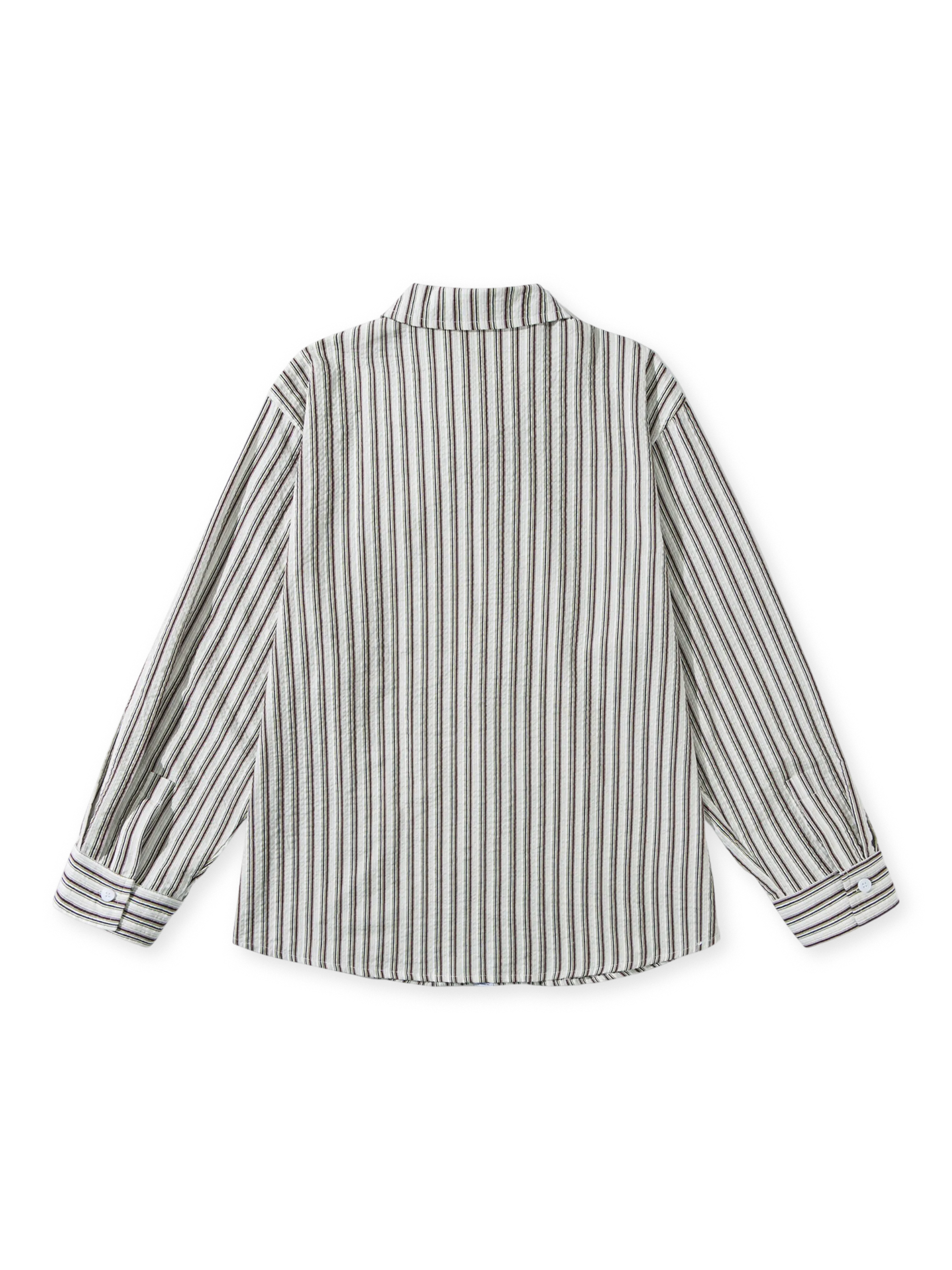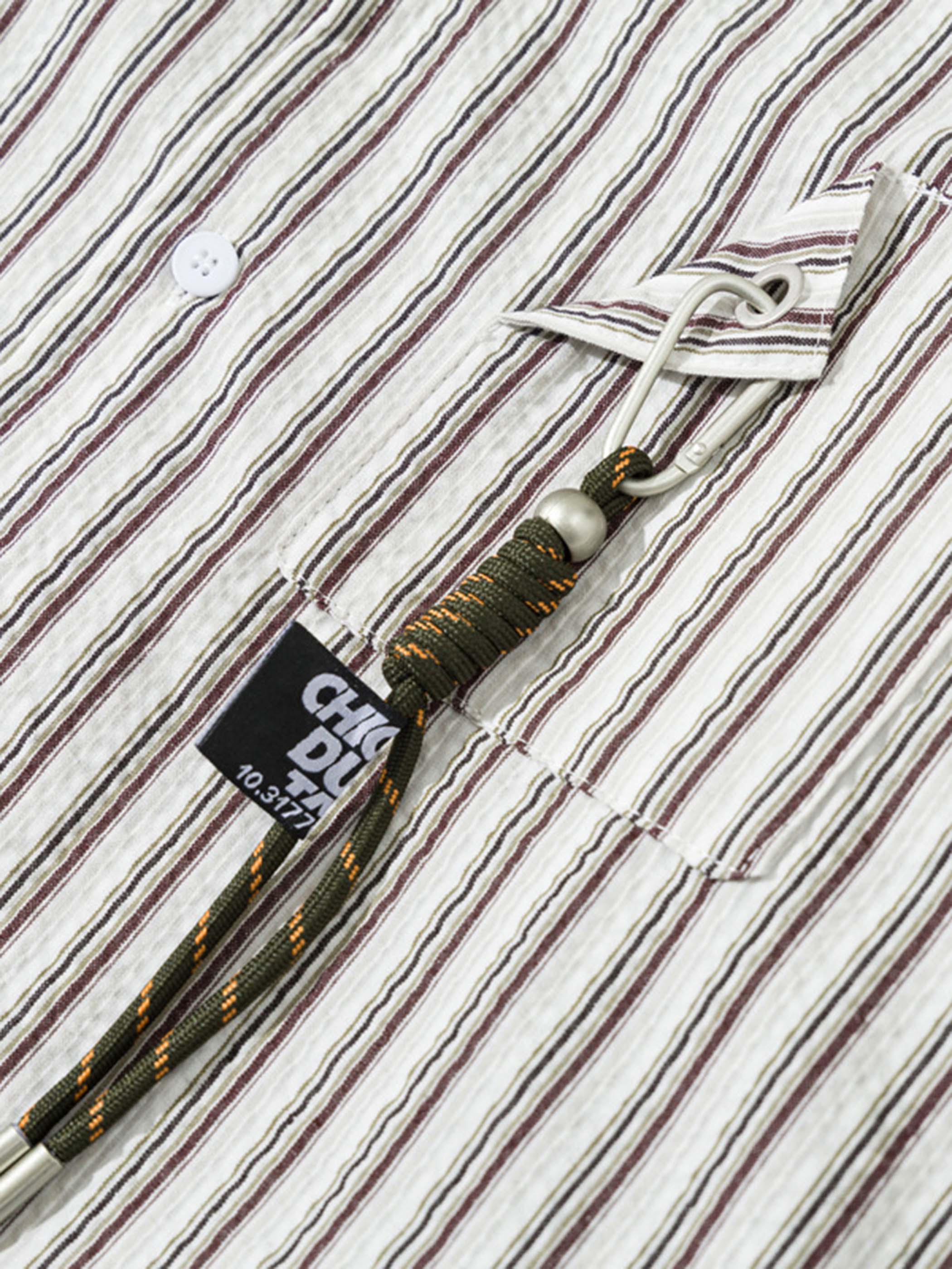 このシャツは、日本ストリートスタイルのエッセンスとアーバンアウトドアの要素が見事に融合したデザインが特徴です。泡泡綿(シアサッカー)100%の軽量生地を使用し、抜群の通気性と快適な着心地を提供します。ゆったりとしたルーズなシルエットはユニセックス仕様で、胸ポケットに付いたメタルフックが鍵やアクセサリーなどの小物を取り付けるための実用性と、個性的なアクセントを加えます。レトロなストライプ柄が、ワークパンツやデニムと合わせることで、日本ストリートスタイルとアウトドアテイストを手軽に楽しむことができる、機能性とおしゃれさを両立したアイテムです。