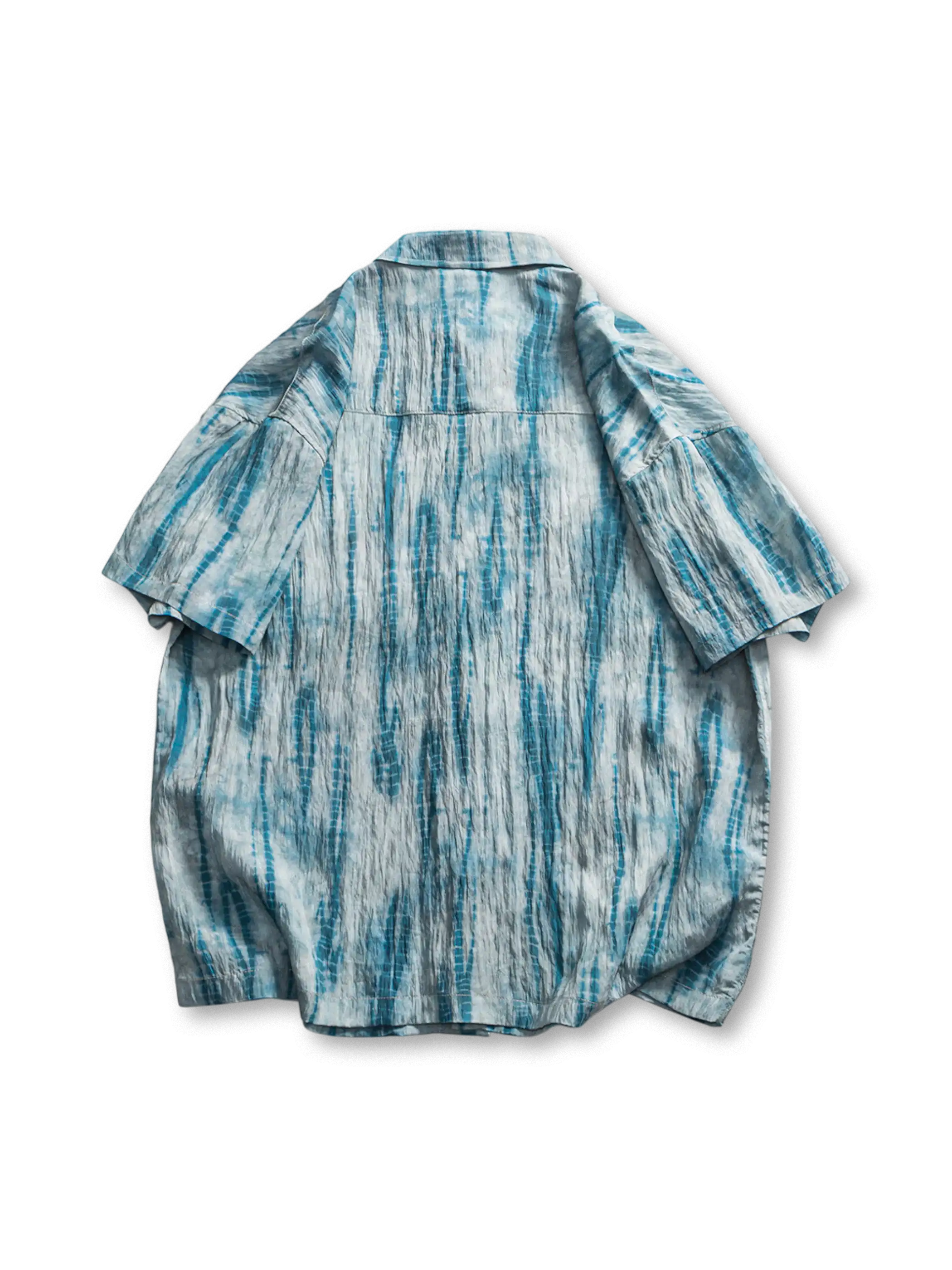 75年代工場シャツを彷彿とさせる、ウォッシュ加工とタイダイ染めを施したゆったりシルエットの半袖ワークシャツ。