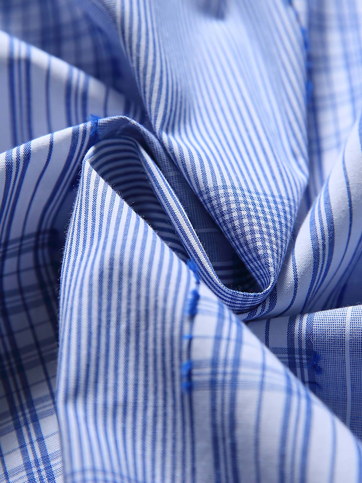 厳選されたポリエステル素材は、シャツの柔らかさと通気性を保証し、着心地を向上させます。細かいパッチワーク技術はパターンの移行を自然かつ調和させ、袖のストライプやフロントのチェックがはっきりとしたレイヤーを形成しています。