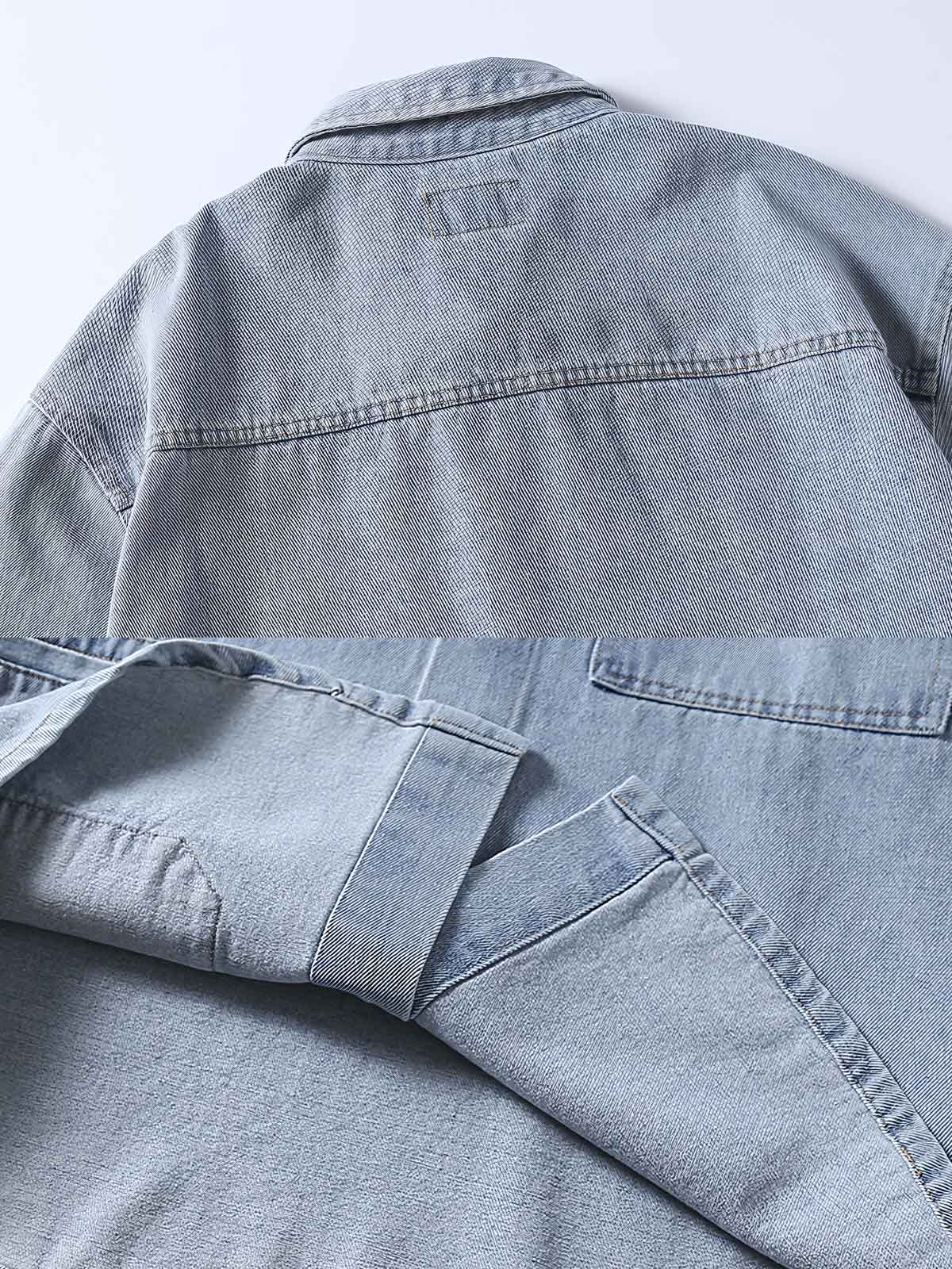 このデニムジャケットは、シンプルな白Tシャツやカジュアルパンツと合わせて、洗練された日常のスタイルを演出するのに最適です。春秋にはそのまま羽織るのがちょうどよく、冬場にはインナーとしても活躍します。個性的でありながらファッショナブルな魅力を放ちます。