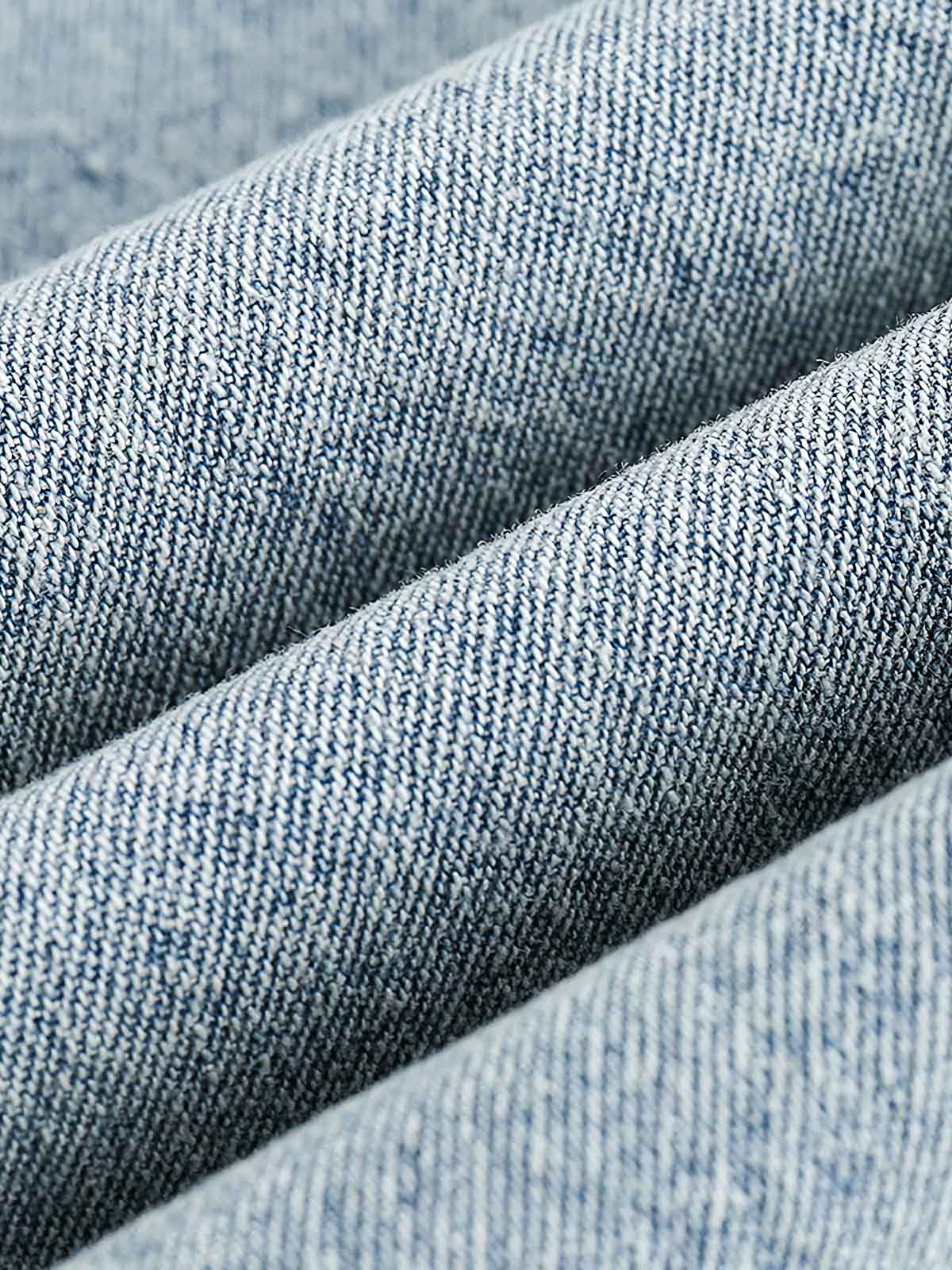 ウォッシュ加工を施したデニム素材は、シャツに独特の色合いとテクスチャーを与えます。コントラストのある襟のデザインは、単色の単調さを打破し、デザインのレイヤー感を加えています。精巧な刺繍パターンは、装飾だけでなく、職人の精神とディテールへのこだわりを表現しています。