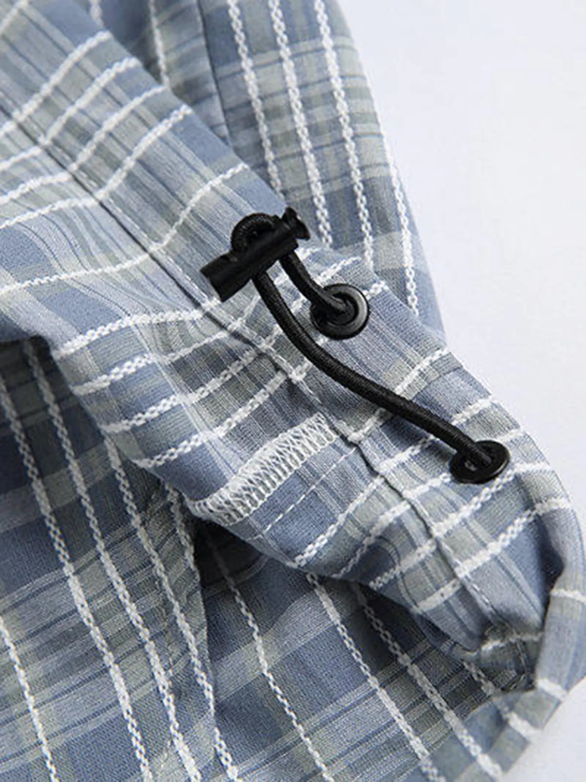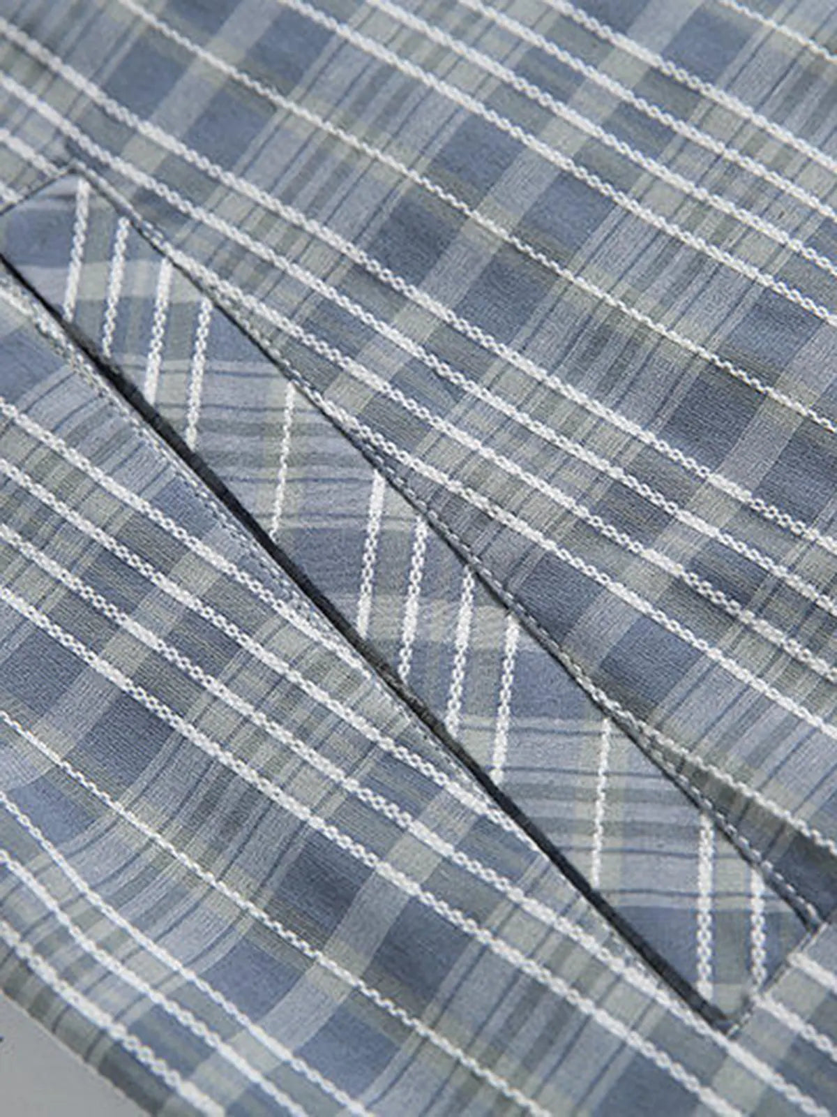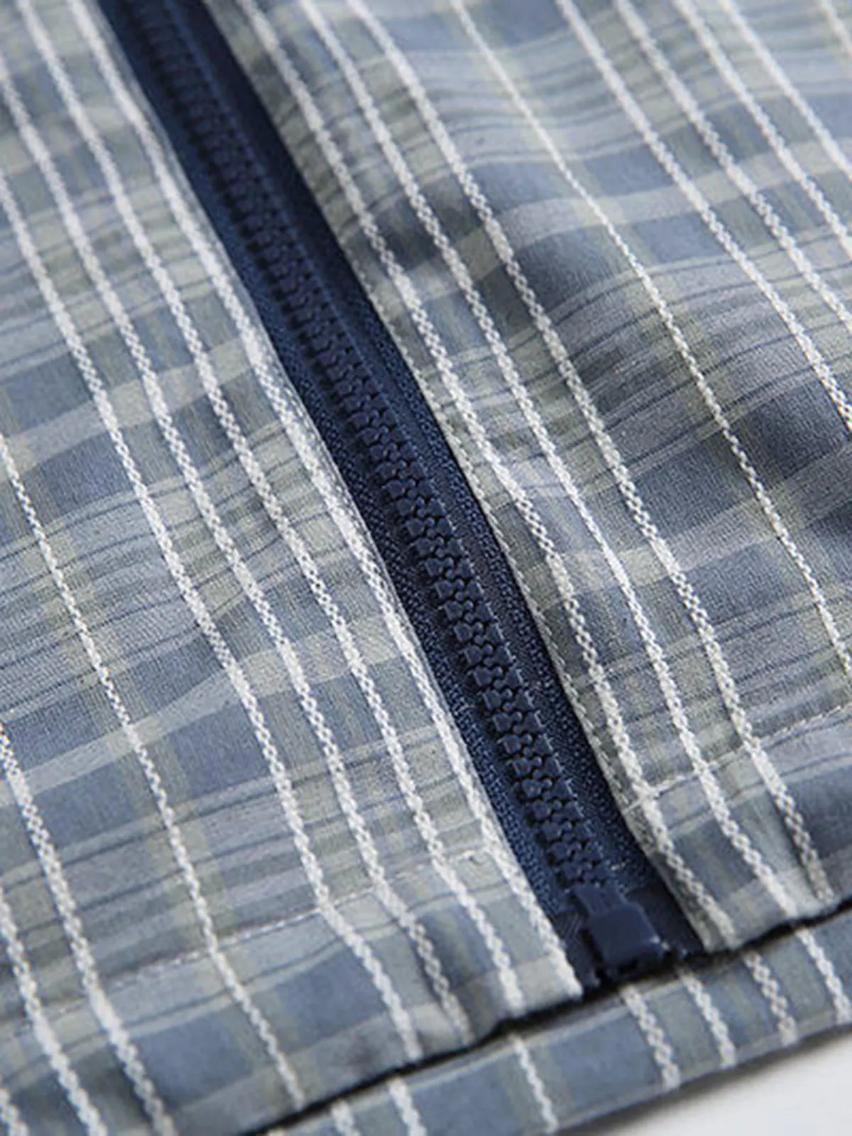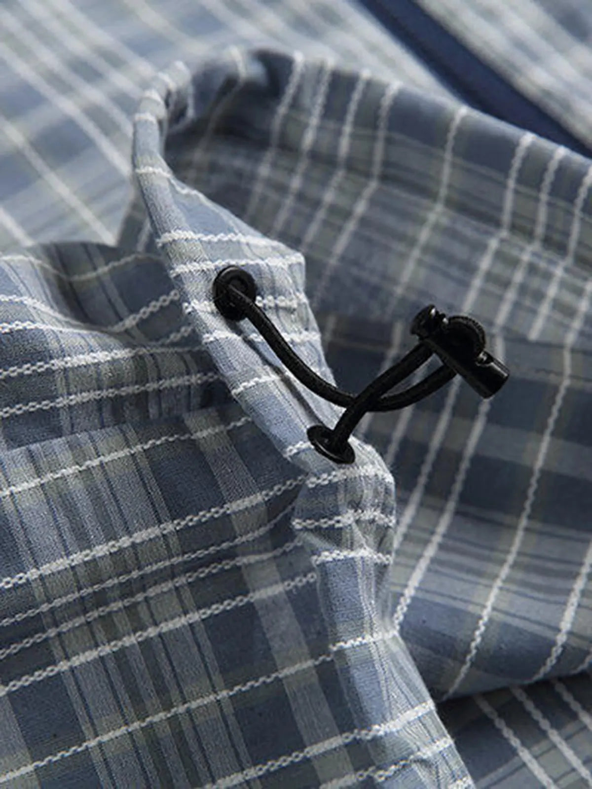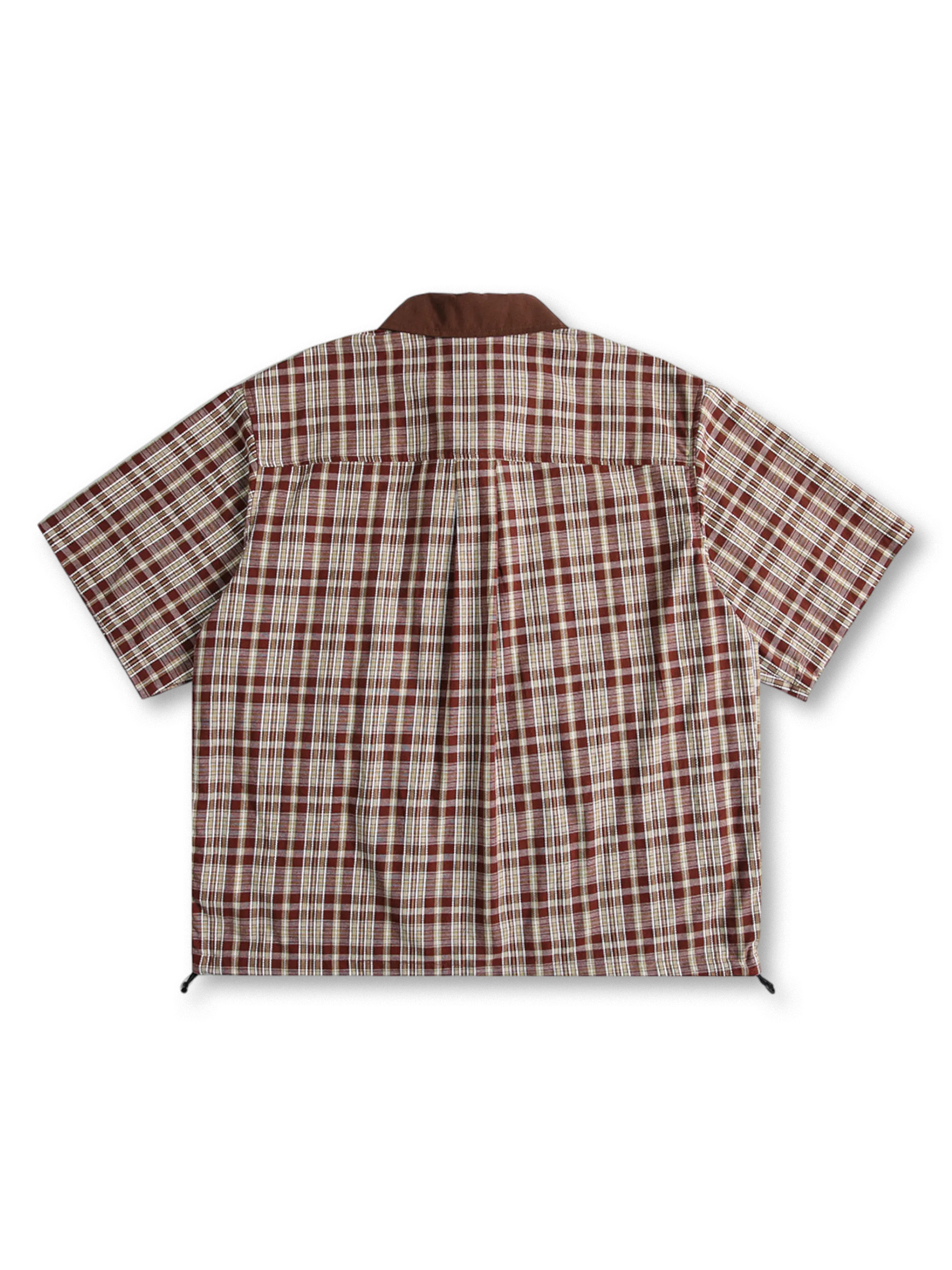 オリジナルのユニオンシャツに着想を得たワークテイストをベースに、ボディはクラシックなチェック柄と切り替えパネルで一枚仕立て。シンプルなジップフロントに加え、左右のフラップポケットや裾のドローコードで収納とシルエットの調整が自在に可能です。裾を絞ればボックスシルエットに、開けばゆったりとしたリラックススタイルに移行でき、チノショーツやデニムとの相性も抜群。日常からアウトドアまで幅広く活躍します。