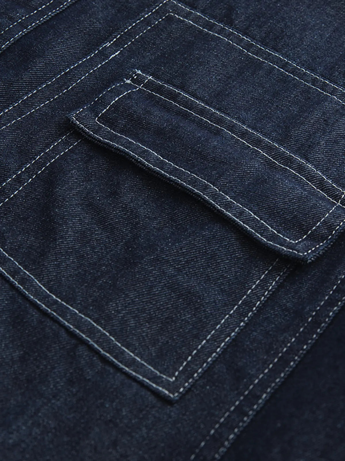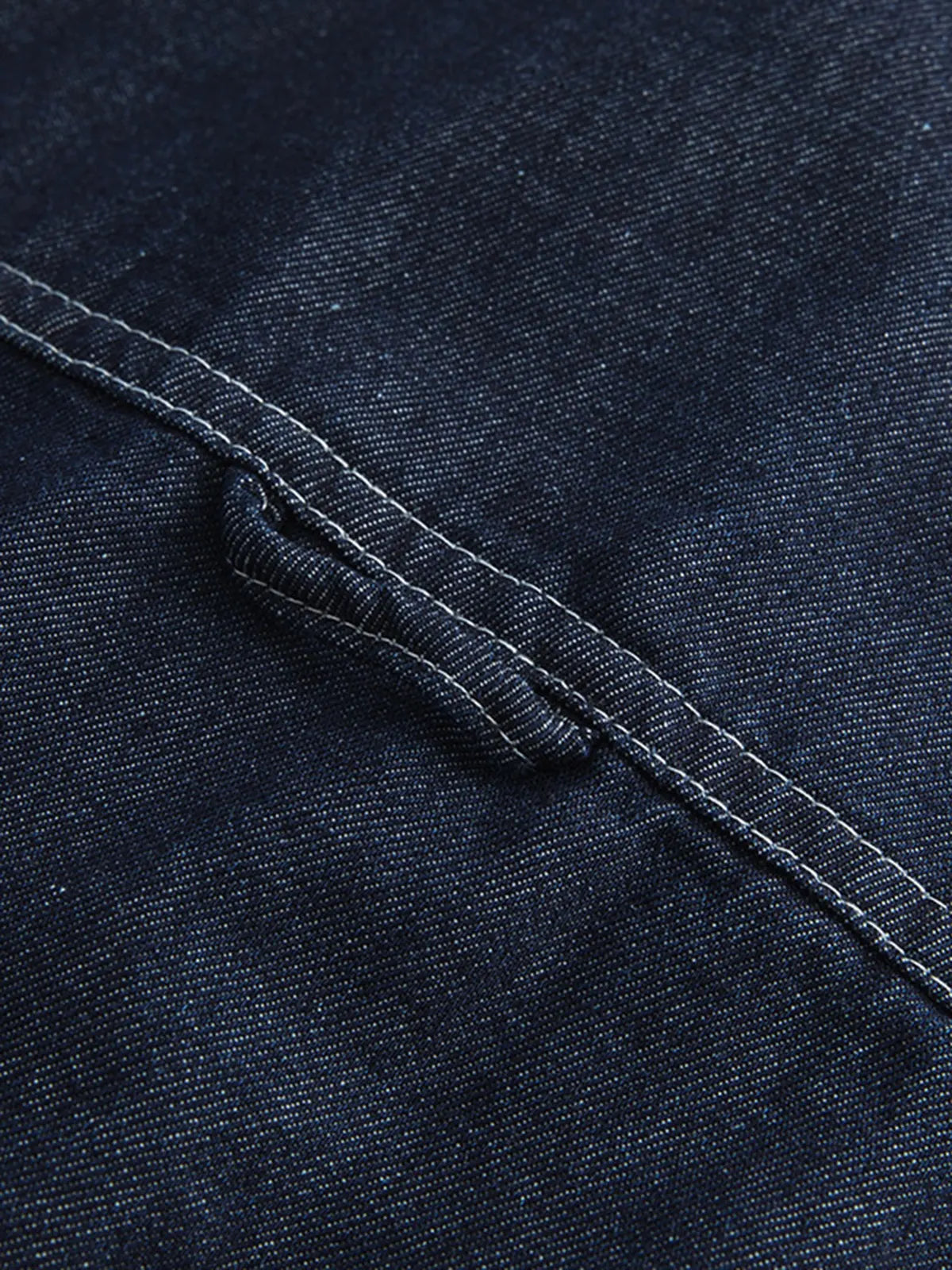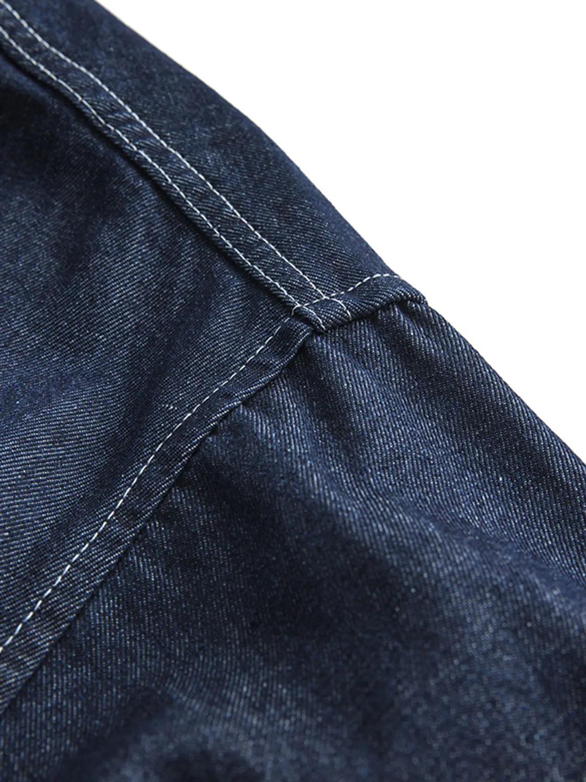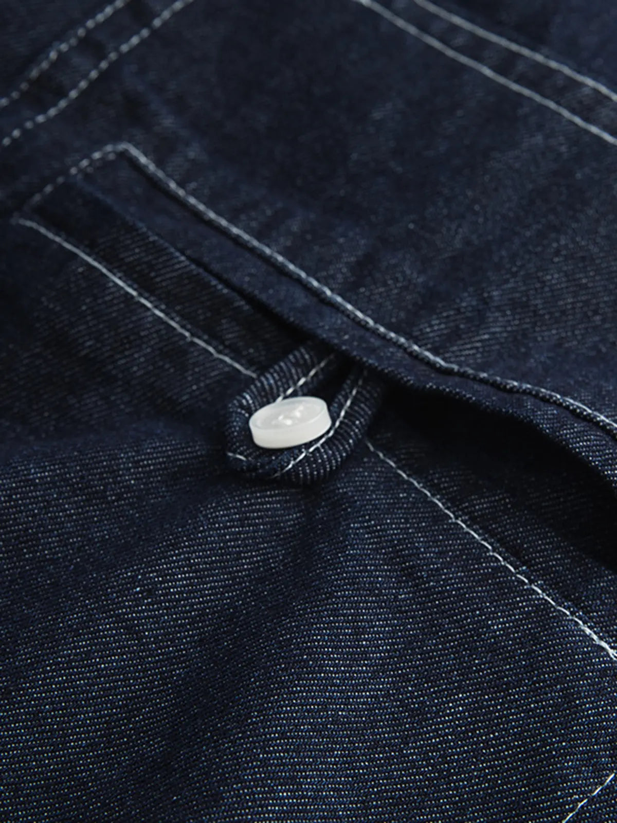 胸元と裾の上下パネル切り替えは1950~60年代のワークパンツのリメイク技術を継承し、大小4つのフラップポケットが実用性を確保。原色インディゴの色落ち感とセルビッジ風ステッチが立体的な表情を生み出し、シンプルなカットソーやミリタリーパンツとのレイヤードでコントラストを効かせつつ、作業着由来の頑強さとこなれた風合いを日常に取り入れられます。