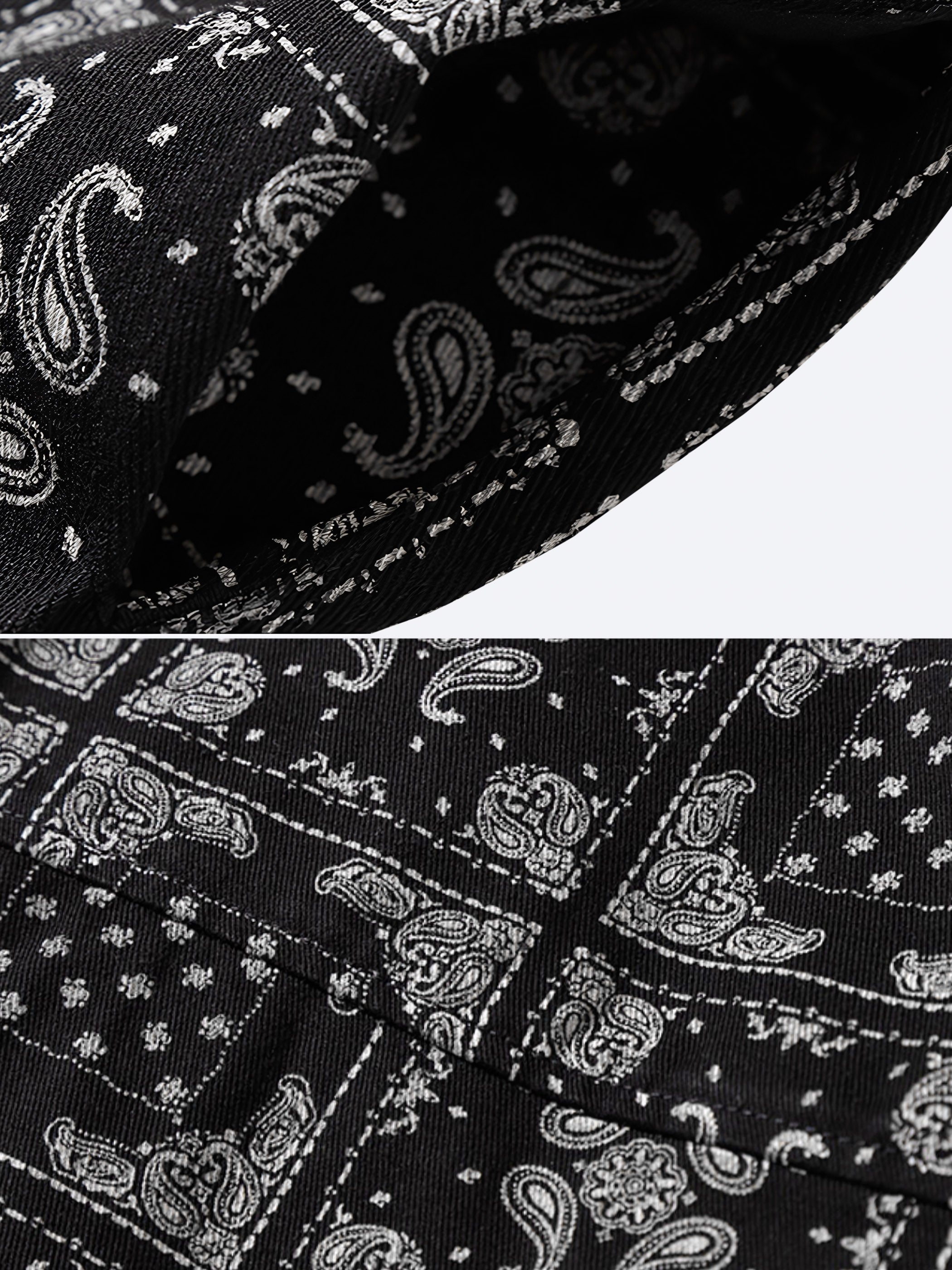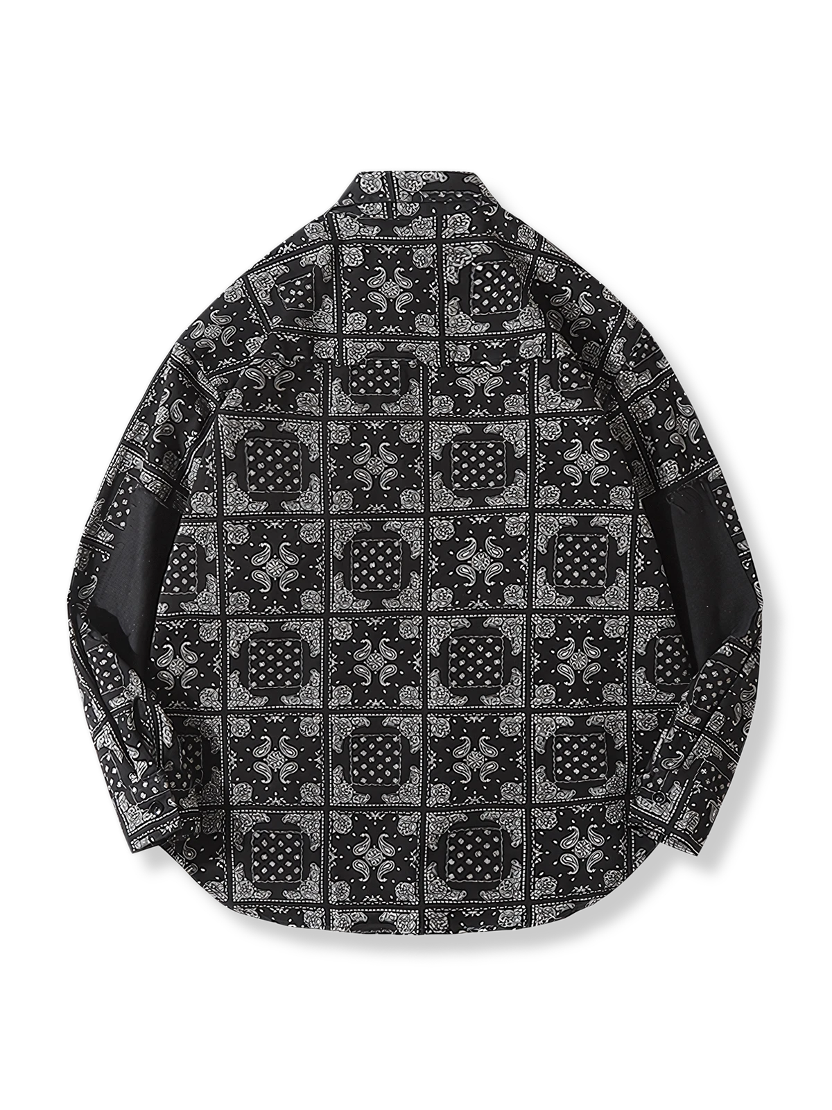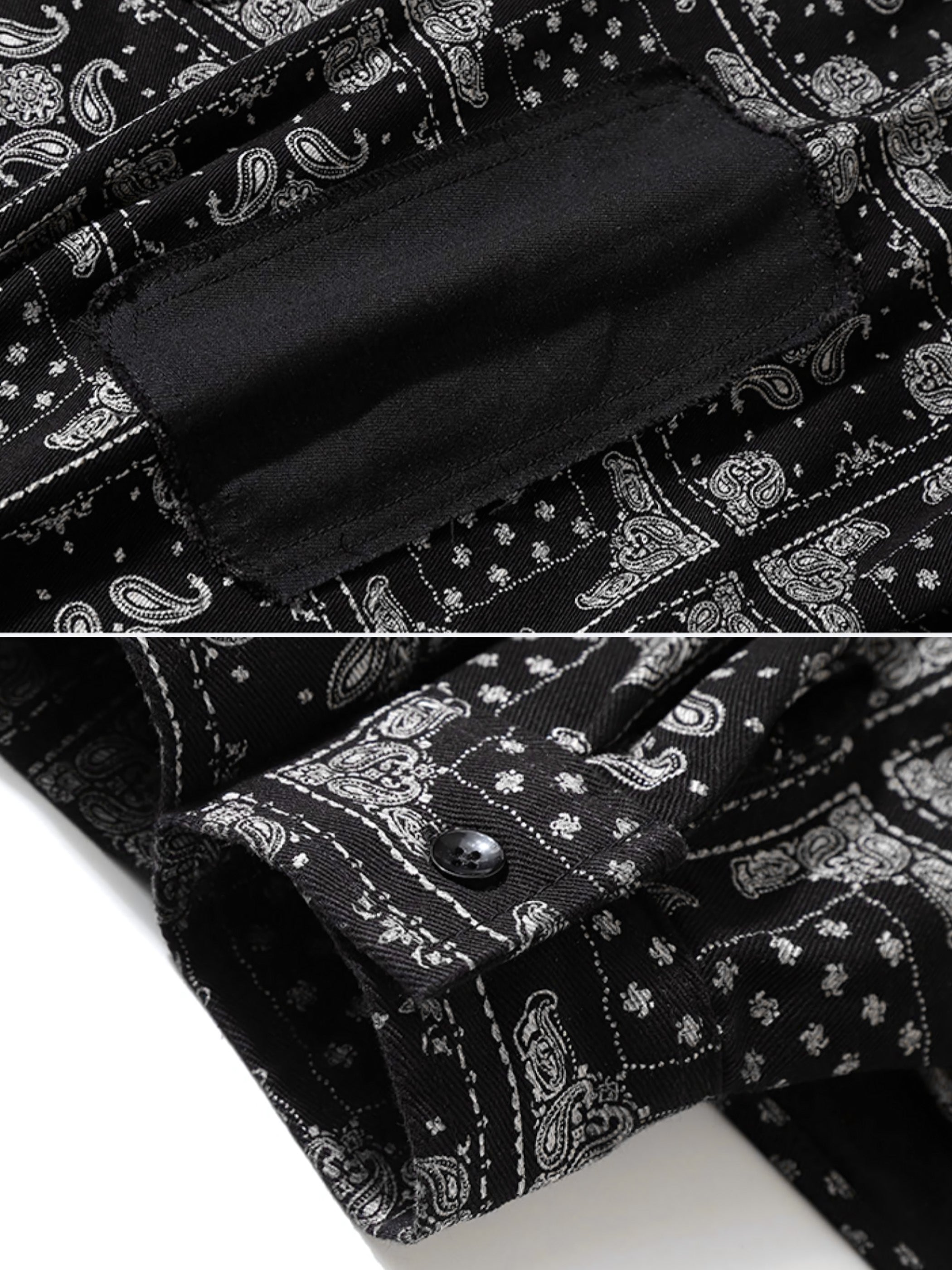 ペイズリー柄が全体を繊細に覆っており、柔らかな雰囲気を醸し出しています。落ち着いた色調が統一されており、全体的にシックな印象を与えます。華やかすぎず、落ち着いた趣を持ちつつ、独自のワークスタイルに仕上がっています。