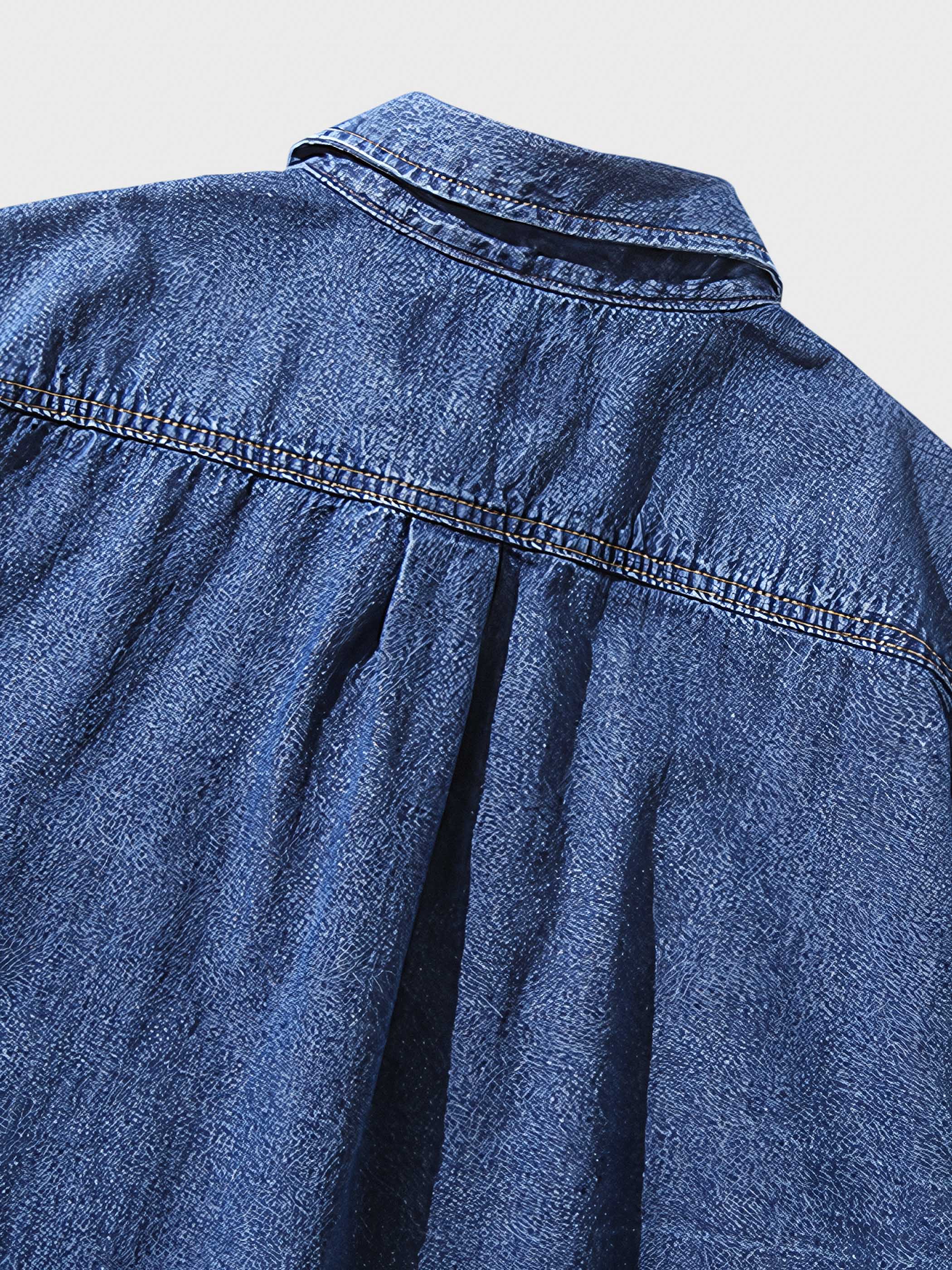 民族の魅力を大切にし、特別な雰囲気を醸し出すデザインを追求しました。民族風のポケットと琥珀色のボタンはシャツの民族的な特徴を際立たせます。