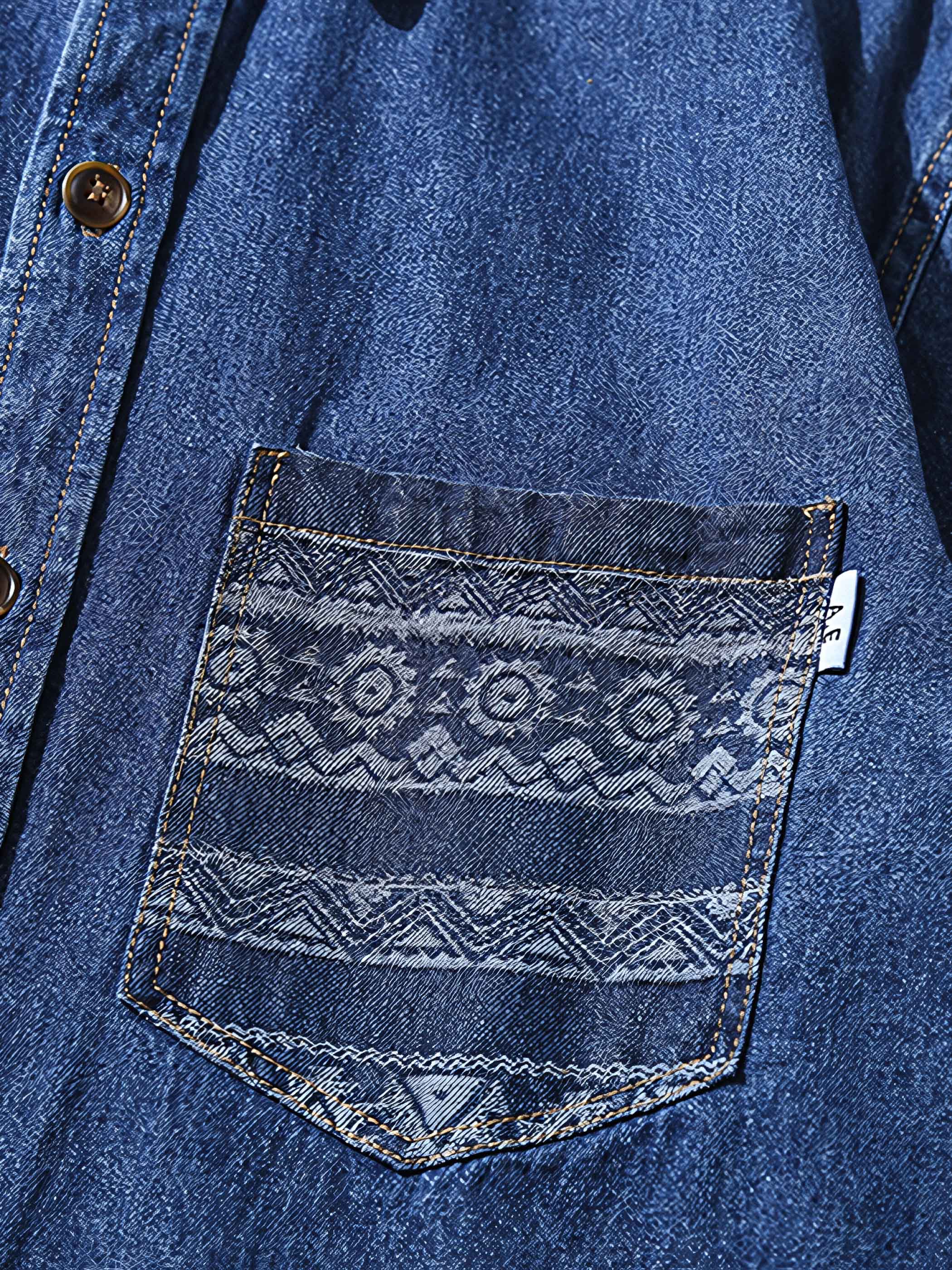 この民族風のポケット付き長袖シャツは、シャツとしてもアウターシャツとしても着用でき、独特のスタイルと魅力を演出します。