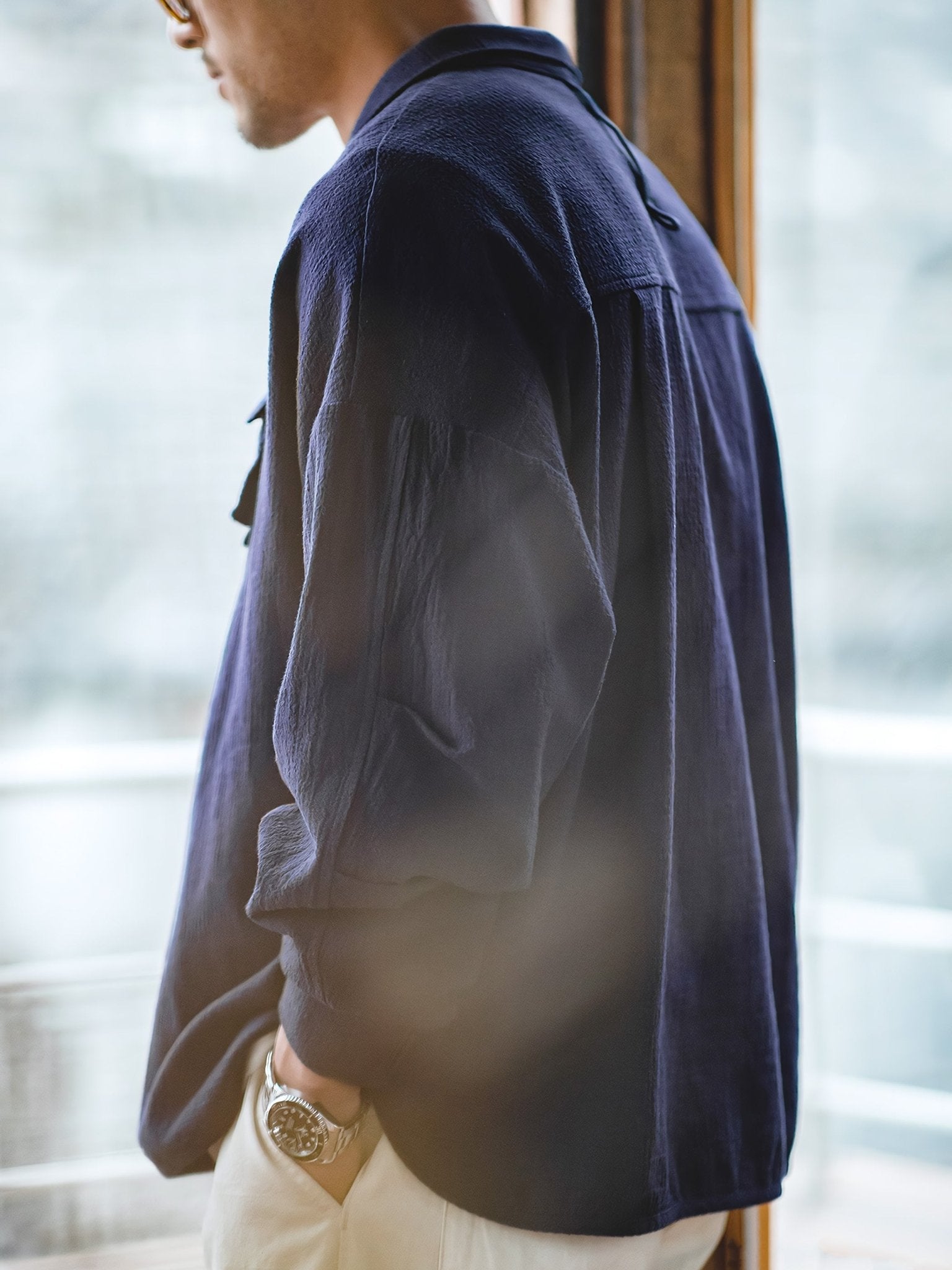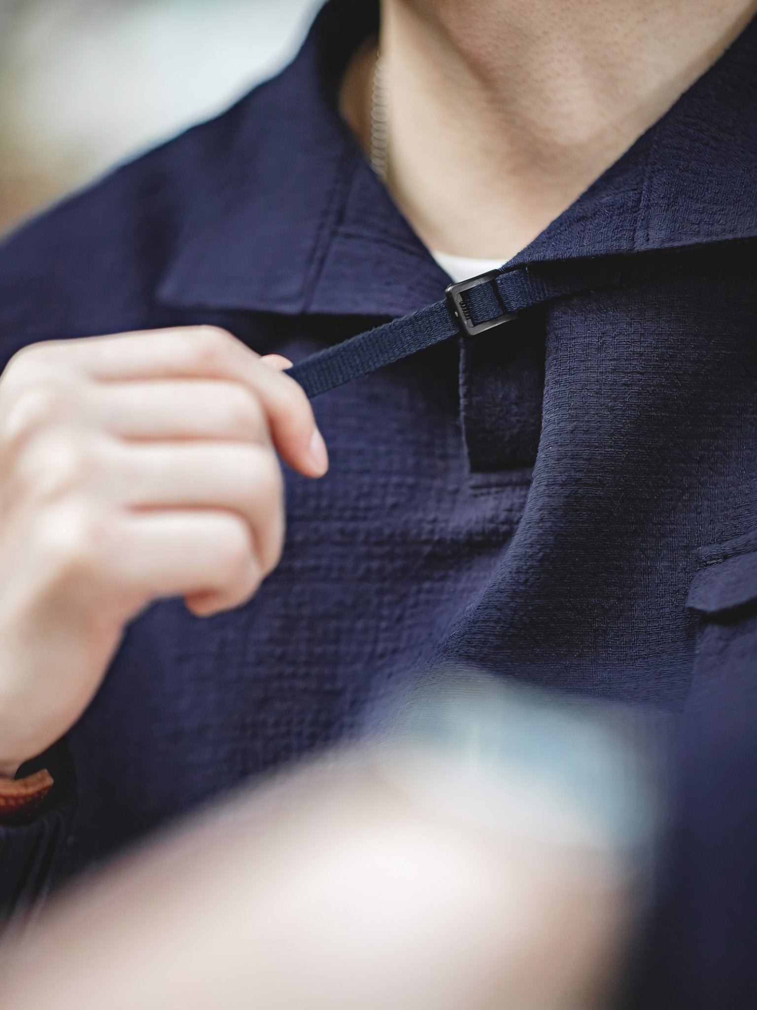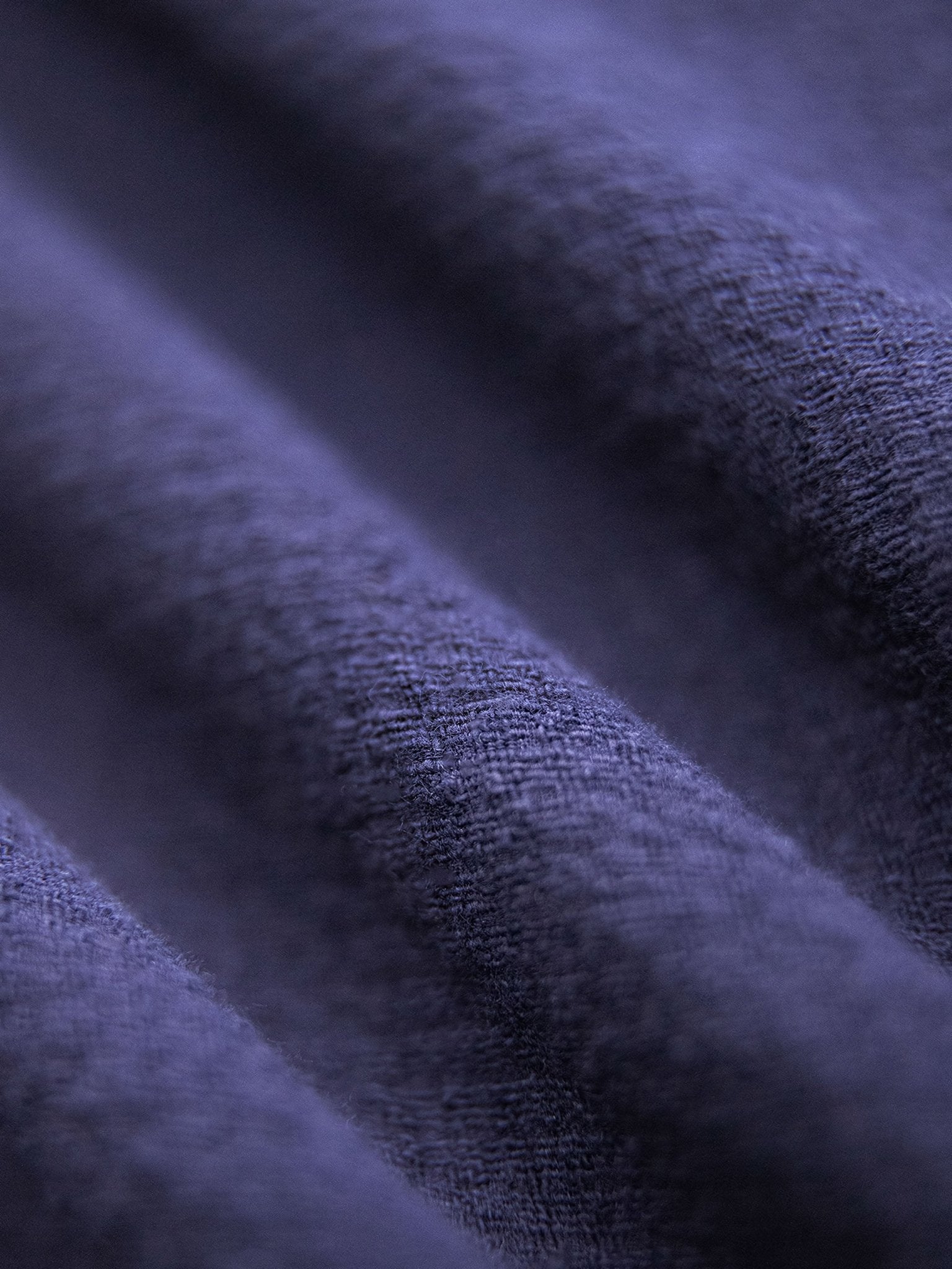 この素材はコットンの自然な触感を残しつつ、衣服に特別な質感を与えています。着用時に高品質な快適さを感じることができます。